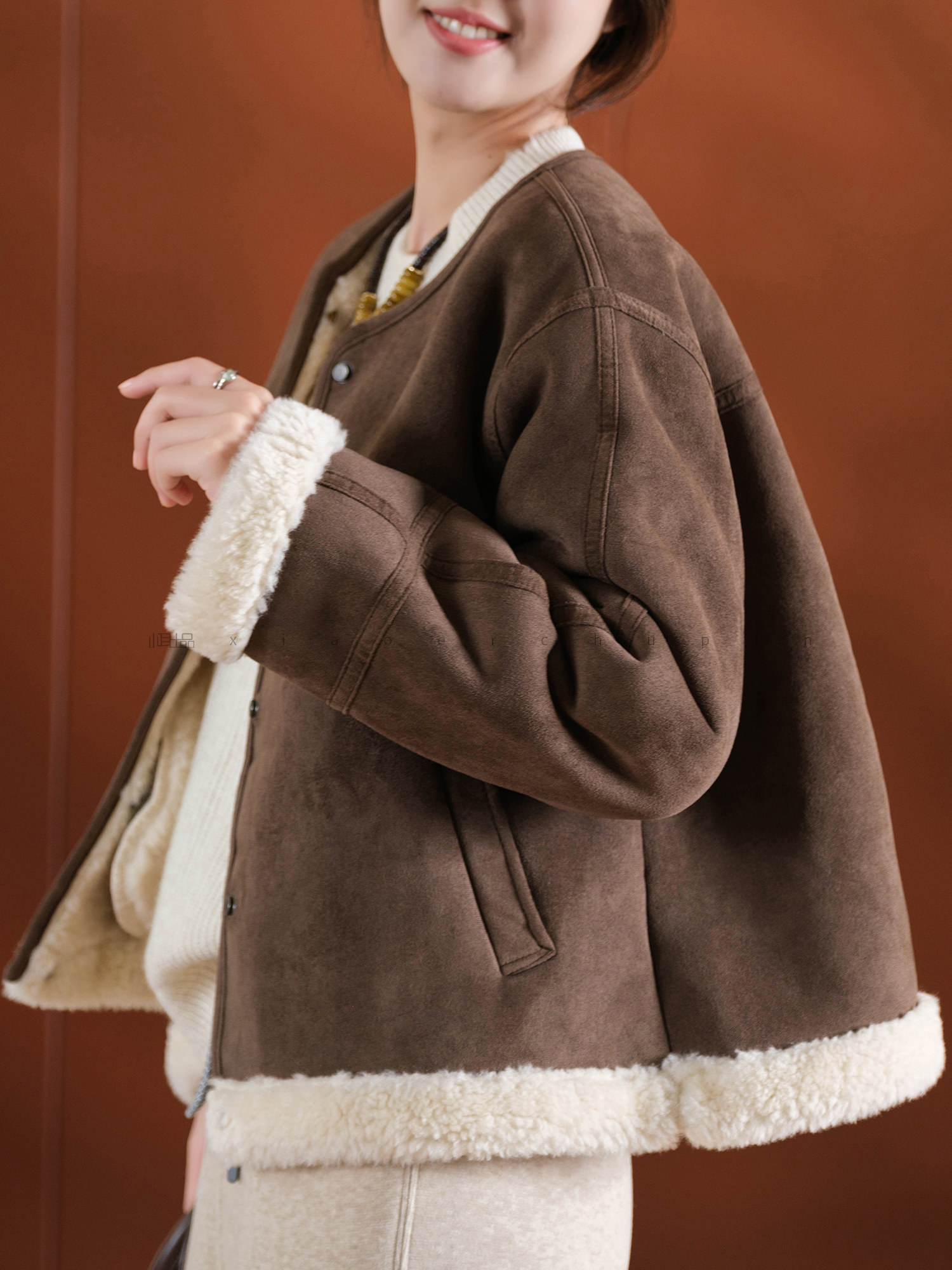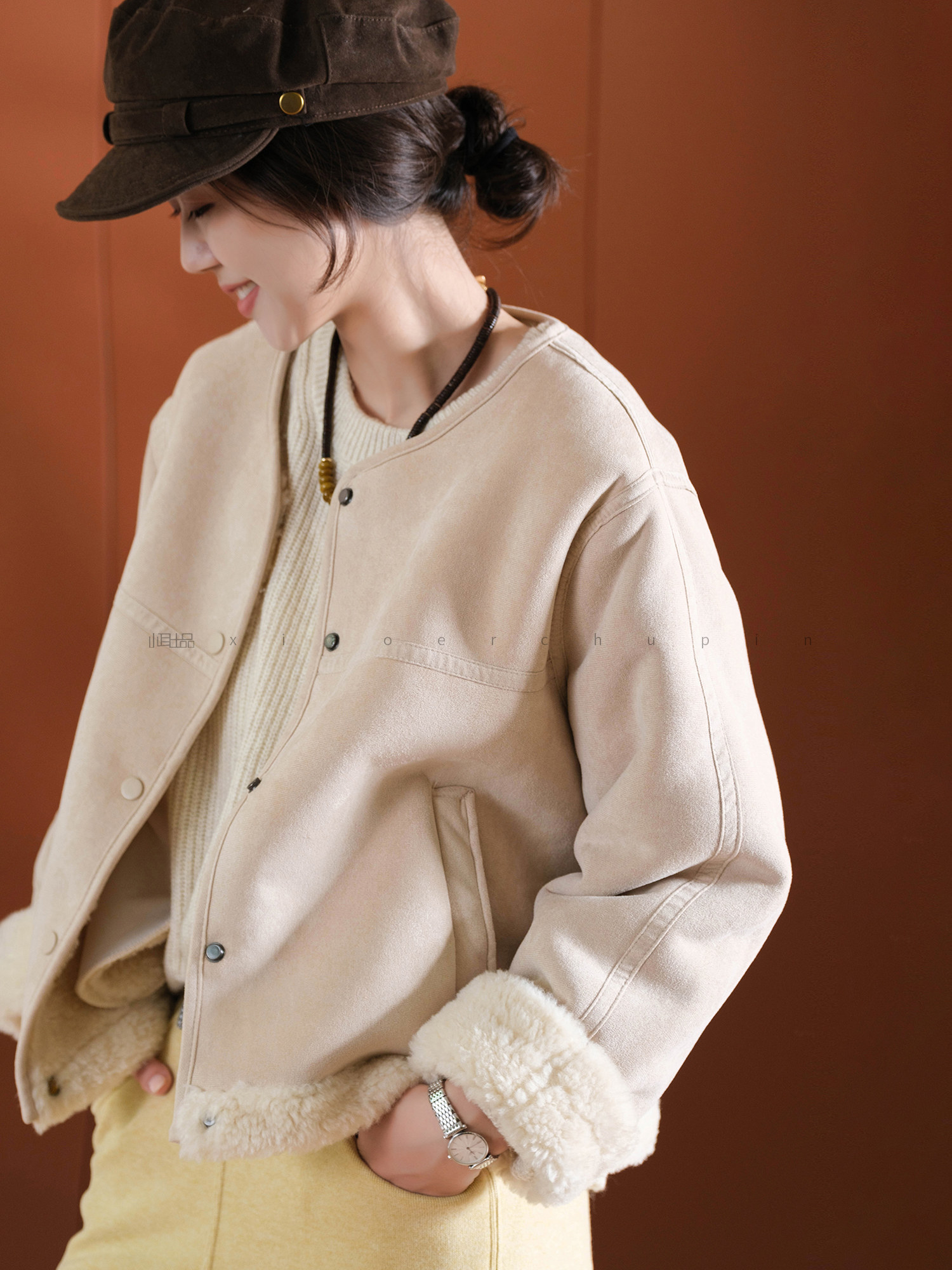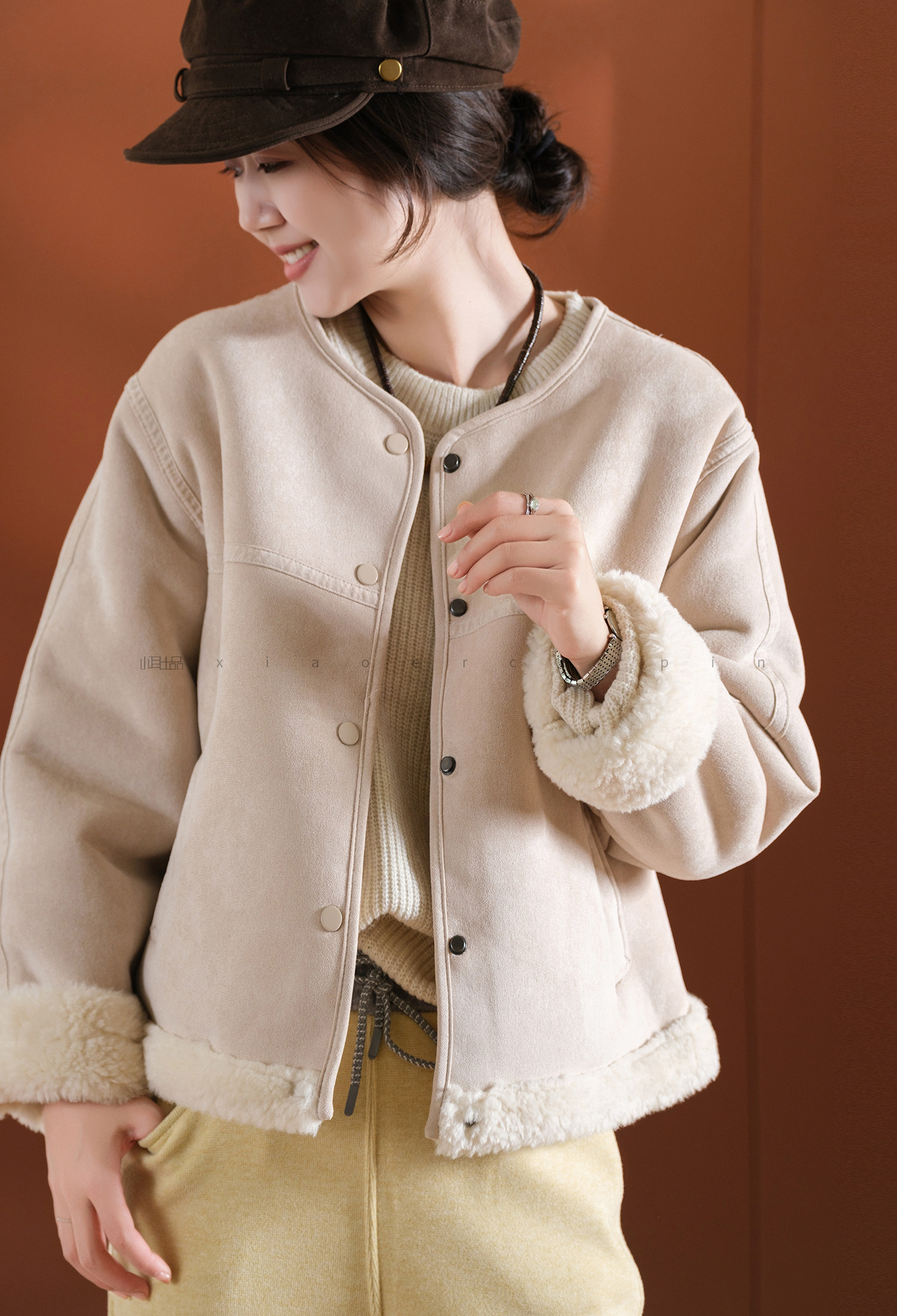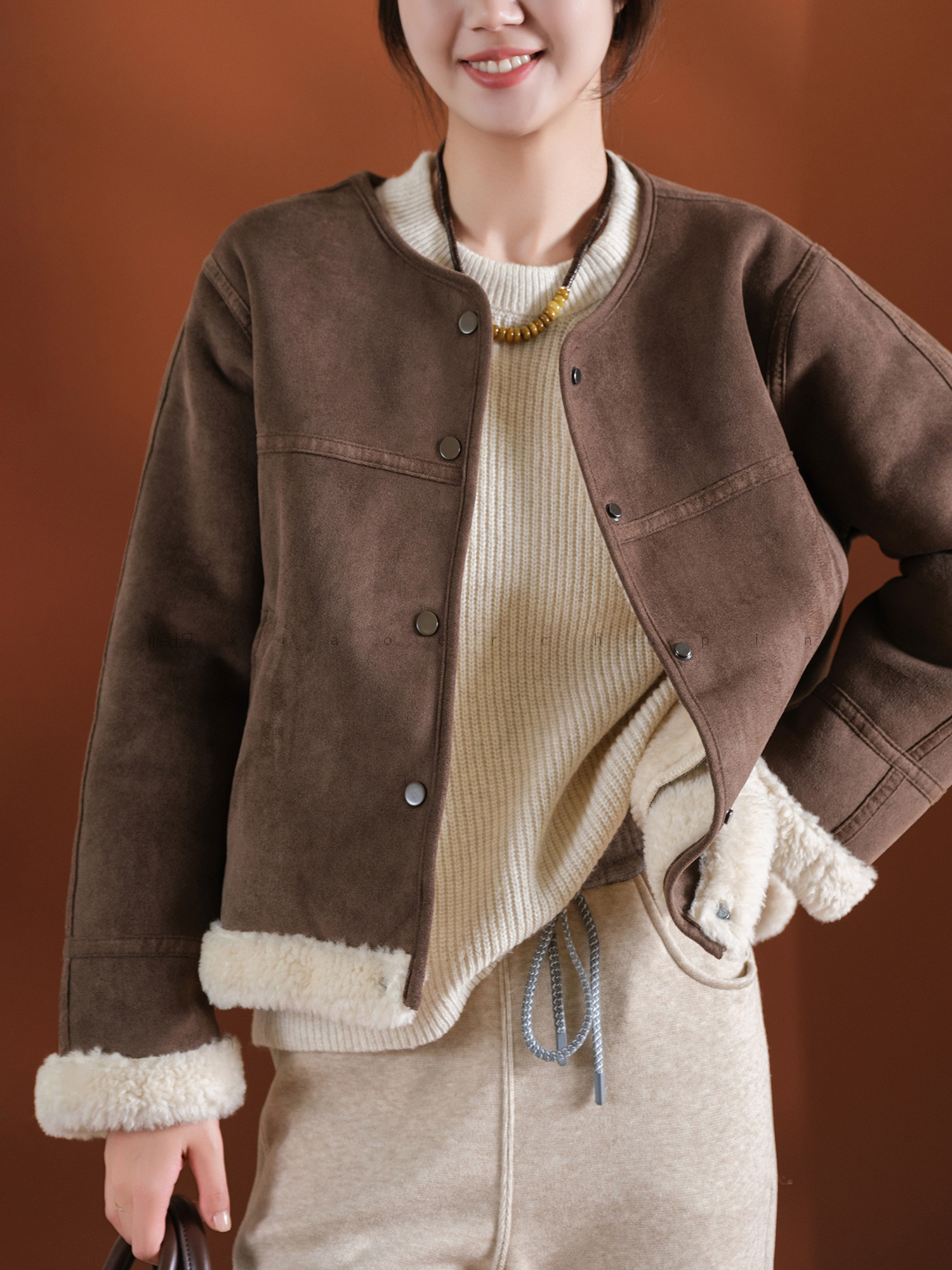Produced by Xiaoer, Korean sister~Peng gram heavy soft suede/large grain lamb velvet lining, warm and slimming jacket for women