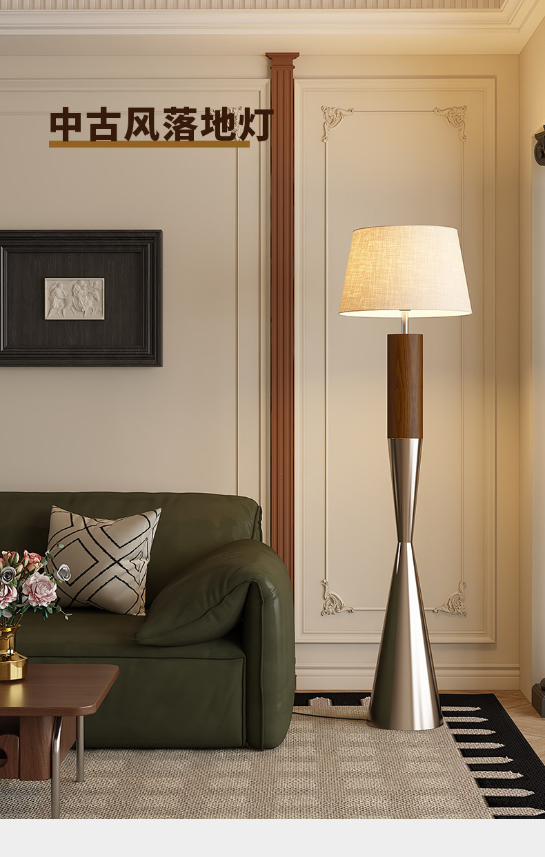 French Mid-Century Style Floor Lamp Next to the Sofa in the Living Room, High-End American Retro Creative Stylish Simple Decorative Lamps