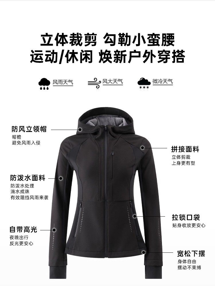 German Autumn and Winter Slim-Fit Softshell Jacket for Women, New Fleece-Lined Three-In-One Sports Coat, Waist-Cinching Slimming Top