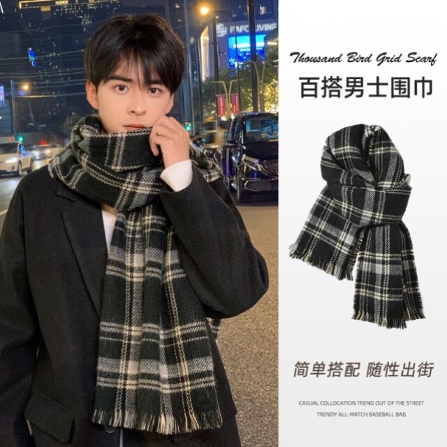Scarf men's winter 2025 new versatile Korean plaid scarf women's boyfriend gift couple neck scarf to keep warm