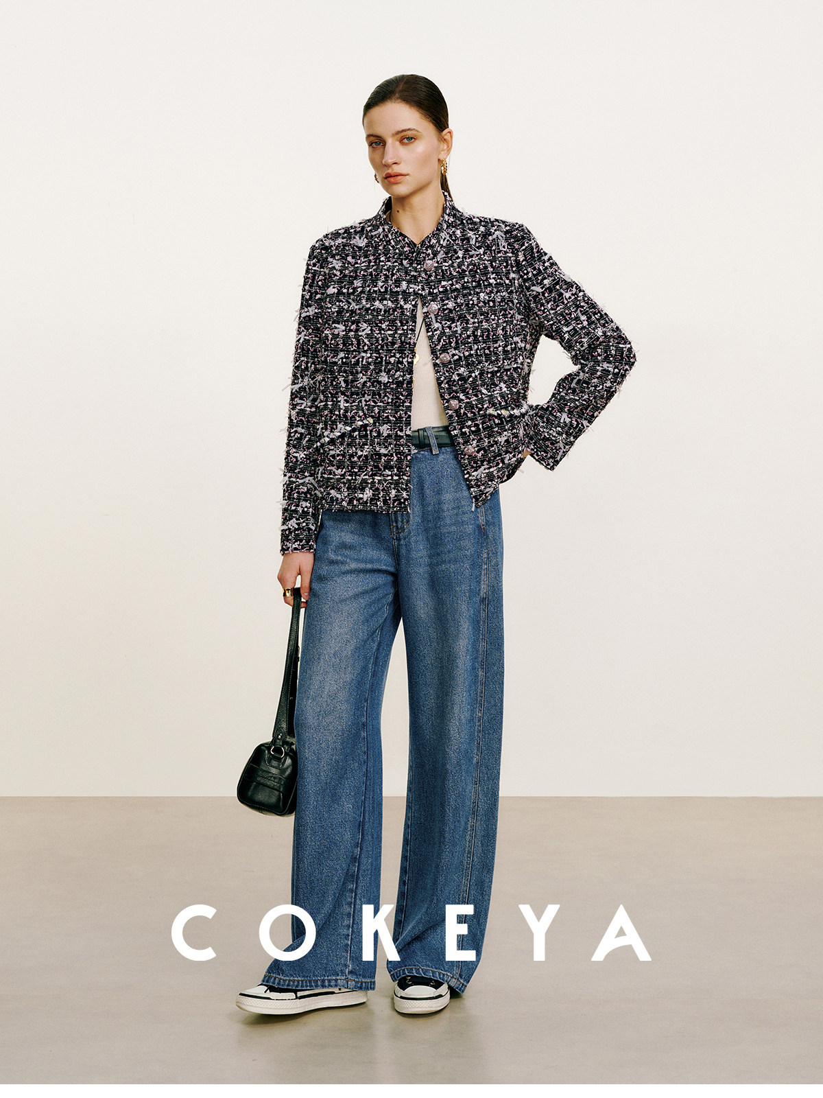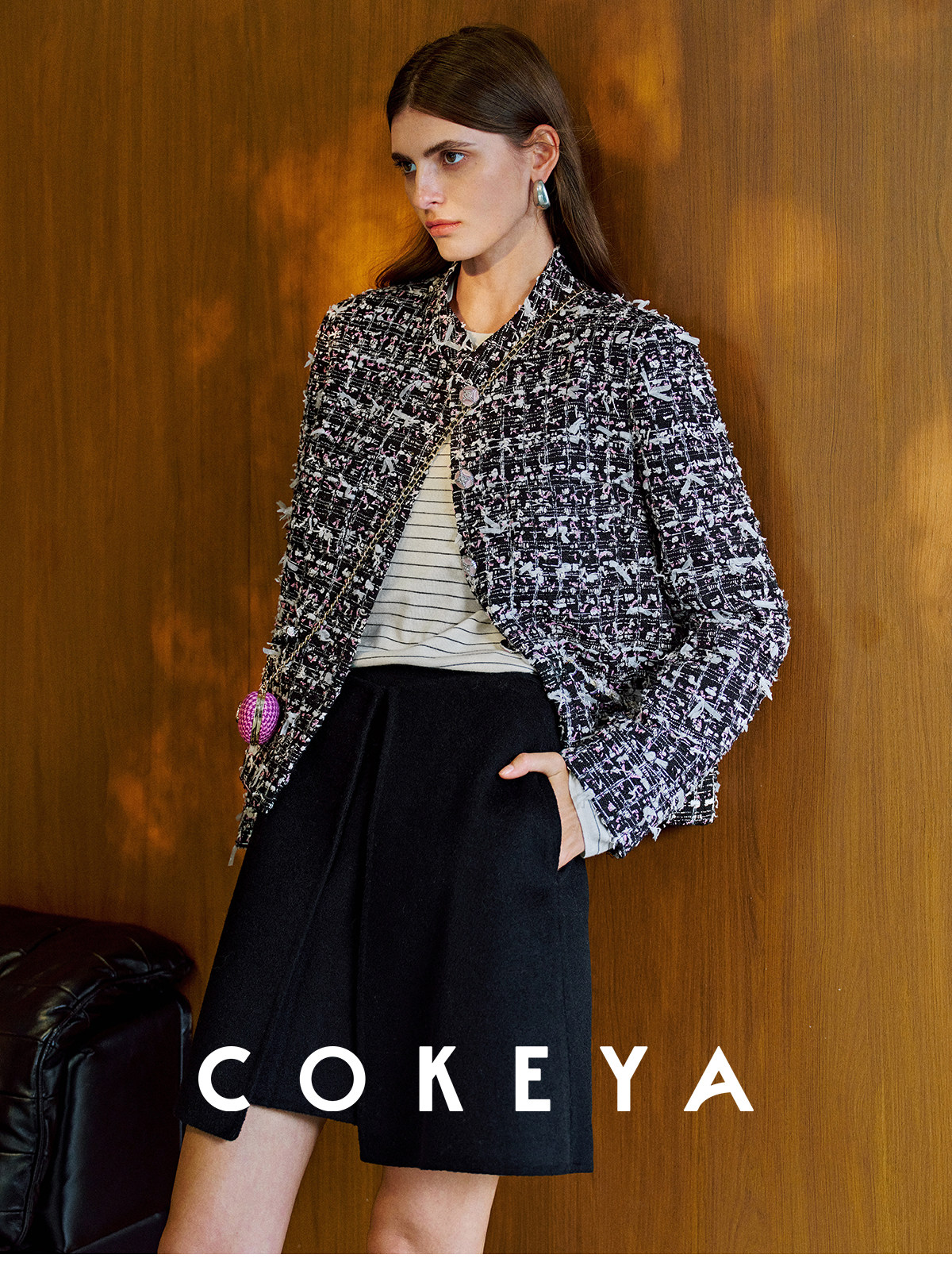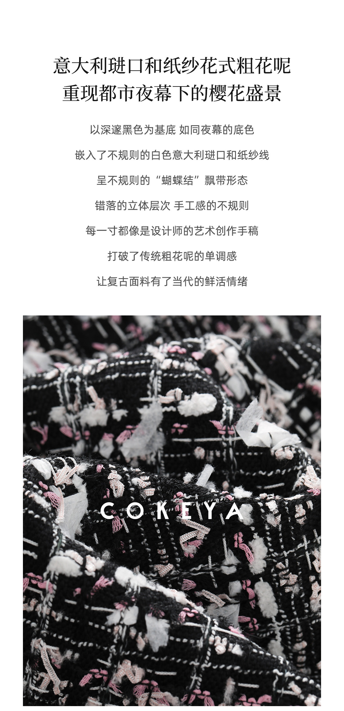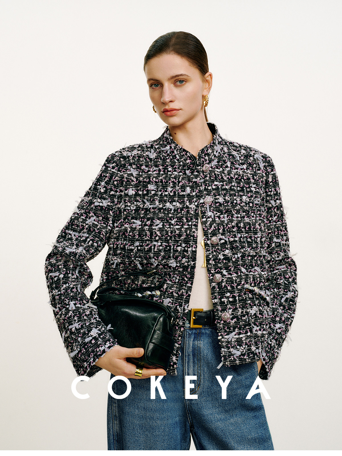 Cokeya/Urban Night Cherry~Italian Imported Japanese Paper Yarn Tweed Stand Collar Chanel-Style Jacket for Women Spring