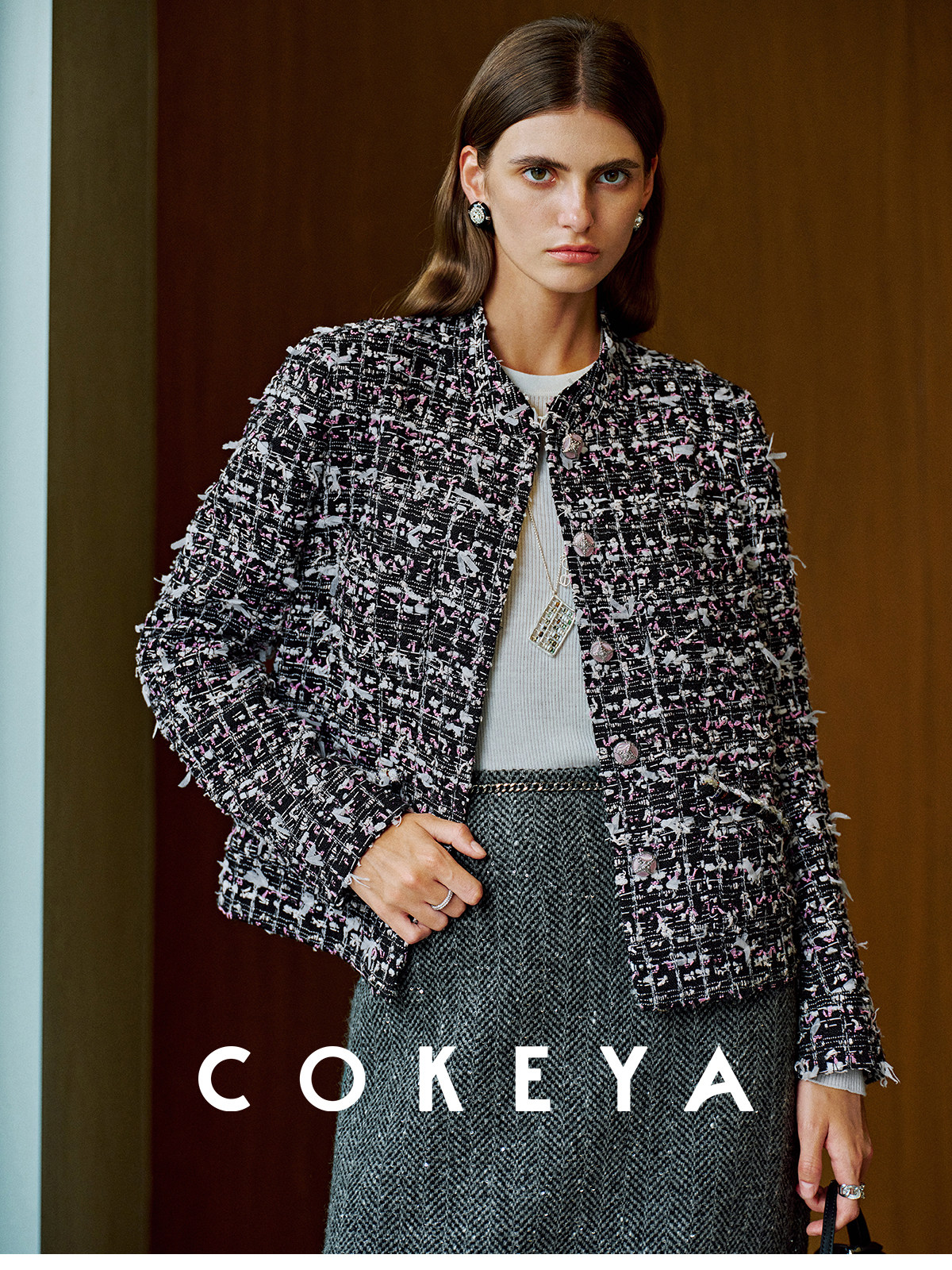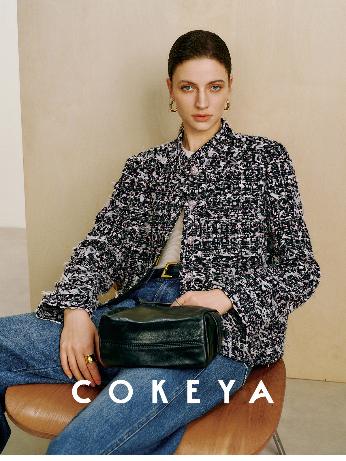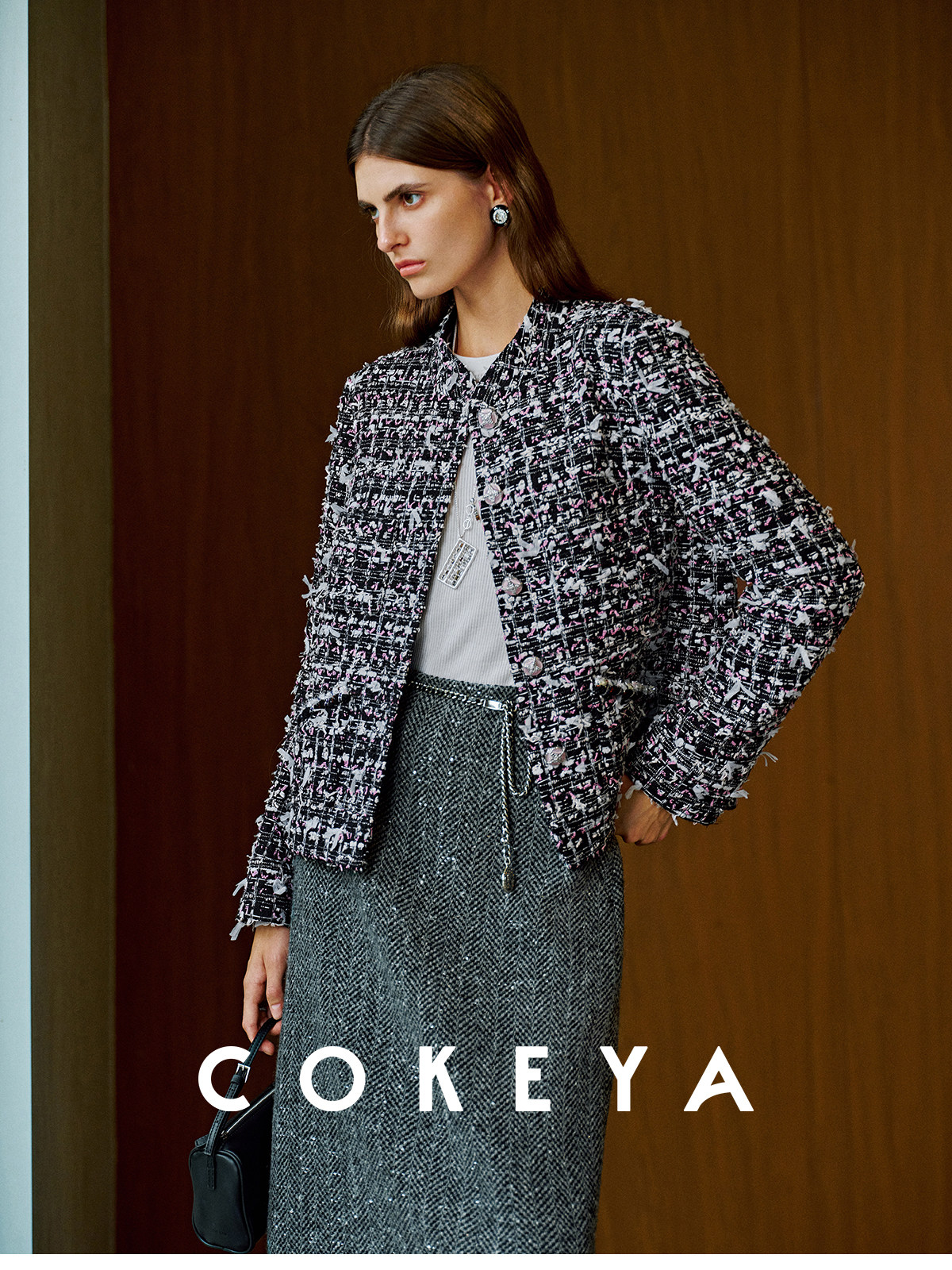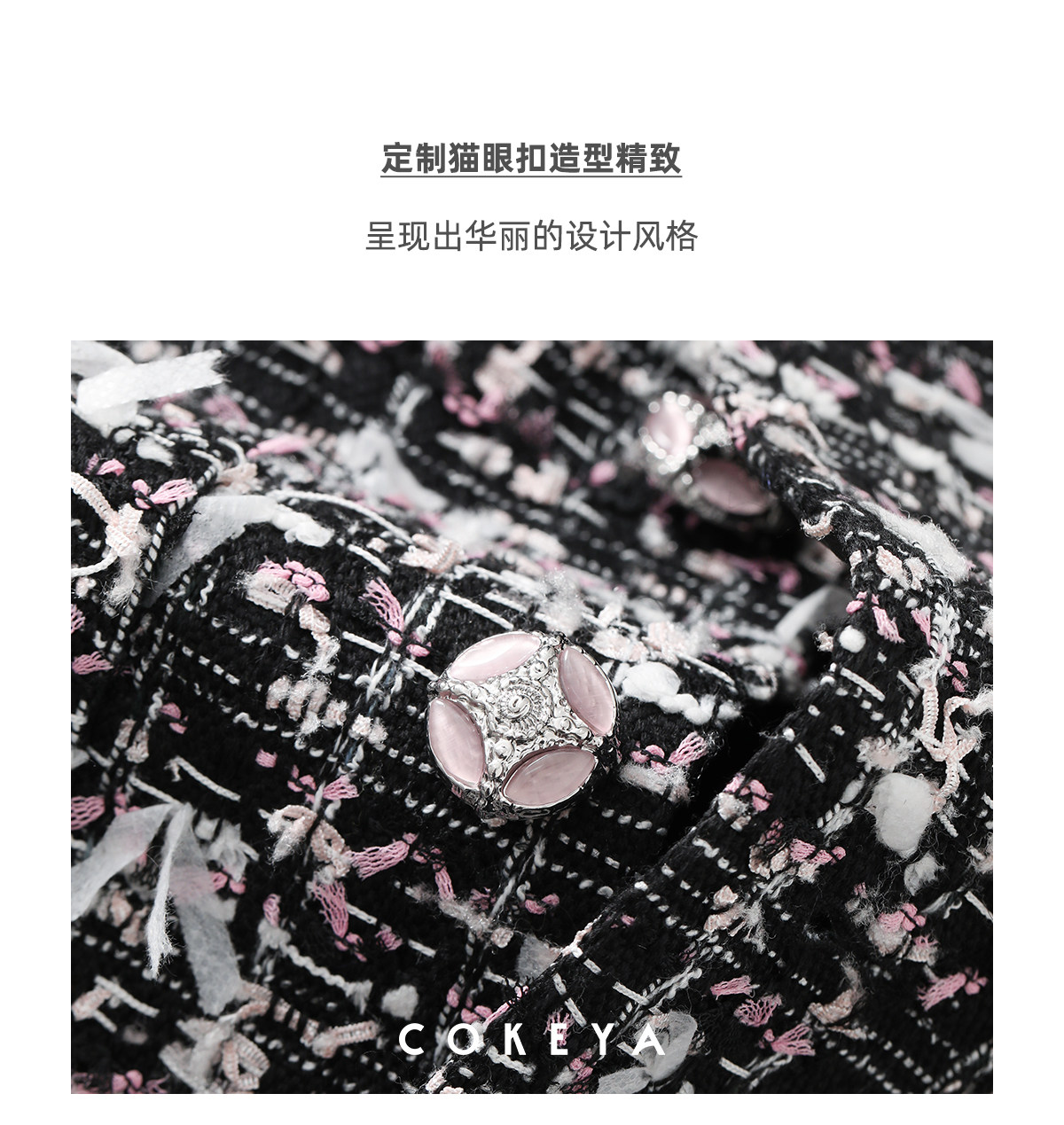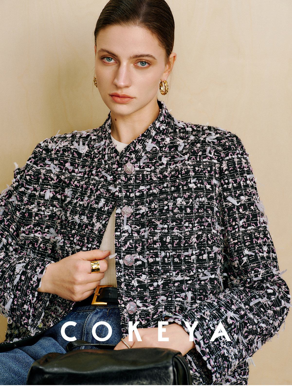 Cokeya/Urban Night Cherry~Italian Imported Japanese Paper Yarn Tweed Stand Collar Chanel-Style Jacket for Women Spring