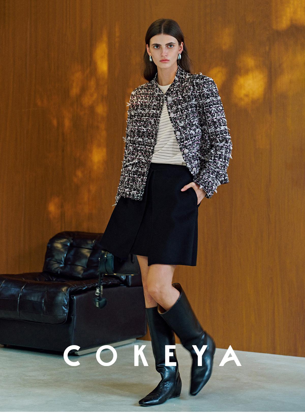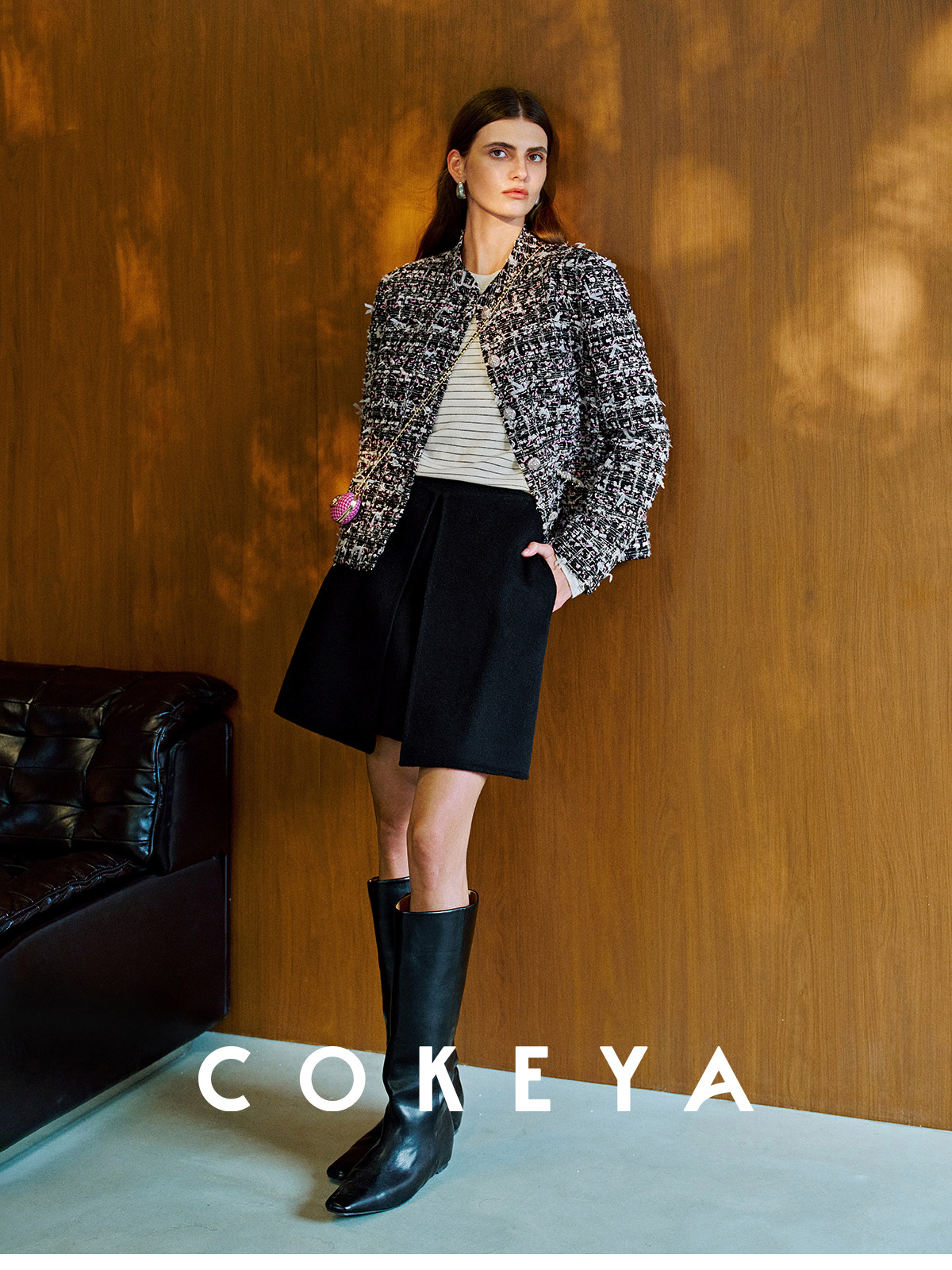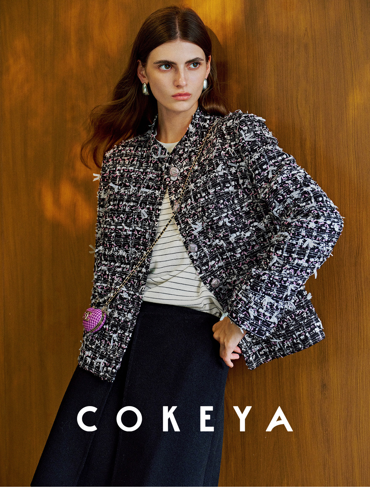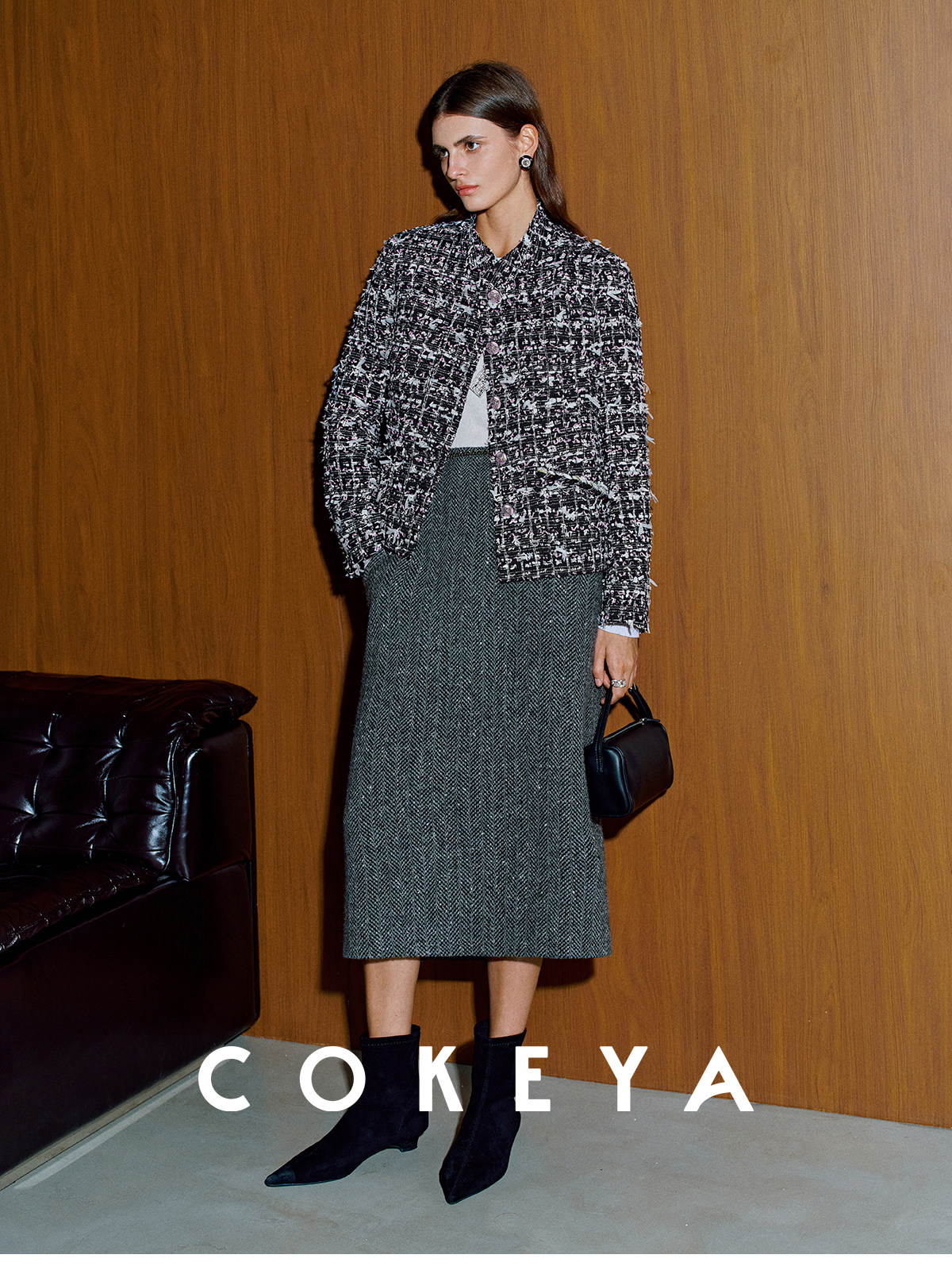 Cokeya/Urban Night Cherry~Italian Imported Japanese Paper Yarn Tweed Stand Collar Chanel-Style Jacket for Women Spring