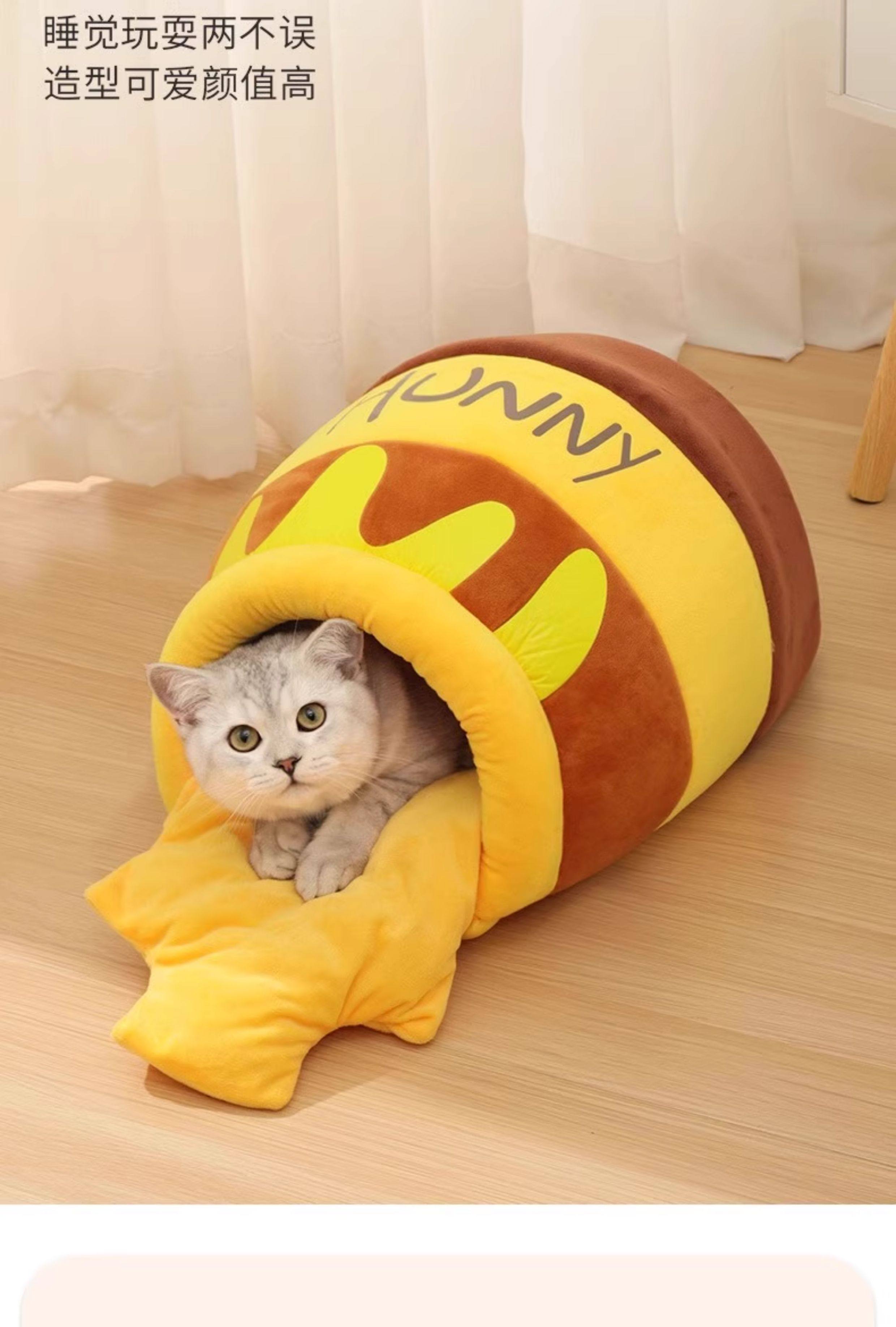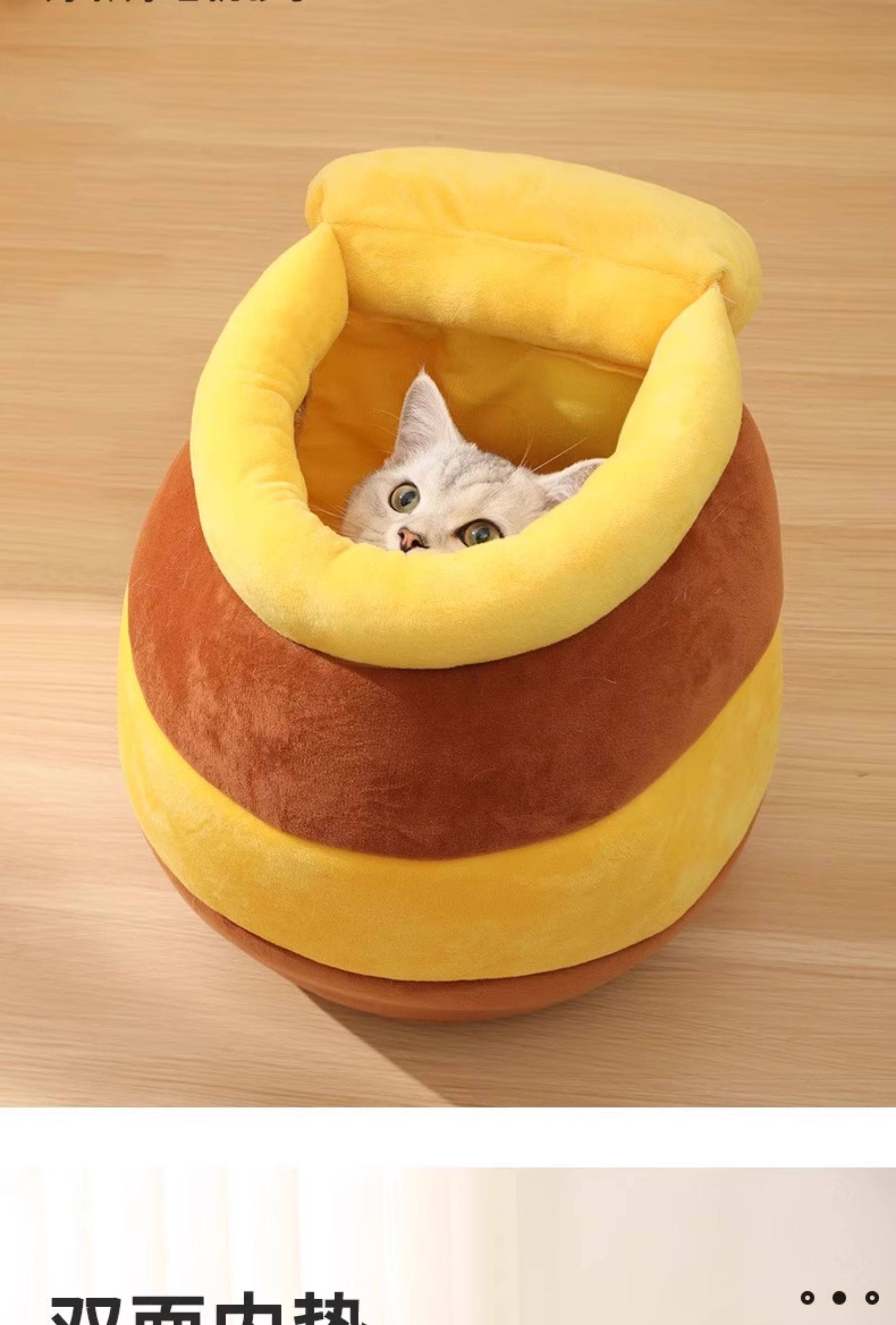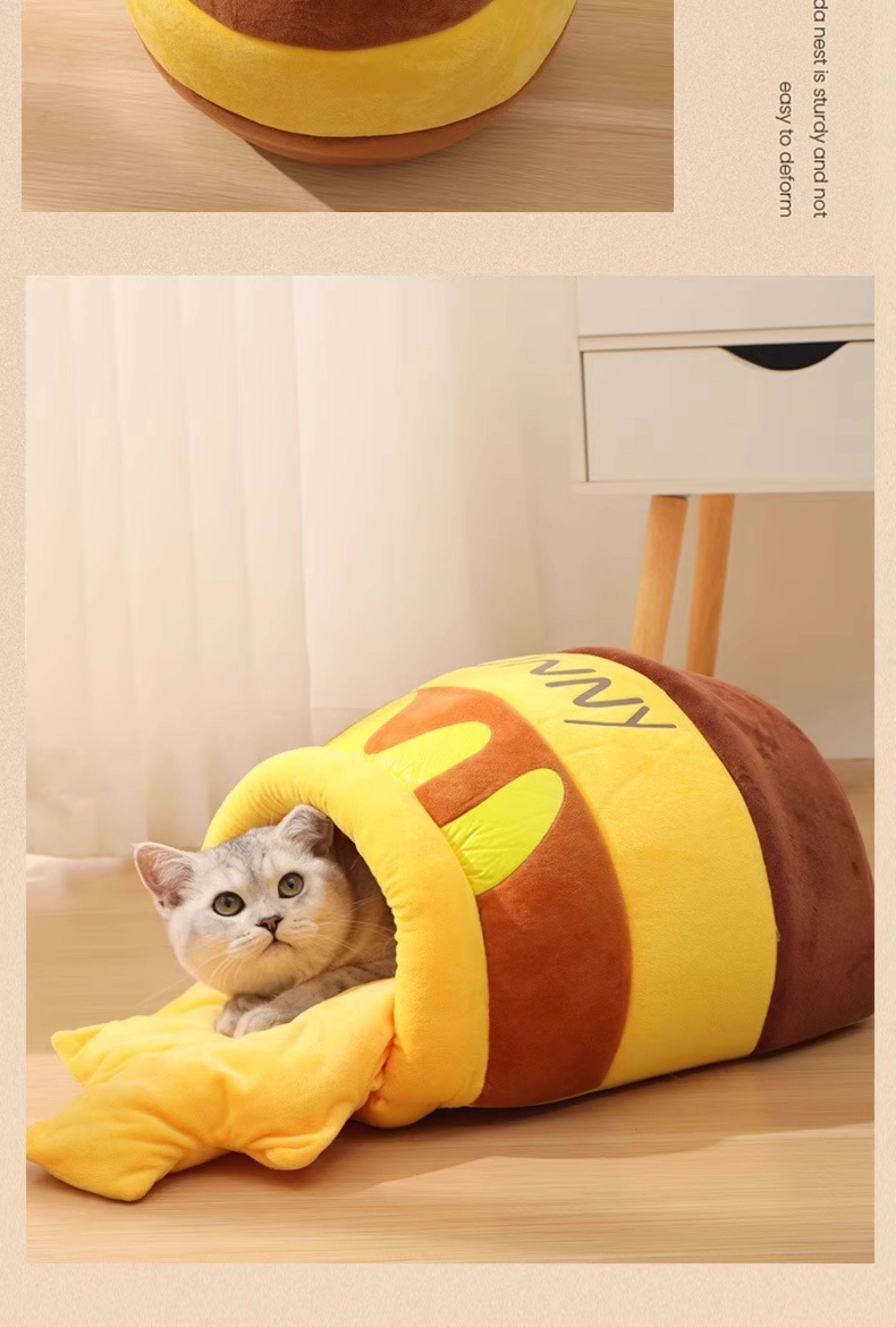 Cat Nest for Winter Warmth, Cat Sleeping Bag, Honey Jar Closed-Type Safe Sleeping Nest, Winter Sleeping Pad for Kittens, Winter Essential Cat House