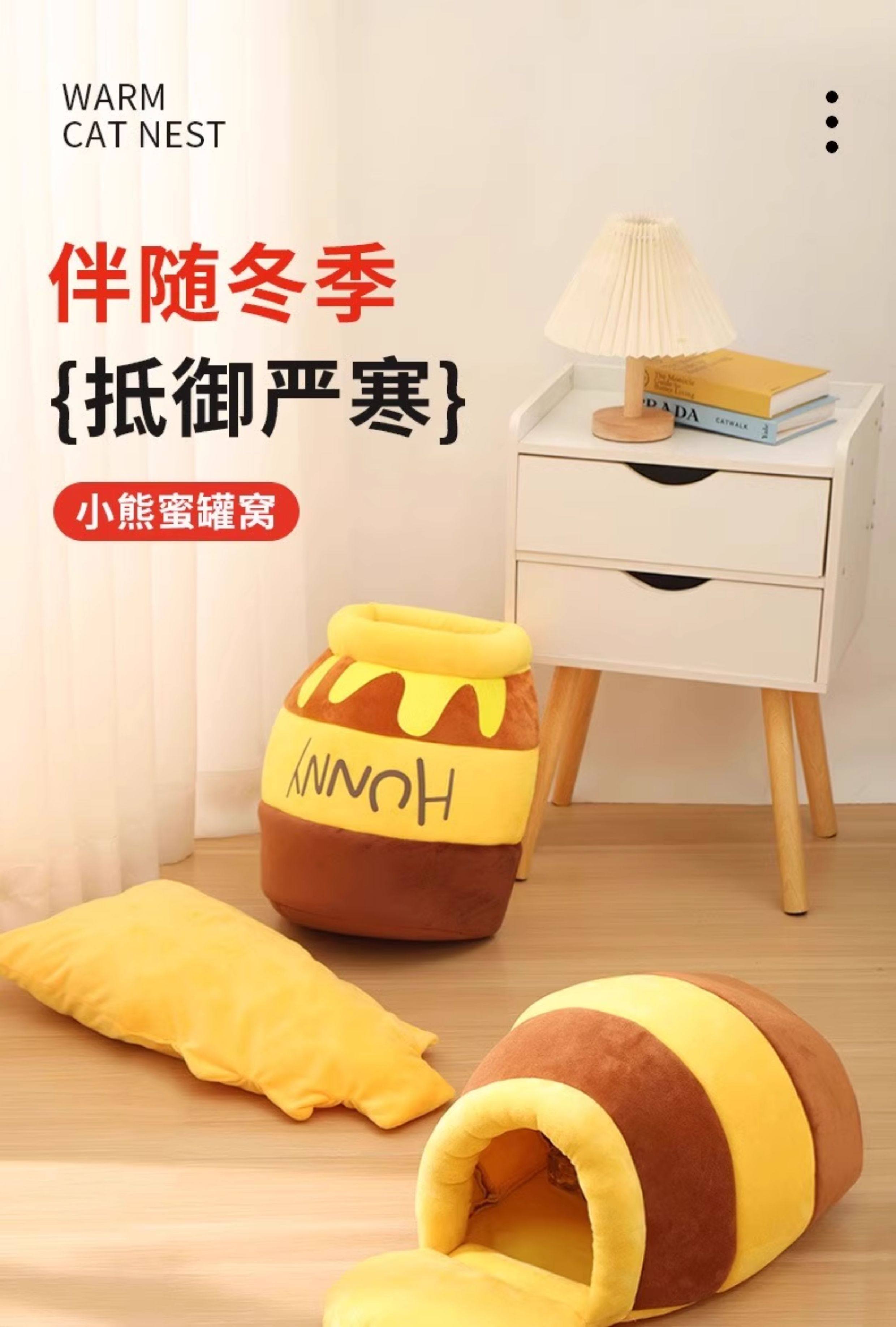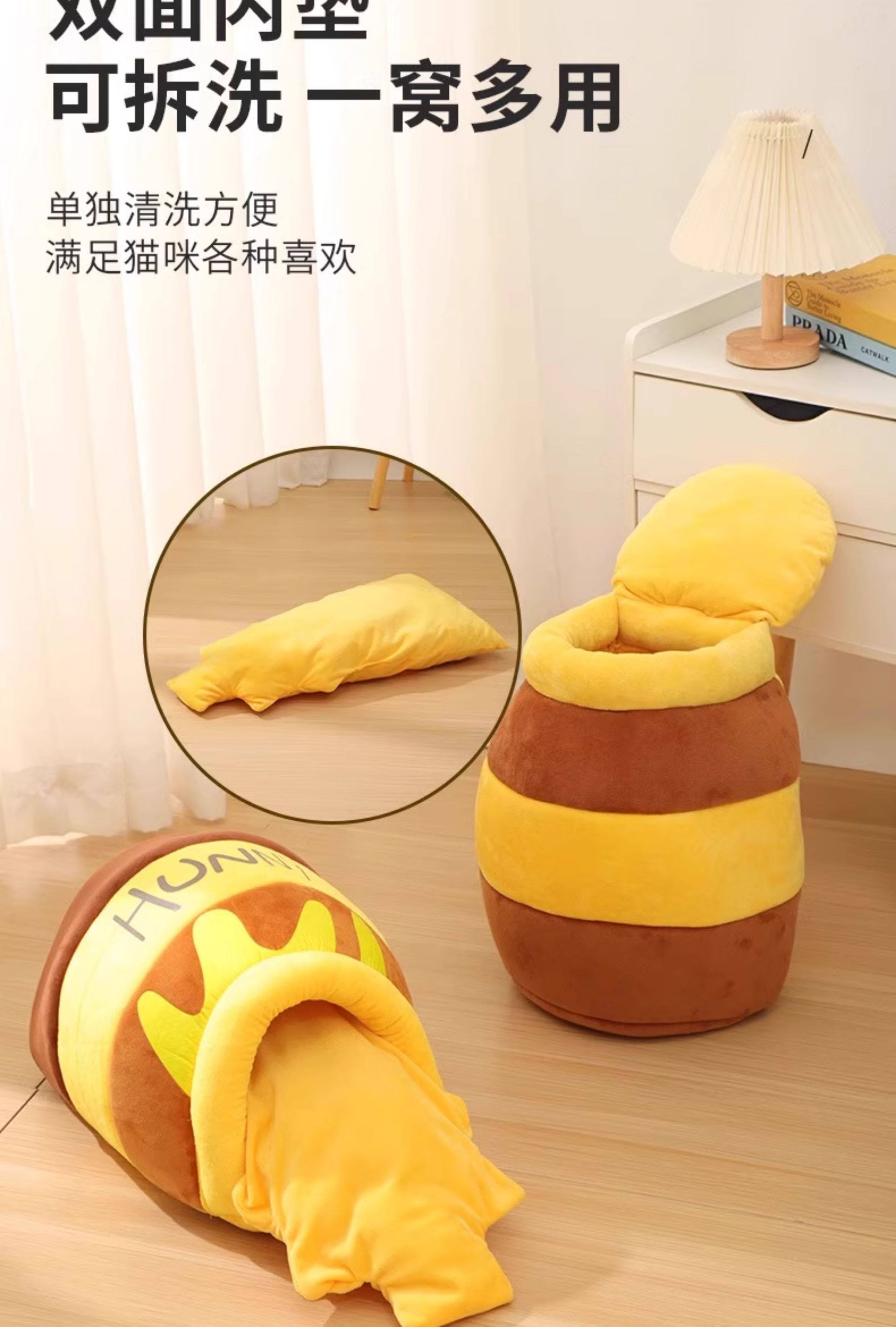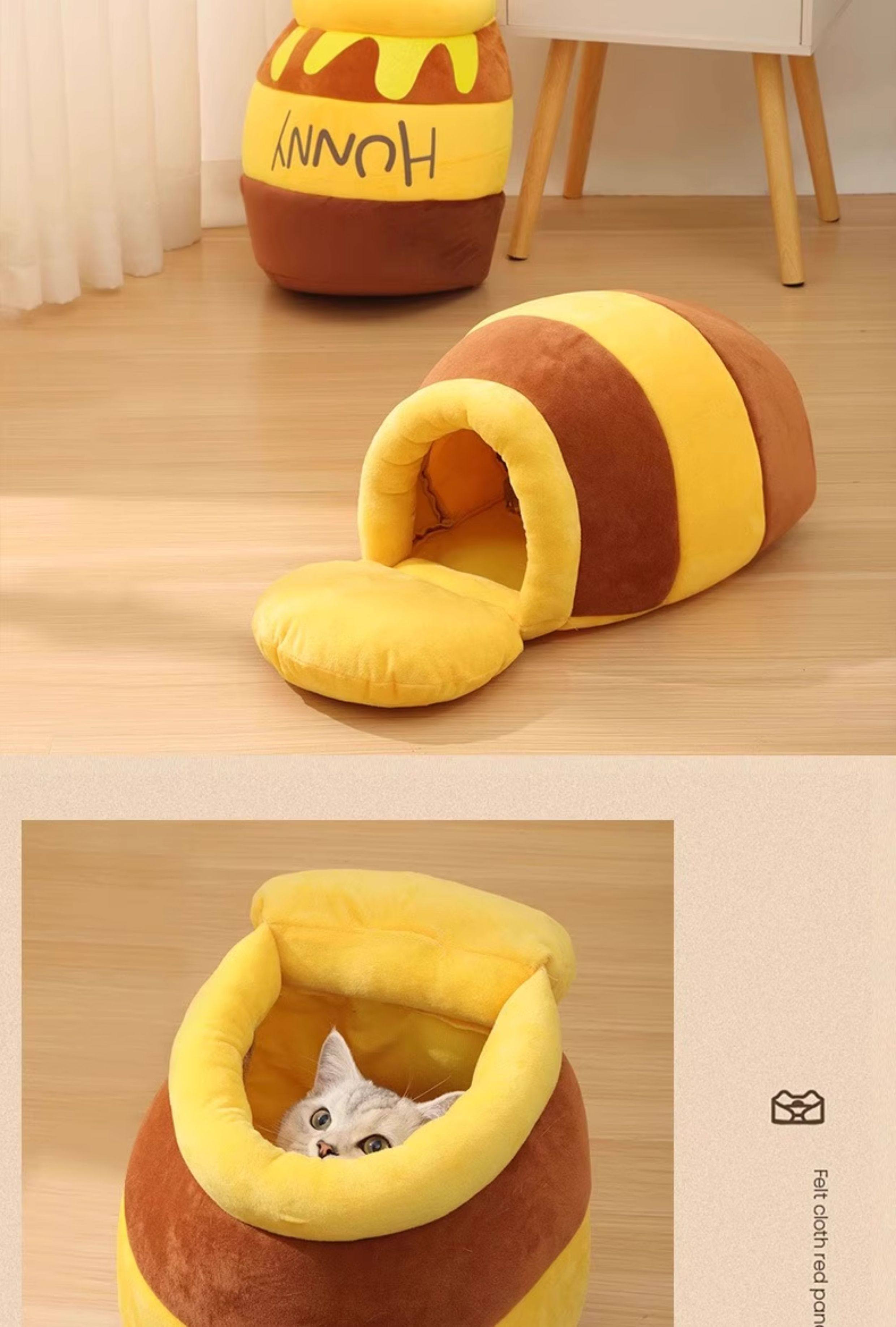 Cat Nest for Winter Warmth, Cat Sleeping Bag, Honey Jar Closed-Type Safe Sleeping Nest, Winter Sleeping Pad for Kittens, Winter Essential Cat House