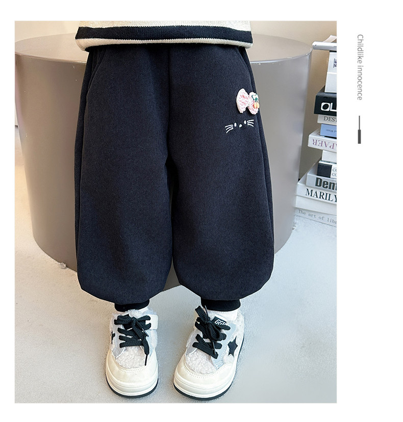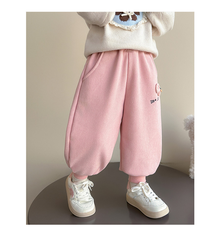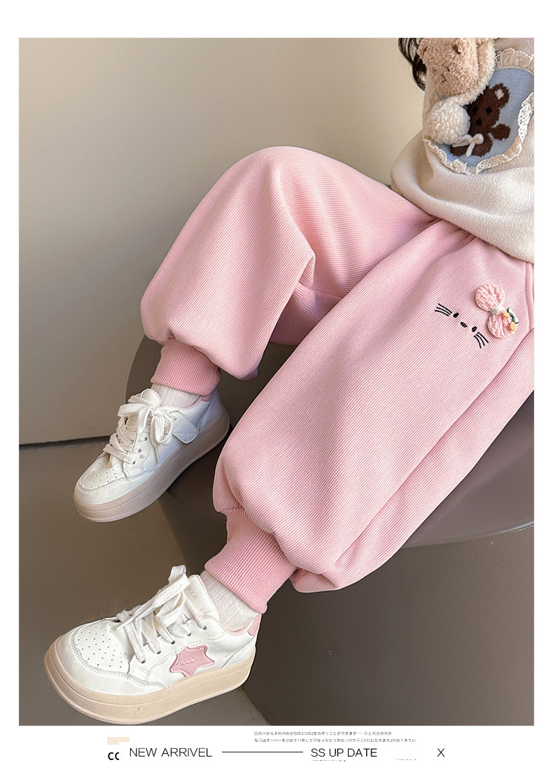 Girls' Fleece-Lined Pants Autumn and Winter 2025 New Style Children's Fleece Sweatpants Stylish Little Girls' Casual Jogger Pants
