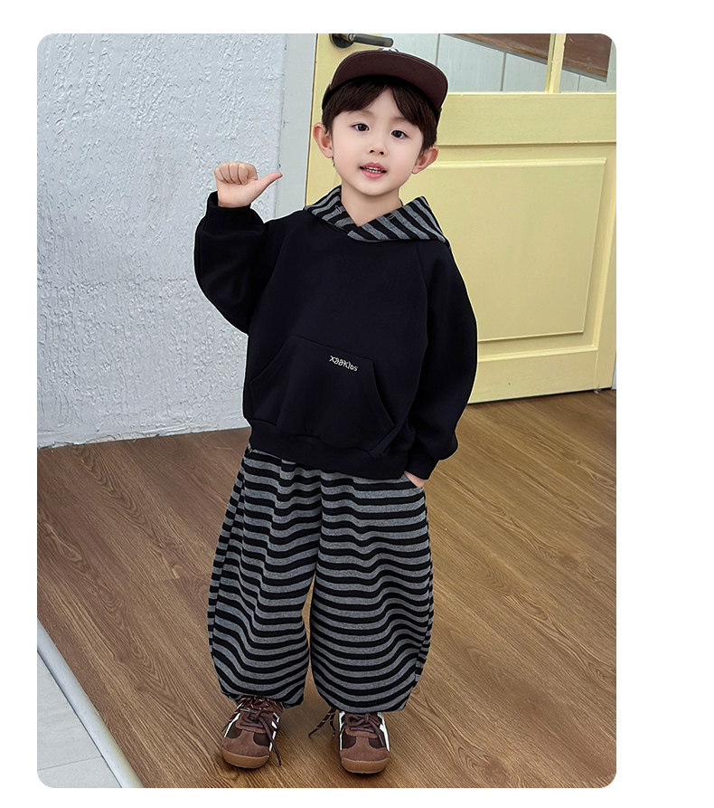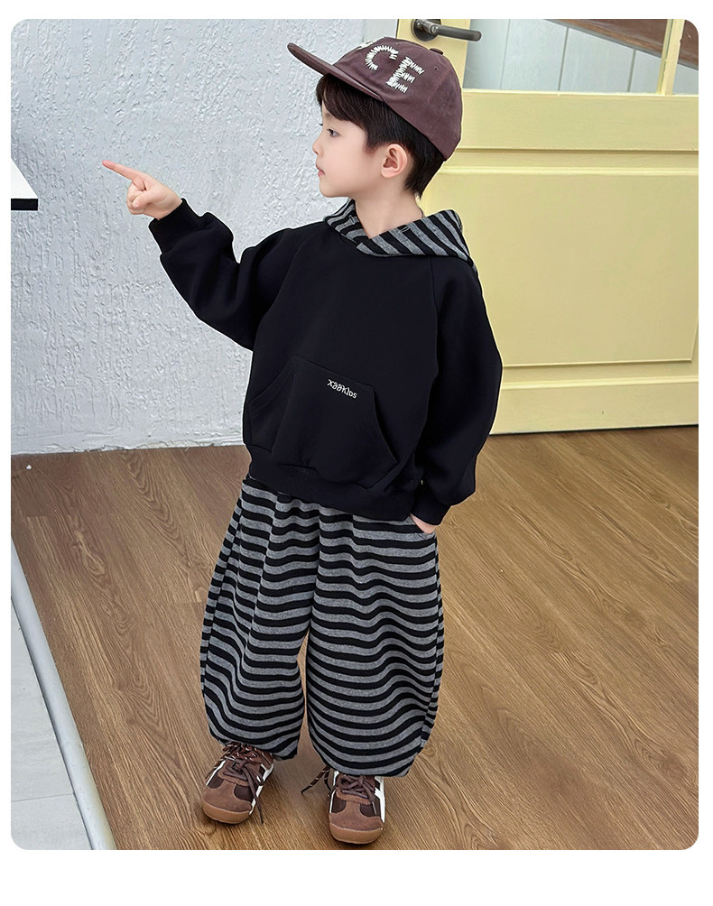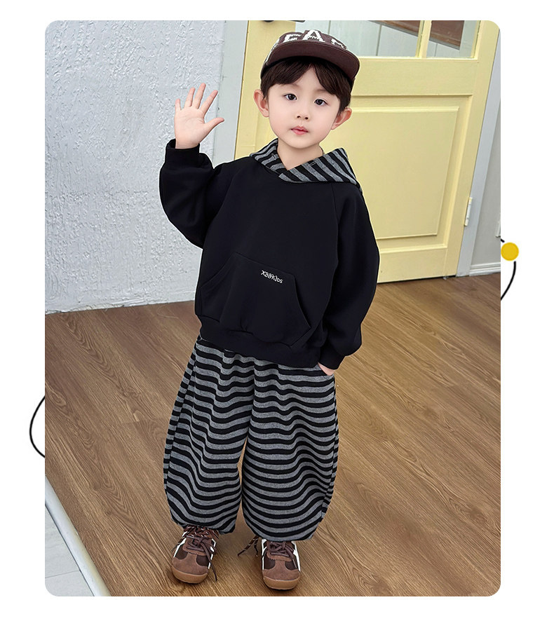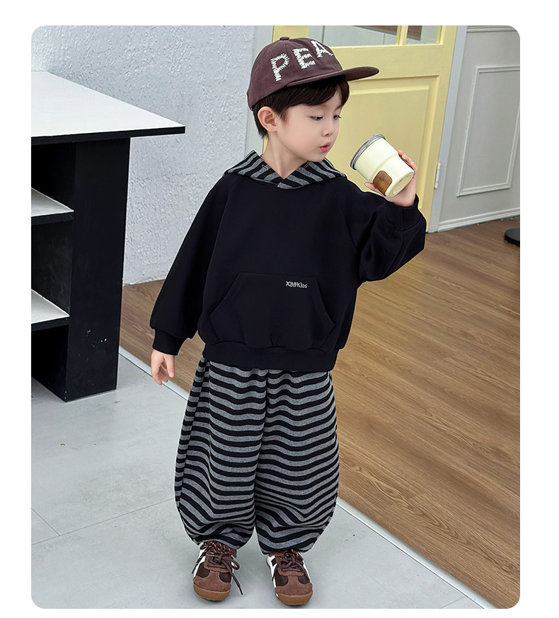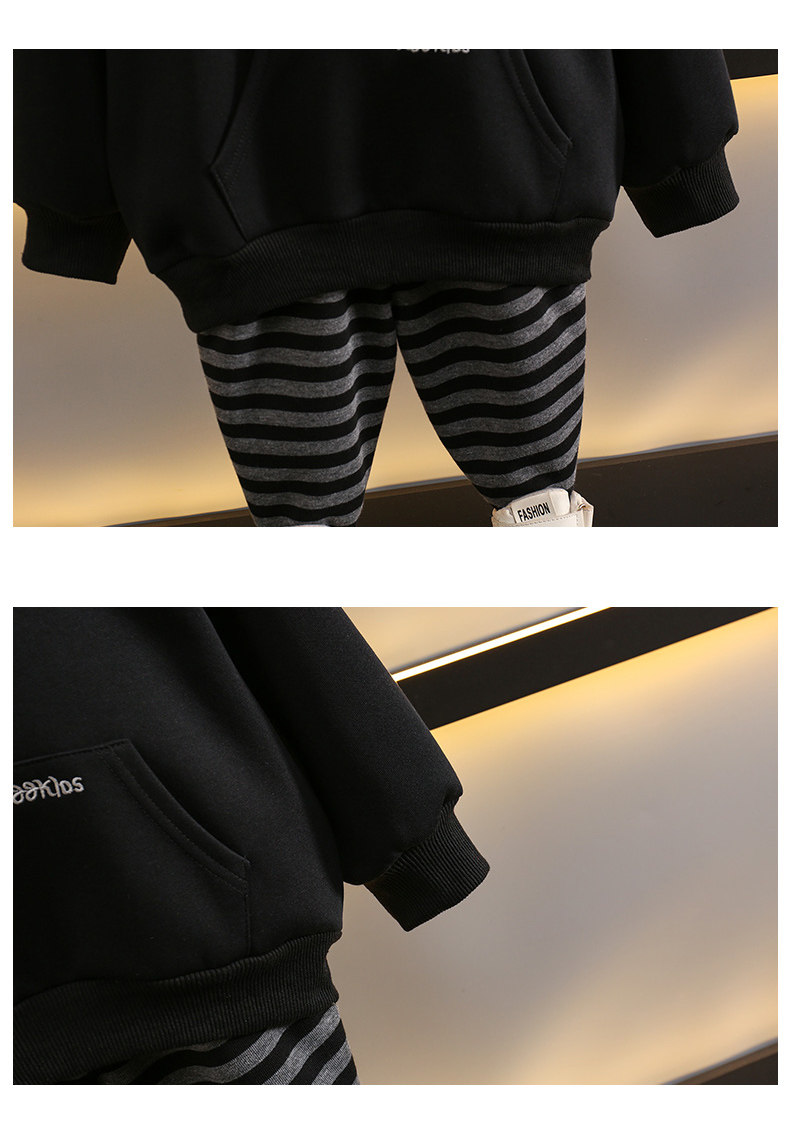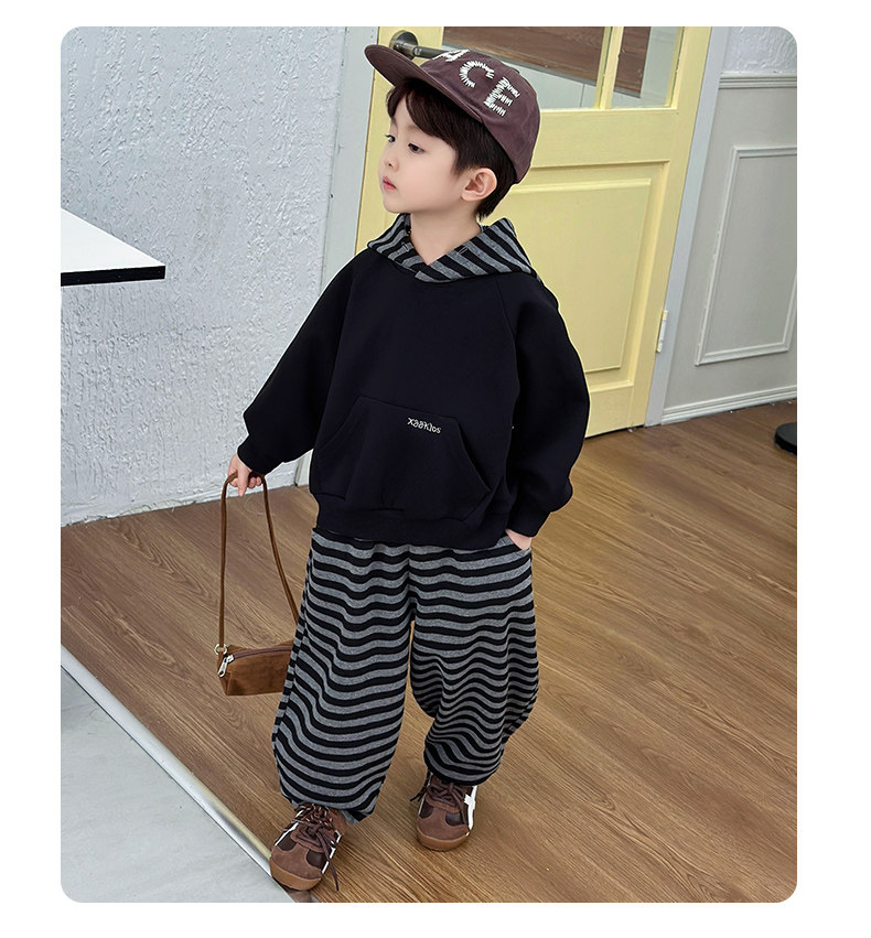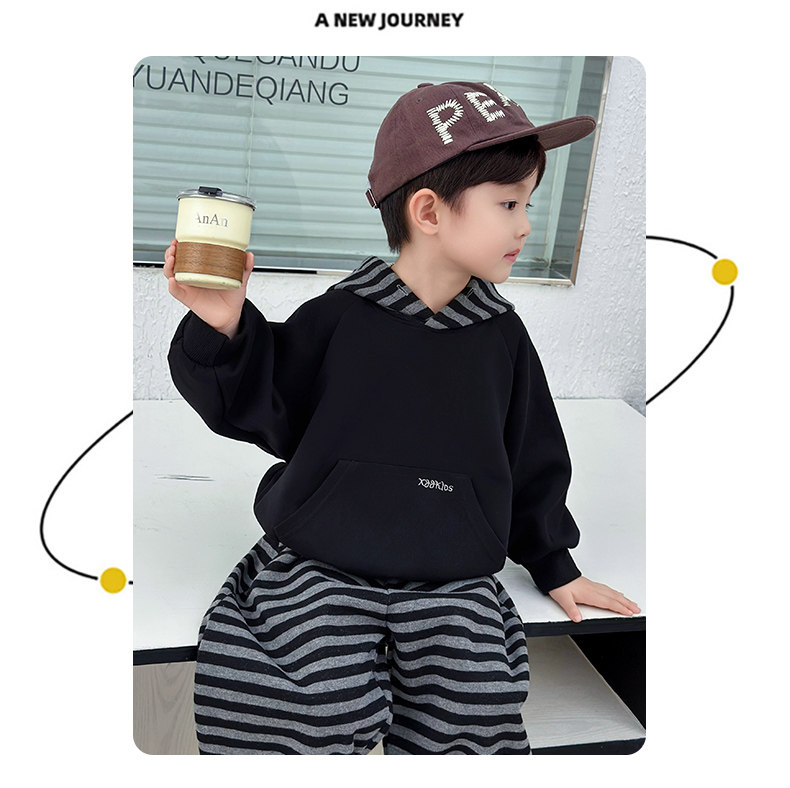 French Boys' Autumn Sweatshirt Fleece Set Children's Winter Fleece Sports Pants 2025 New Baby Clothes
