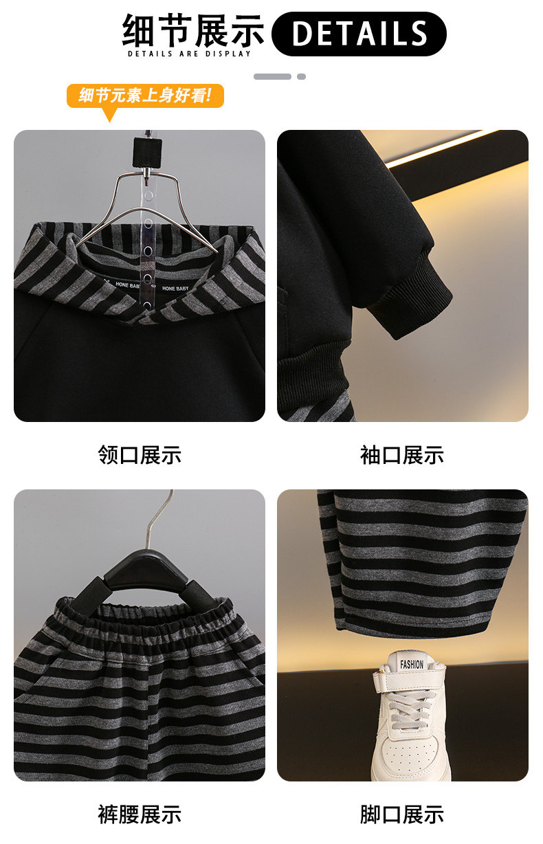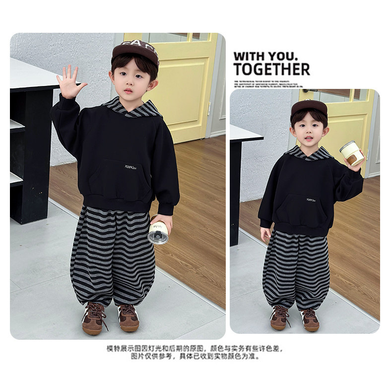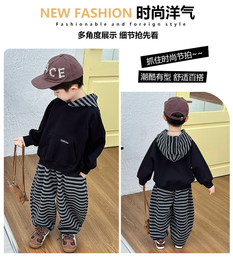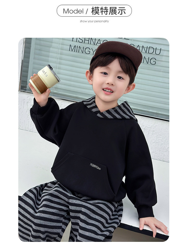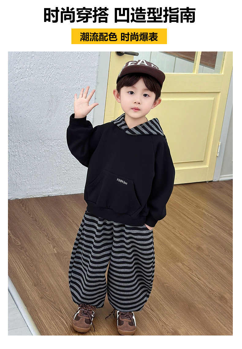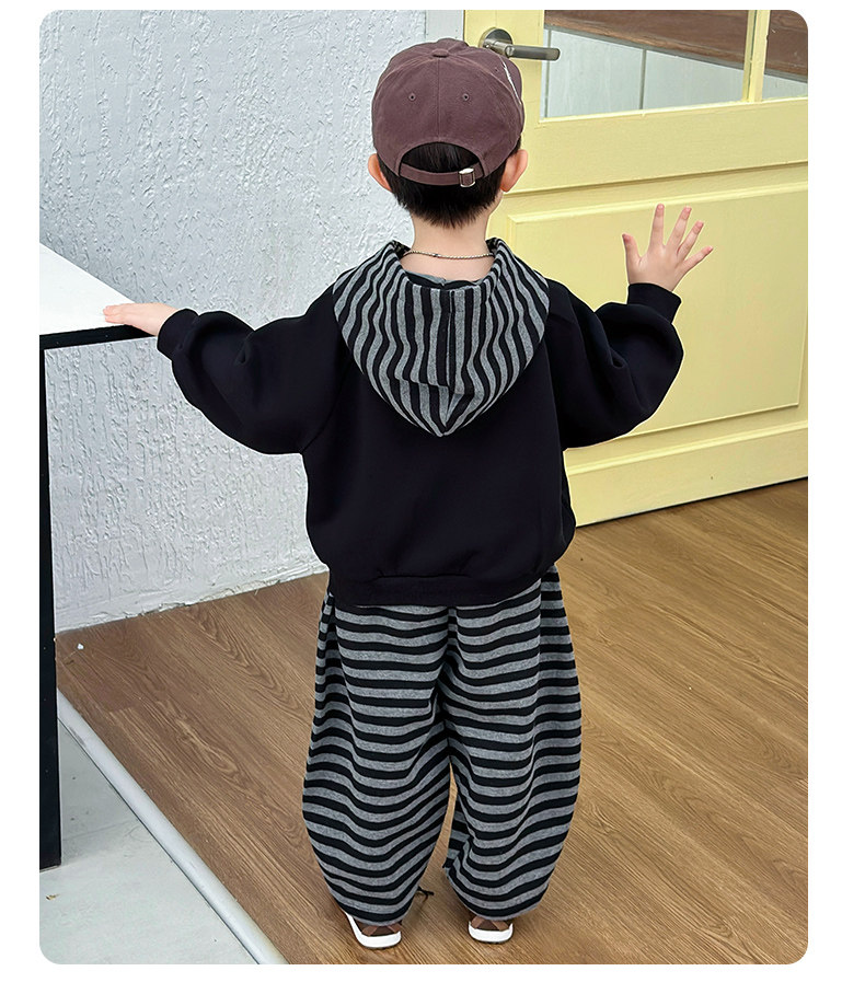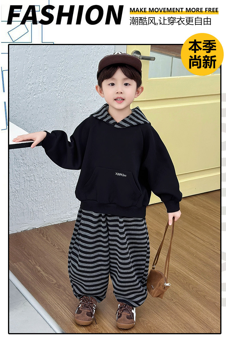 French Boys' Autumn Sweatshirt Fleece Set Children's Winter Fleece Sports Pants 2025 New Baby Clothes