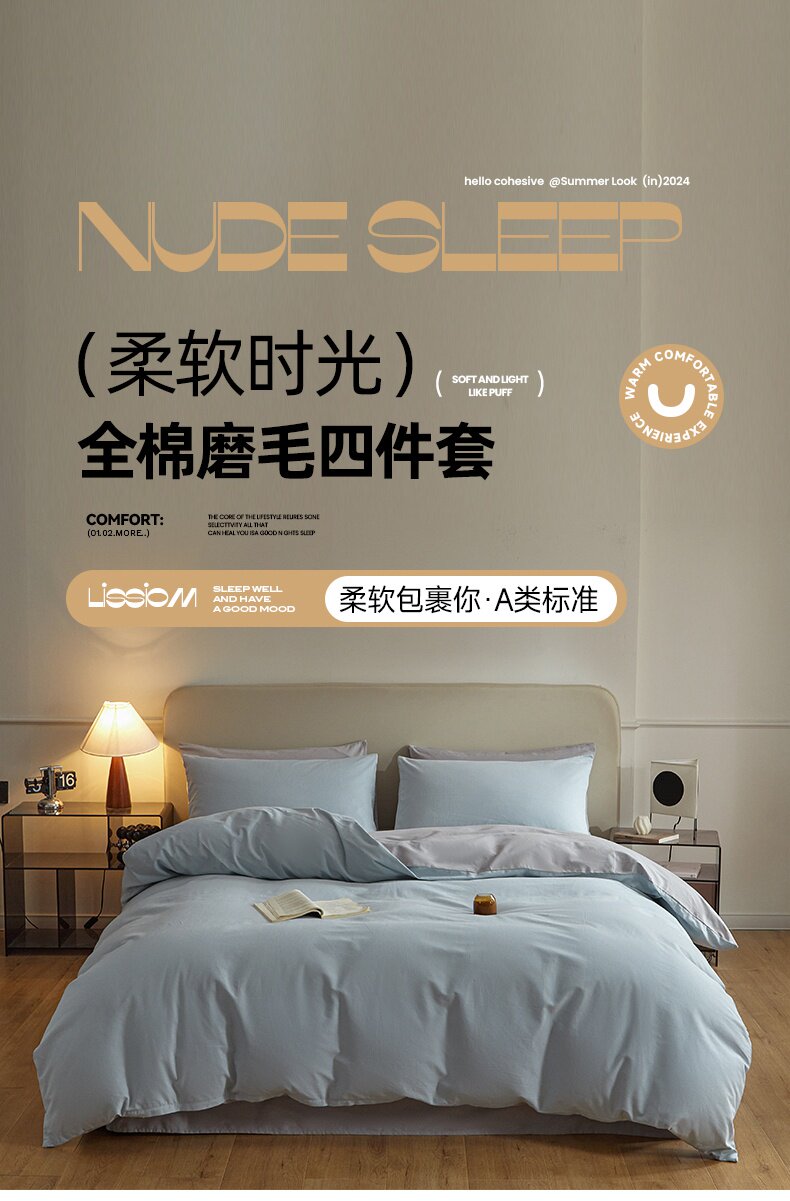 Yalu Light Luxury Cotton Brushing Bed Four-piece Set 2025 New Cotton Bed Sheets, Quilt Covers, Fitted Sheets, Autumn and Winter Bedding