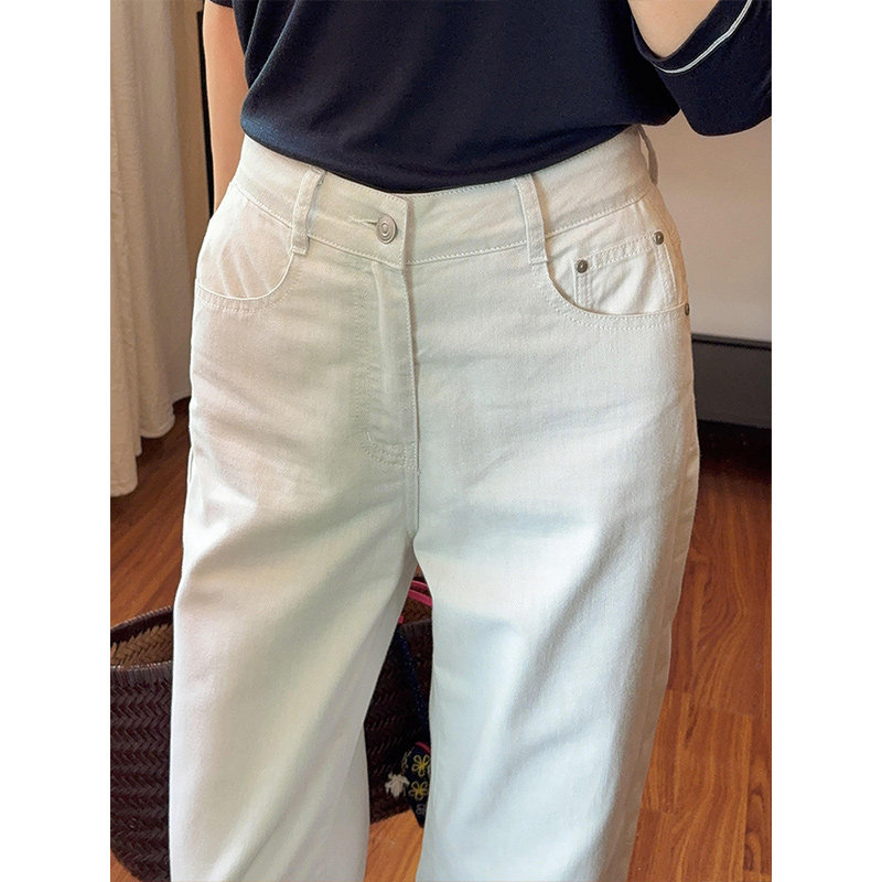 [Limited Stock]White Straight-Leg Jeans 2025 Autumn Simple Versatile Commuter Style High-Waisted Casual Pants