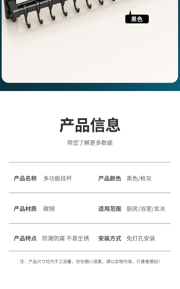 Color Classification Gun Gray = 30cm Double Pole with 6 Hooks,Gun Gray = 40cm Double Pole with 8 Hooks,Gun Gray = 50cm Double Pole with 10 Hooks,Gun Gray = 60cm Double Pole with 12 Hooks,Black = 30cm Double Pole Comes with 6 Hooks,Black = 40cm Double Pole Comes with 8 Hooks,Black = 50cm Double Rod with 10 Hooks Included,Black = 60cm Double Pole Comes with 12 Hooks