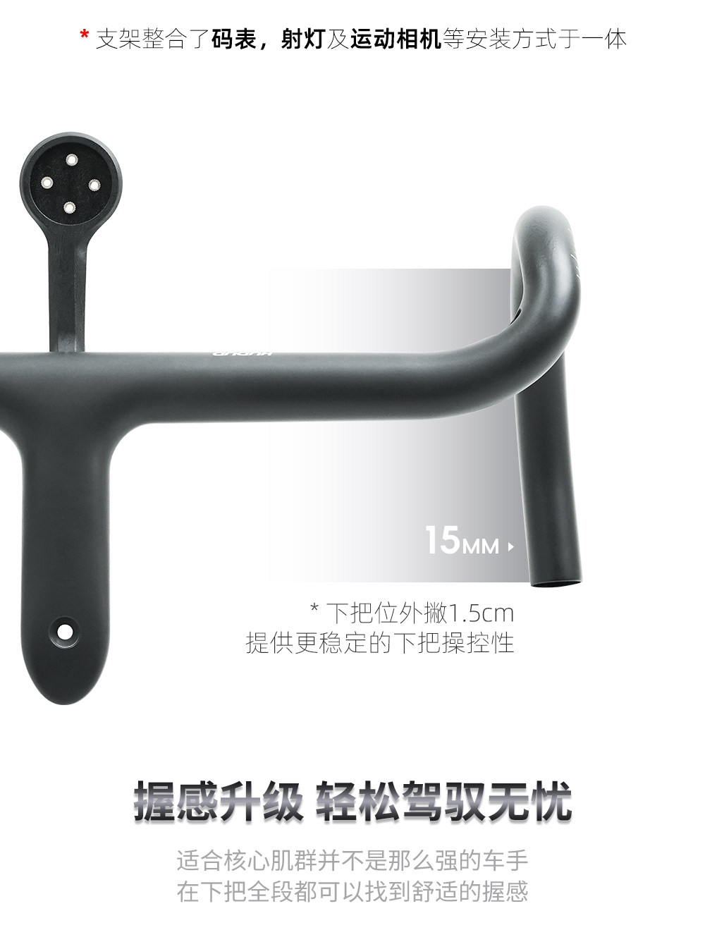 Hudud Carbon Fiber Integrated Handlebar for Road Bikes, Integrated Handlebar for Climbing, Fully Internal Cable Routing, Ultra-Light Carbon Fiber Road Handlebar