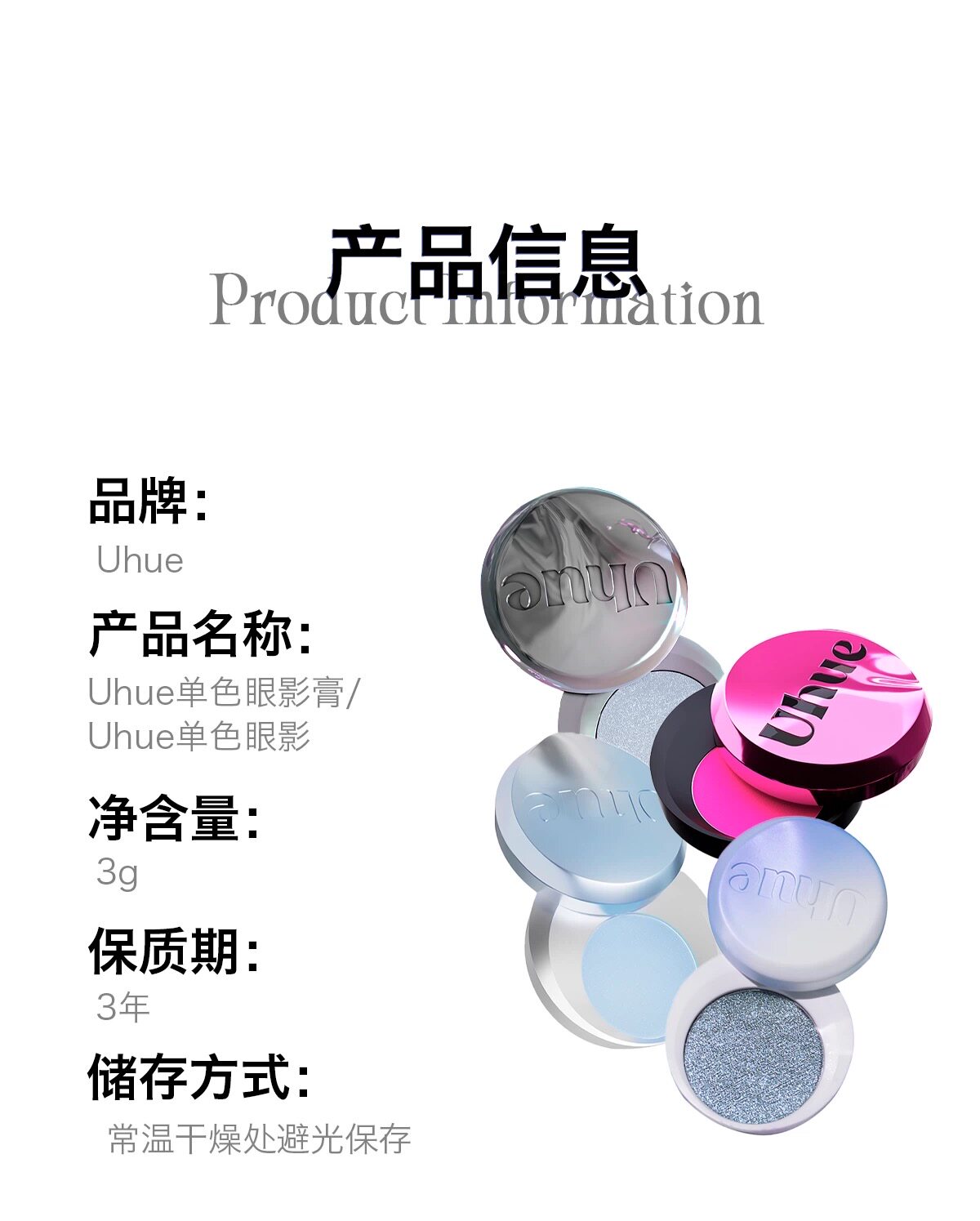 Uhue Single Color Eyeshadow Cream Polar Eye Millennium Y2K Blue Smoky Matte Pearlescent Color Single Color Portable K06