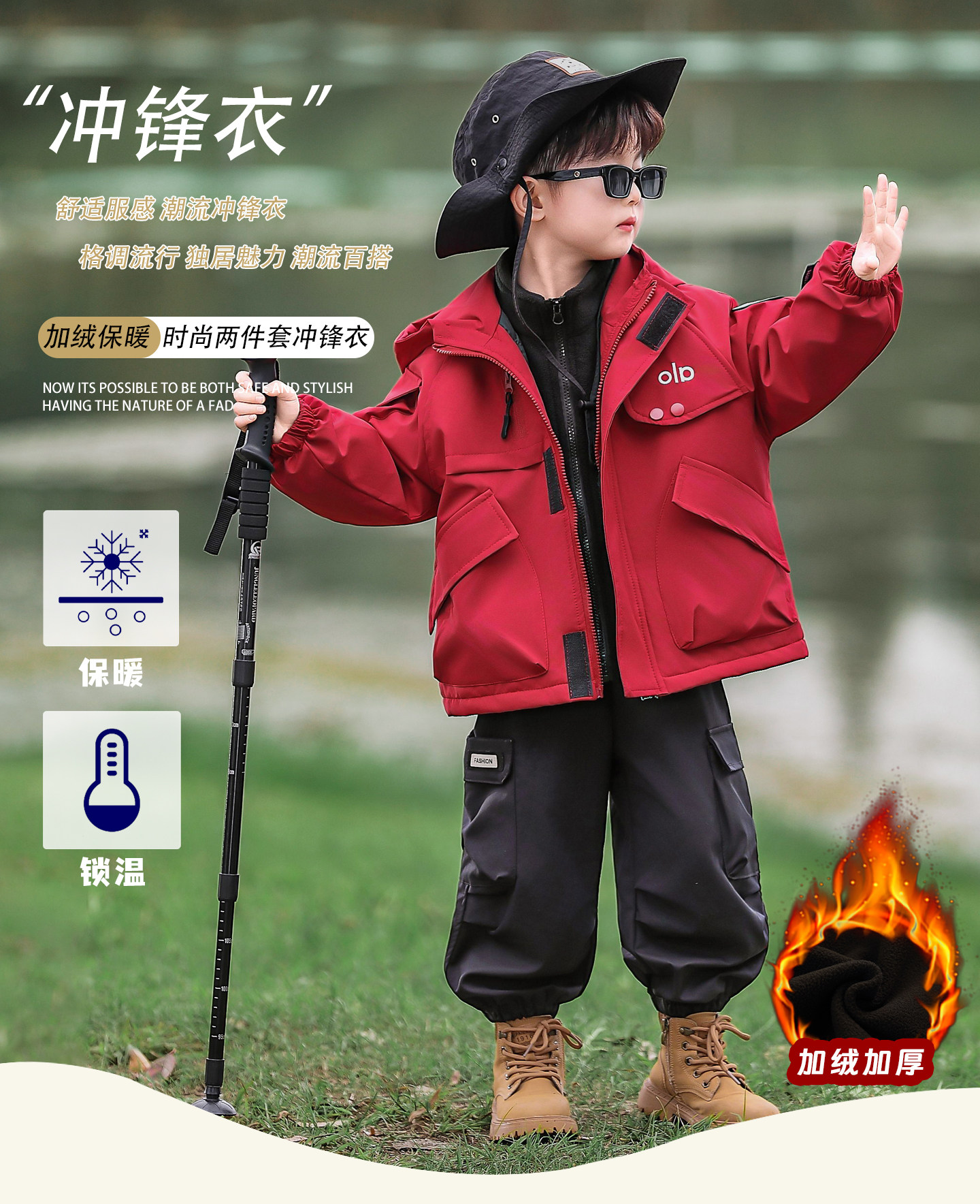 Boys' Fleece-Lined Red Jacket, Autumn and Winter 2025 New Model, Children's Three-In-One Outdoor Jacket, Boys' Thickened New Year Outfit