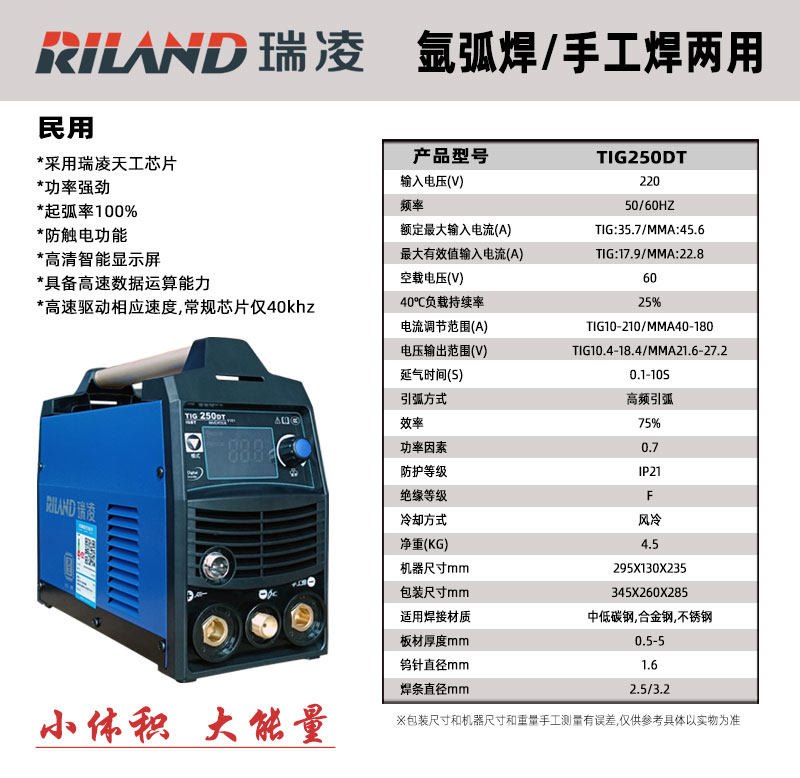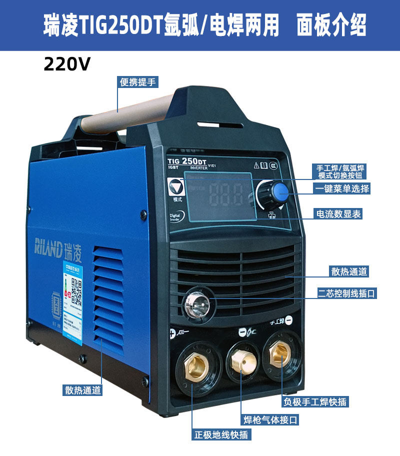 Ruiling Tig250Dt Argon Arc Welding Dual-Purpose All-In-One Machine Multi-Functional Household 220V Stainless Steel Thin Plate Welding