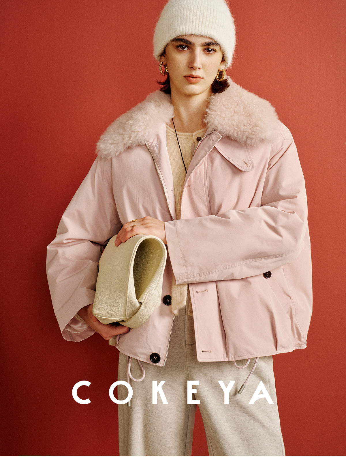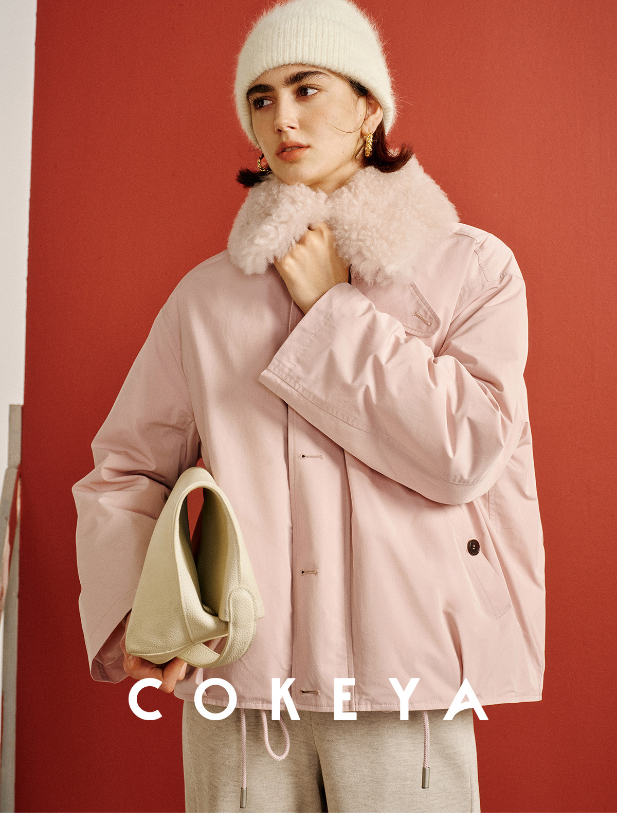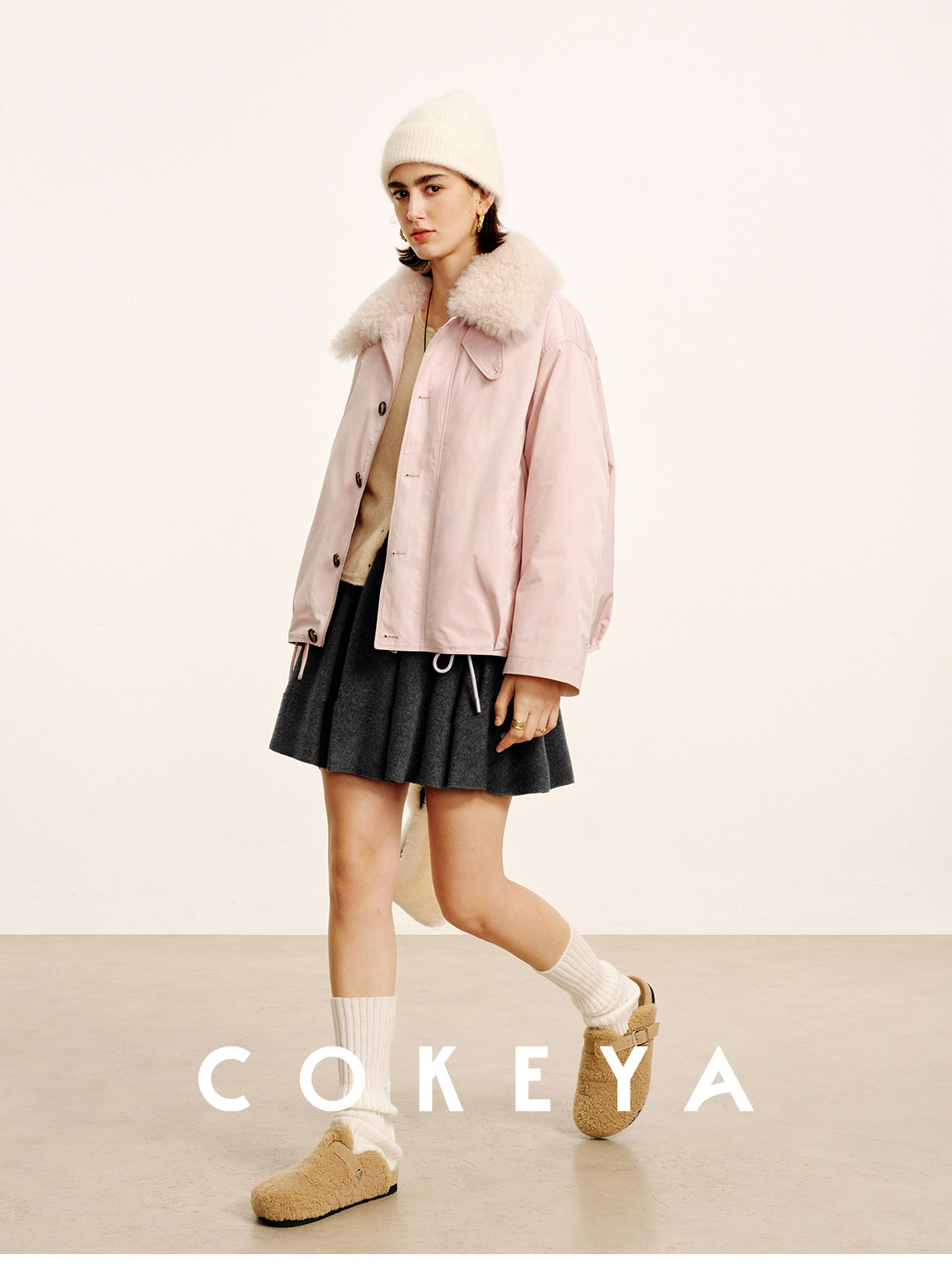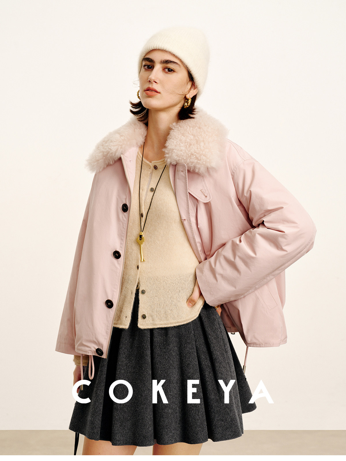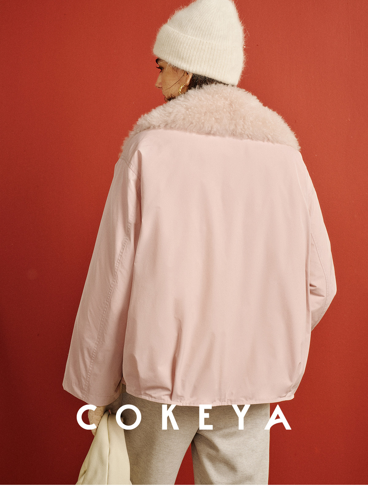 Cokeya/Snow Country Elf~ Fur Integrated Fur Collar White Goose down Short Pink Parka down Jacket for Women Winter