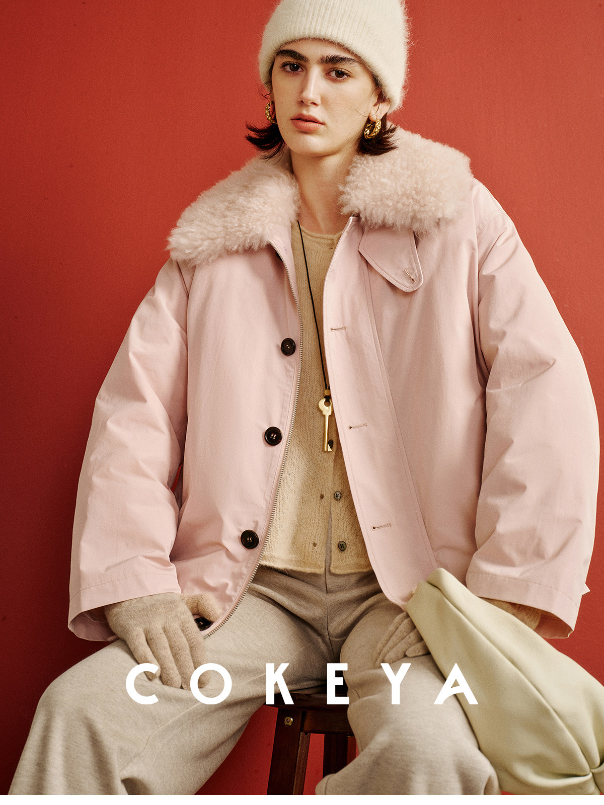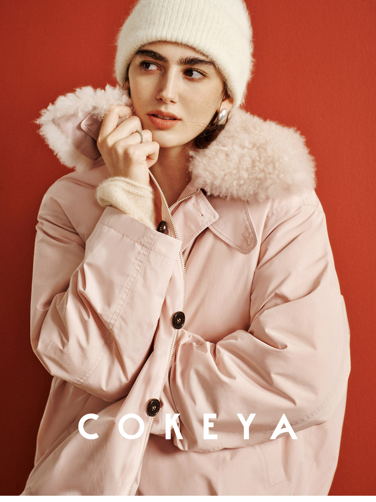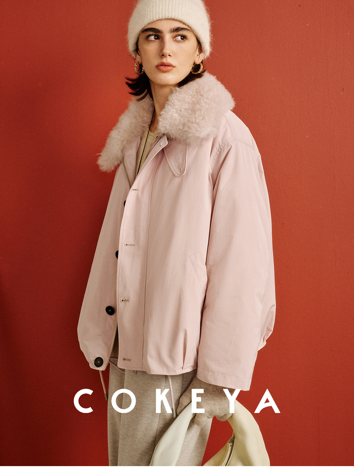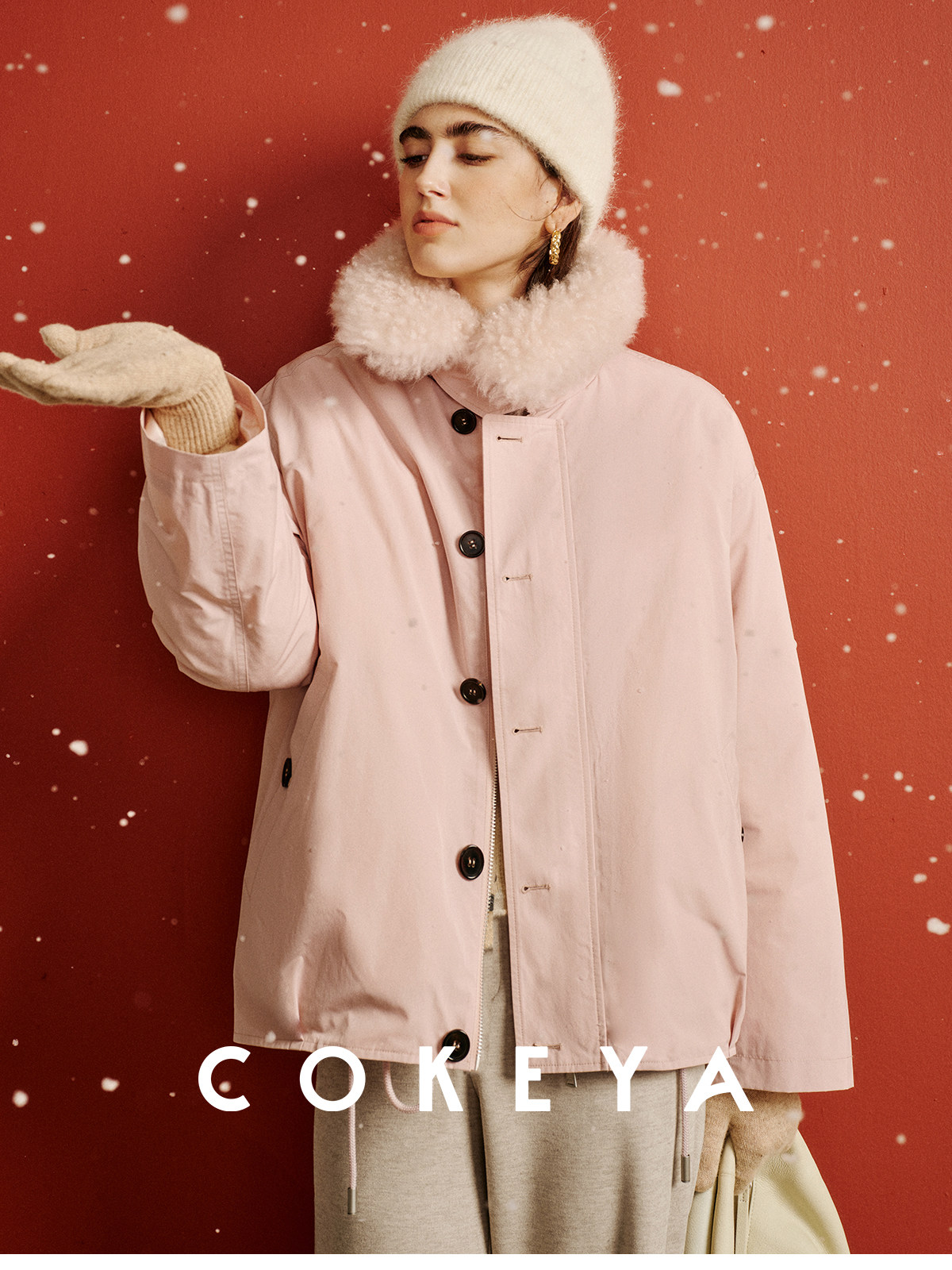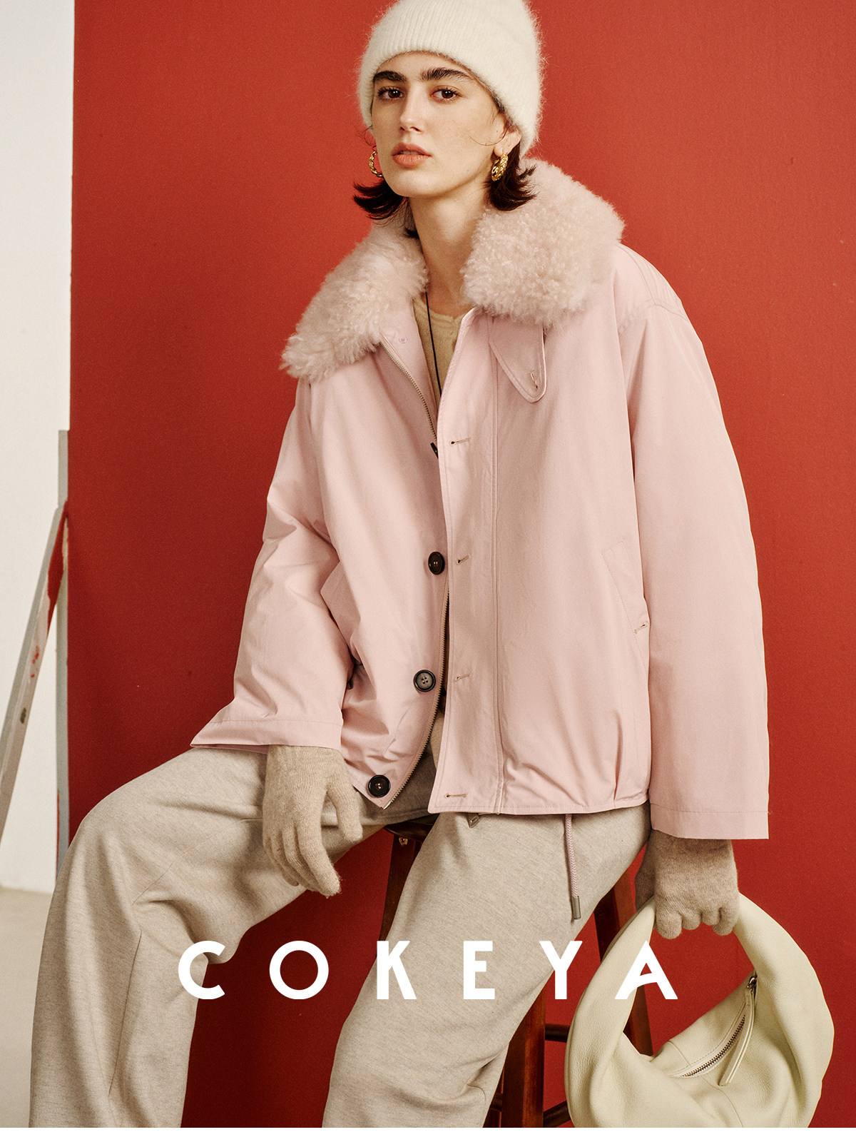Cokeya/Snow Country Elf~ Fur Integrated Fur Collar White Goose down Short Pink Parka down Jacket for Women Winter