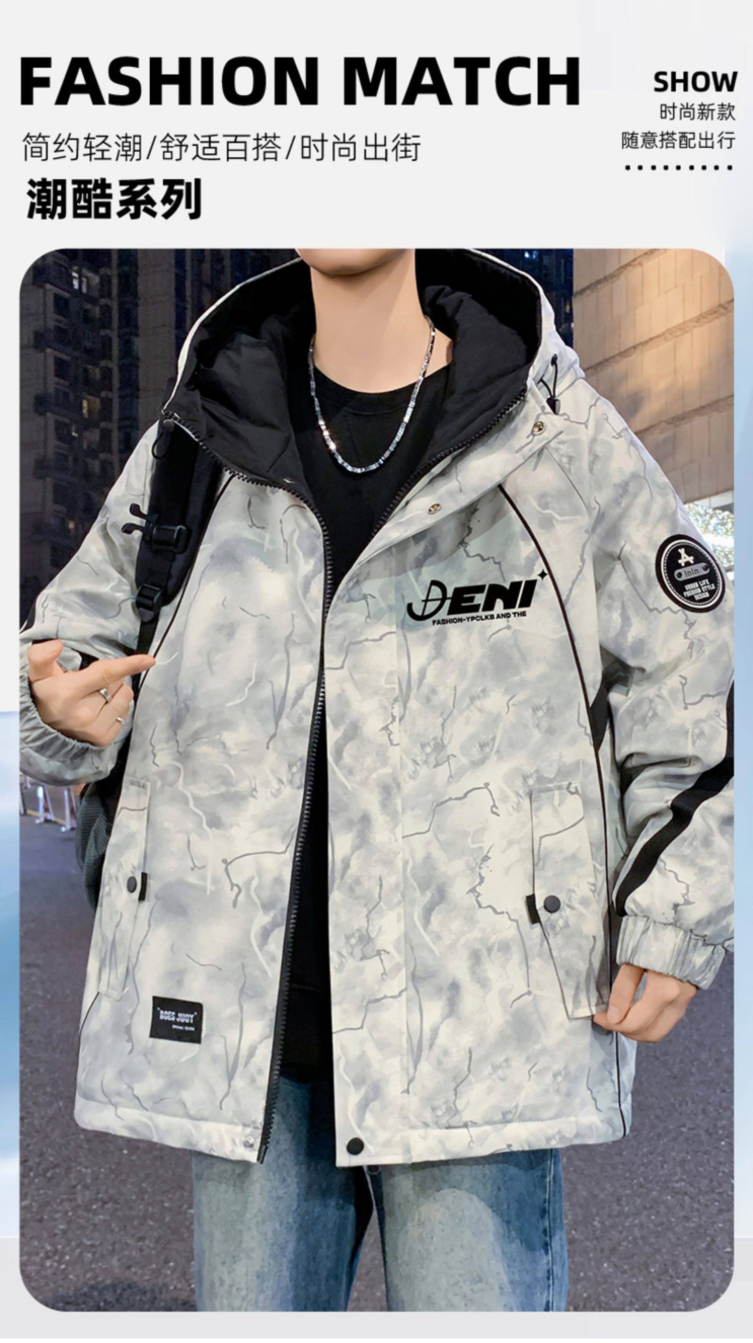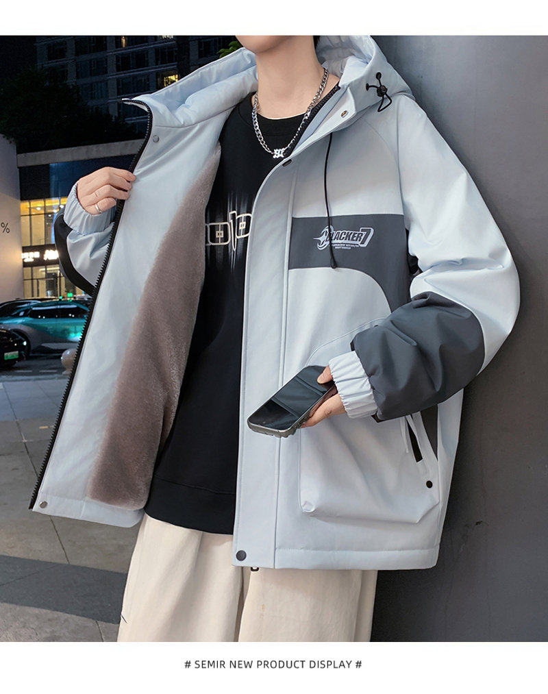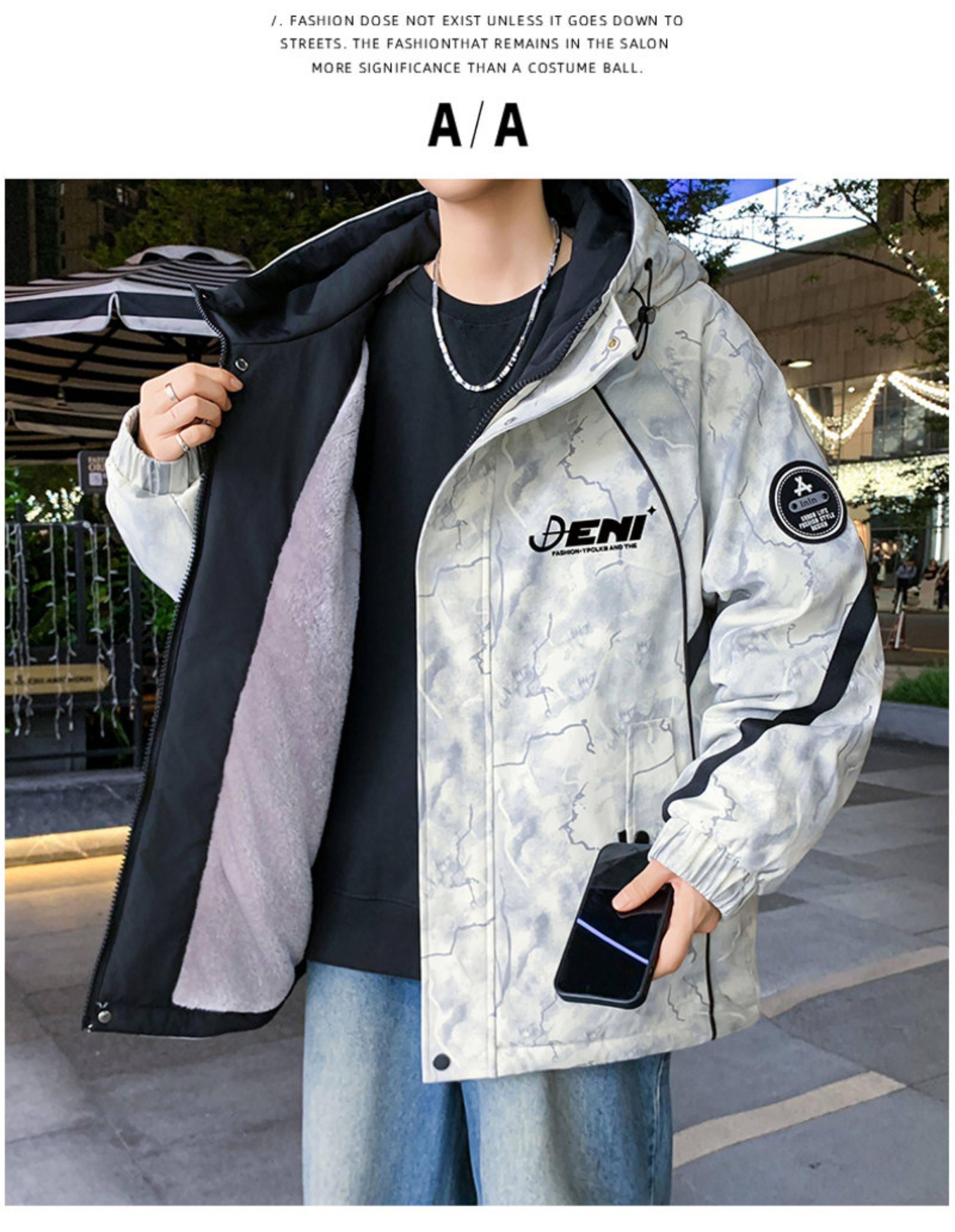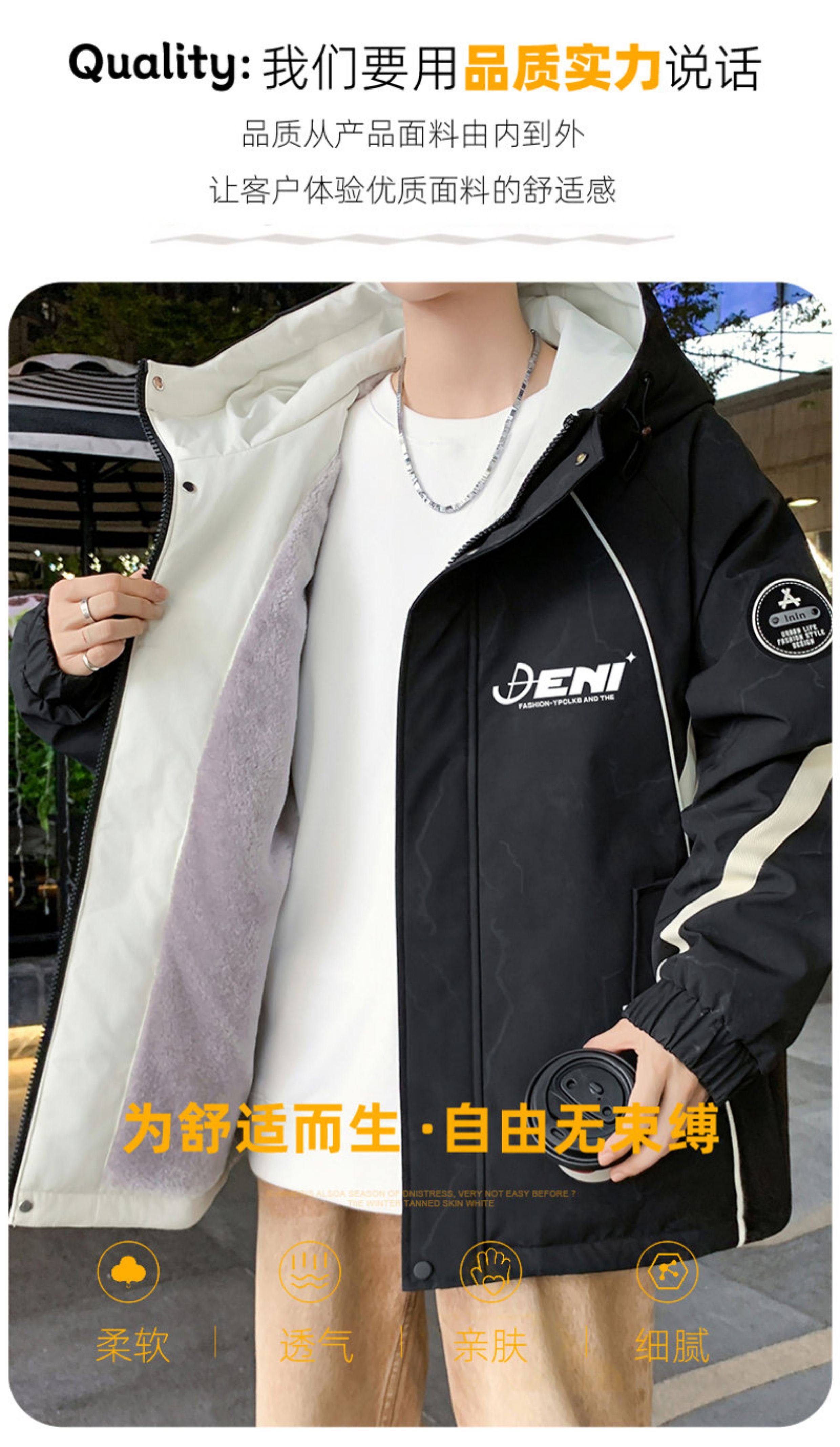 Autumn and Winter Hooded Fleece-Lined Thickened Workwear Jacket for Men, Teenagers, and Students, Windproof and Warm, Outdoor Jacket