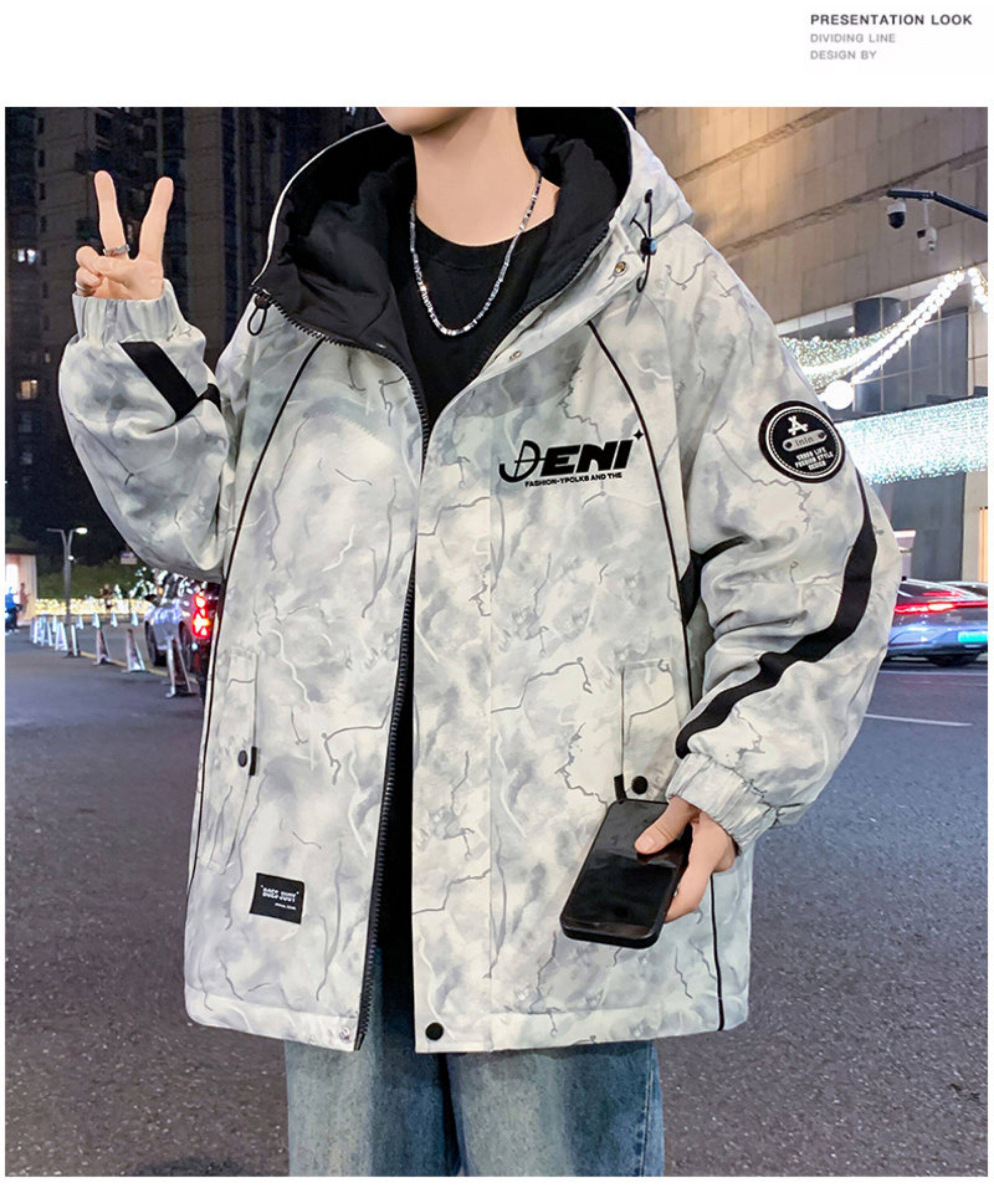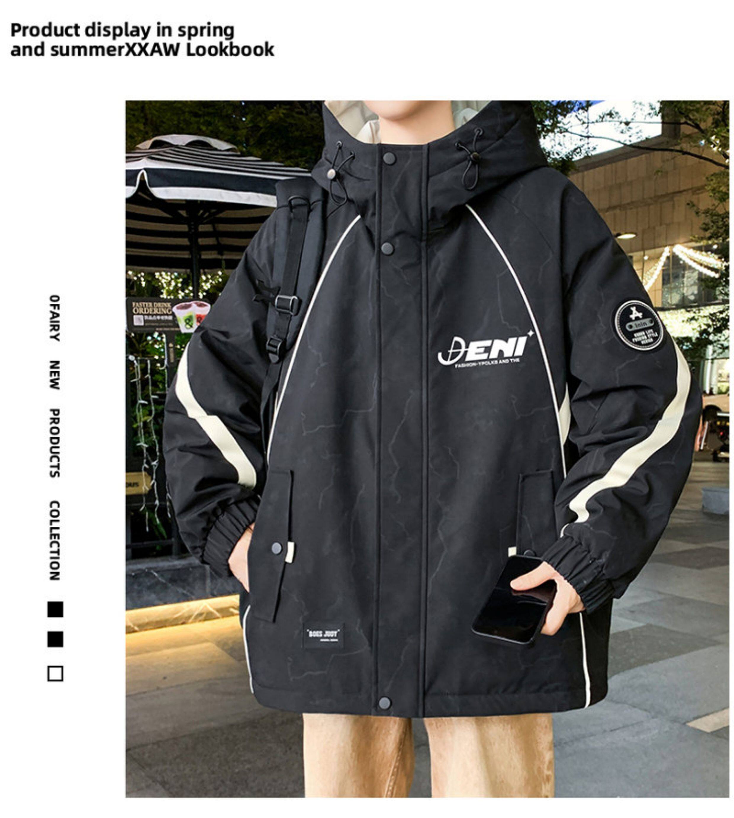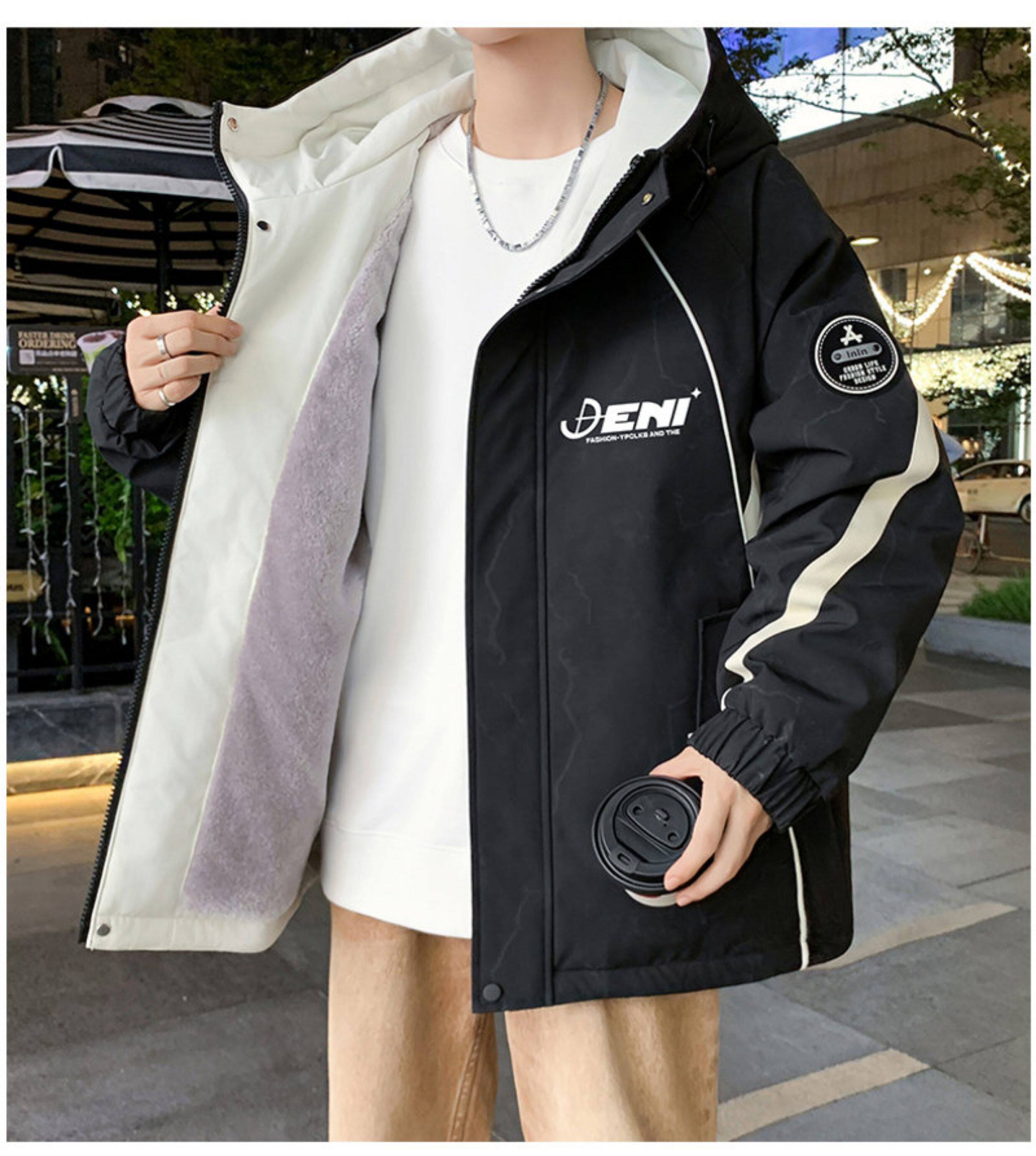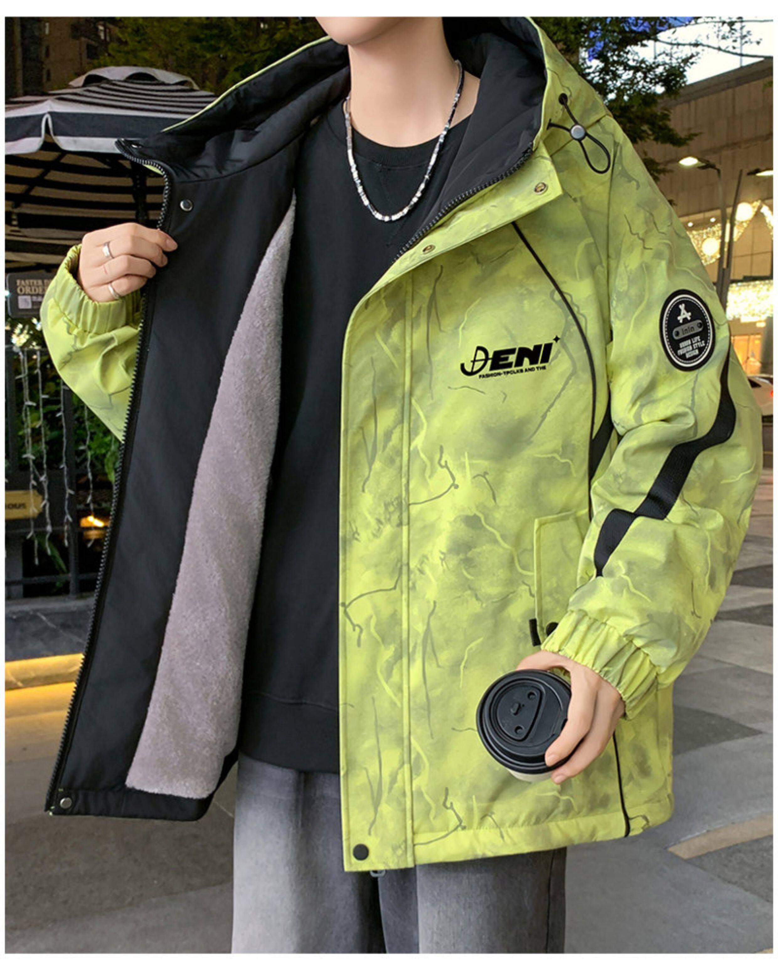 Autumn and Winter Hooded Fleece-Lined Thickened Workwear Jacket for Men, Teenagers, and Students, Windproof and Warm, Outdoor Jacket