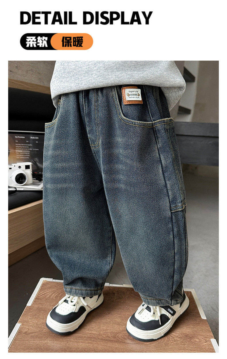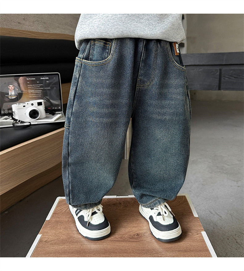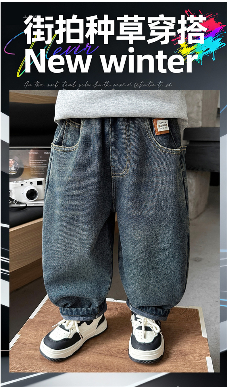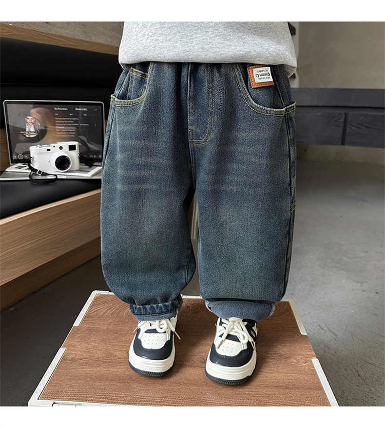 Boys' Autumn and Winter Fleece-Lined Jeans 2025 New Style Integrated Fleece Children's Pants Stylish Boys' Thickened Casual Long Pants