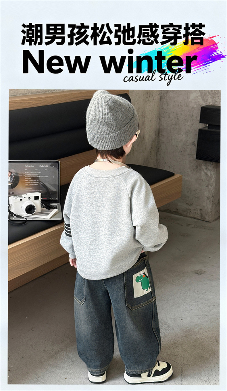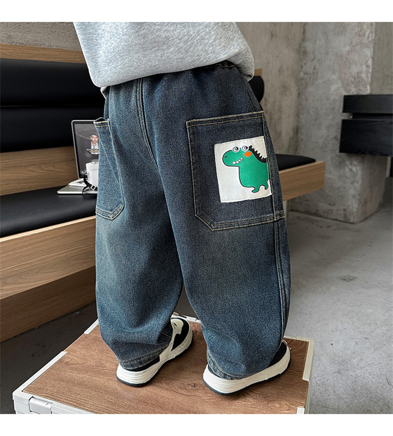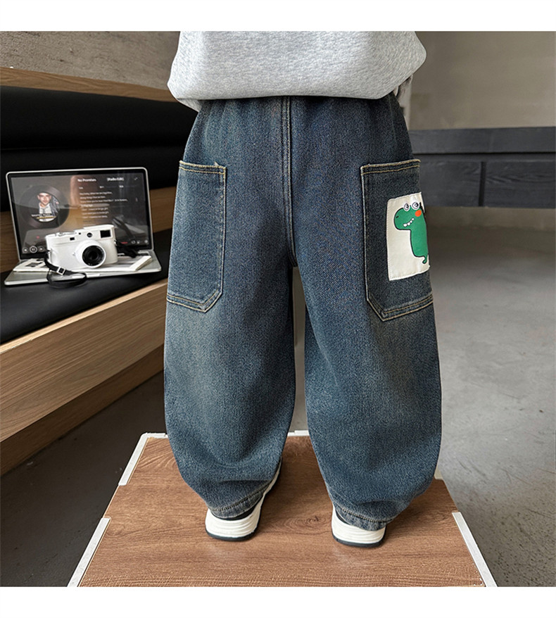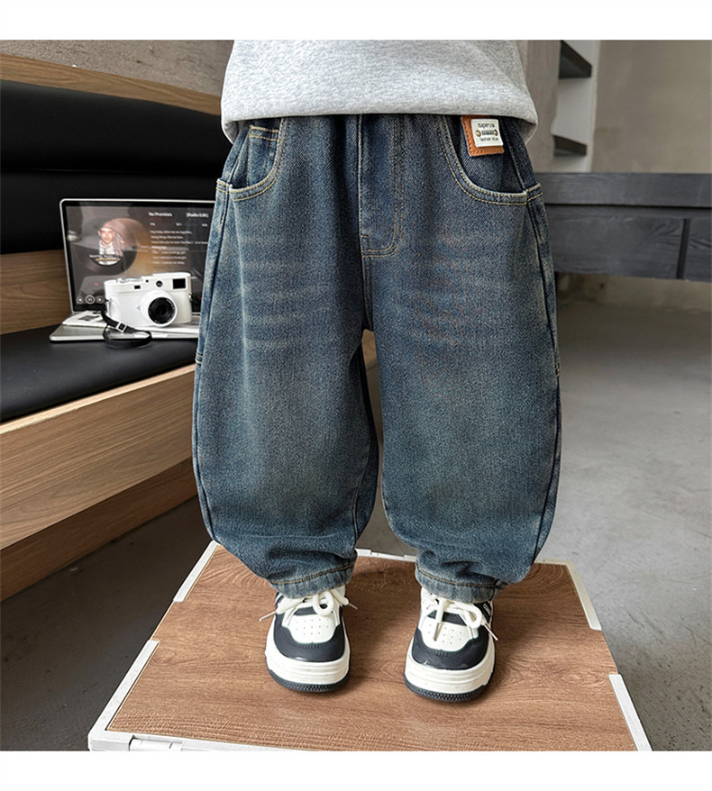 Boys' Autumn and Winter Fleece-Lined Jeans 2025 New Style Integrated Fleece Children's Pants Stylish Boys' Thickened Casual Long Pants