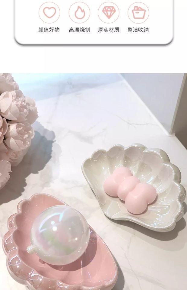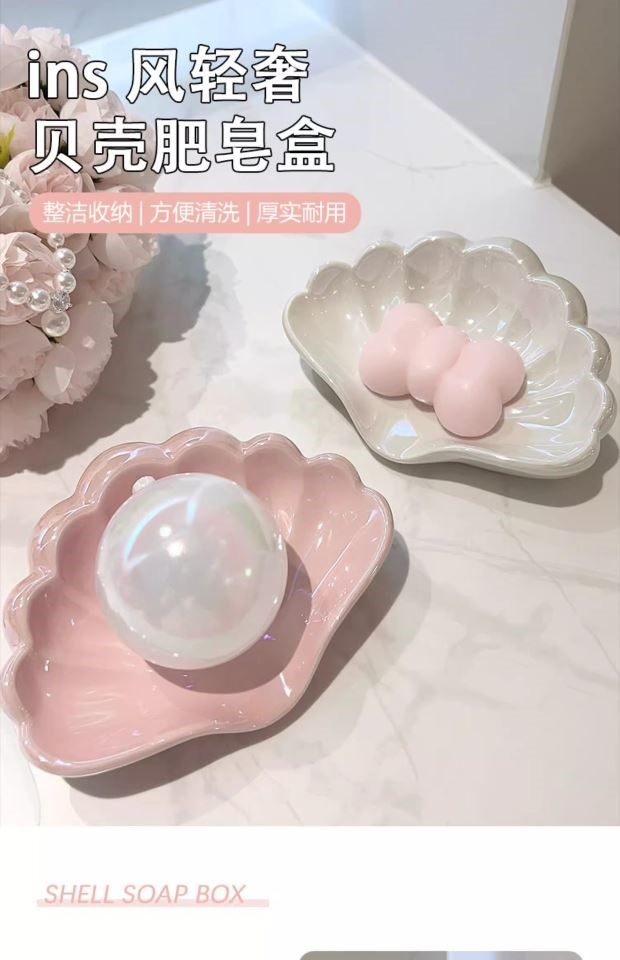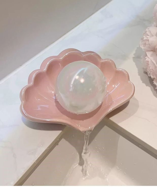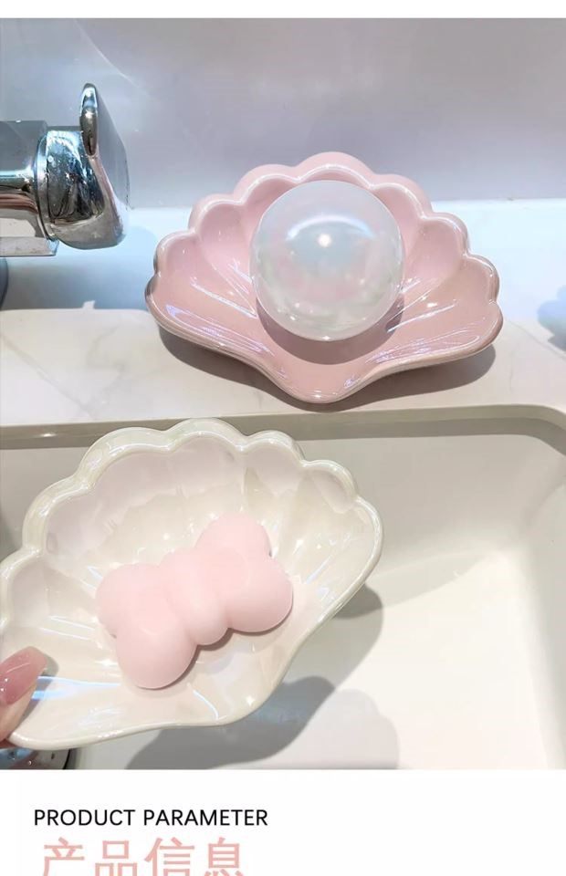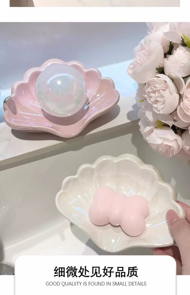 Creative Shell-Shaped Soap Dish with Drainage, Ceramic Soap Holder for Bathroom, Home Use, No Water Accumulation