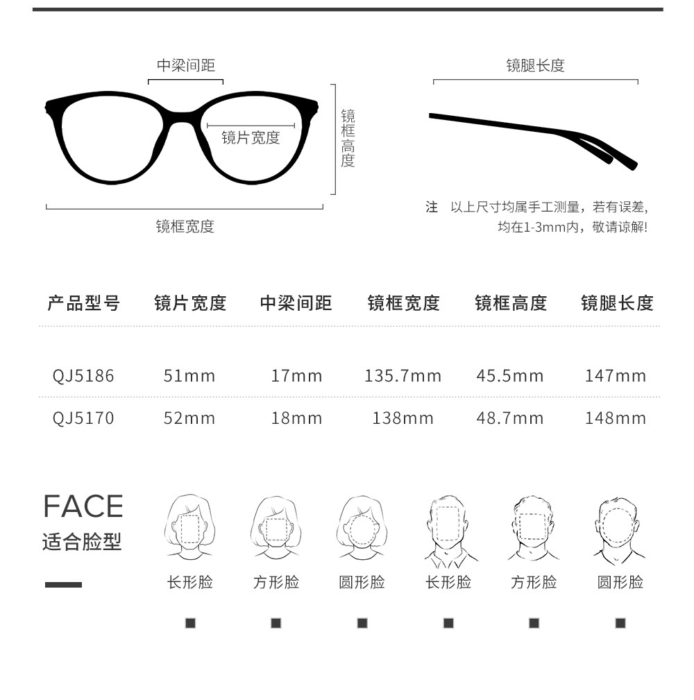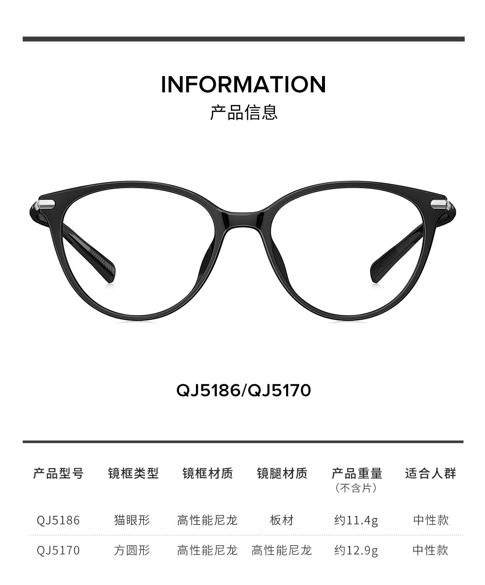 QINA Qina Zhao Lusi's same style plain cat eye frame & square and round frame can be matched with prescription