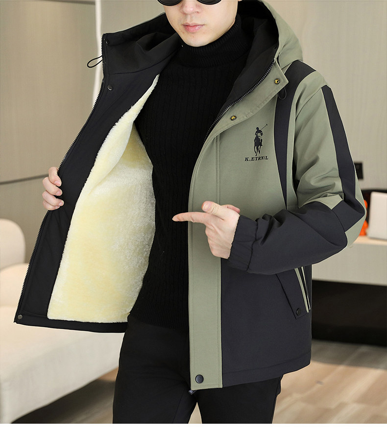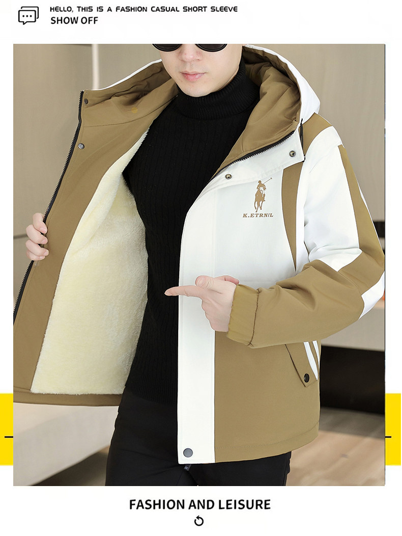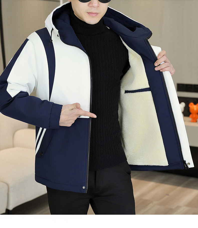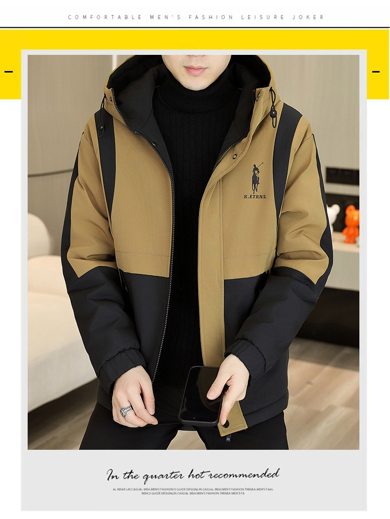 American-Style Hooded Jacket for Men, Autumn and Winter, High-End, Fleece-Lined, Thickened Cotton Coat, Functional Style, Warm, Color-Blocked Workwear Jacket