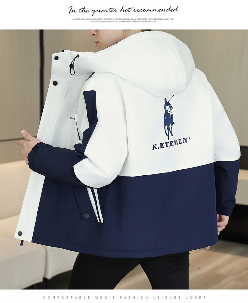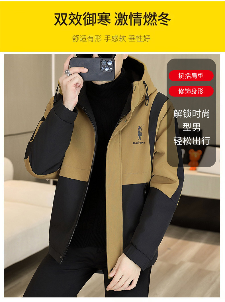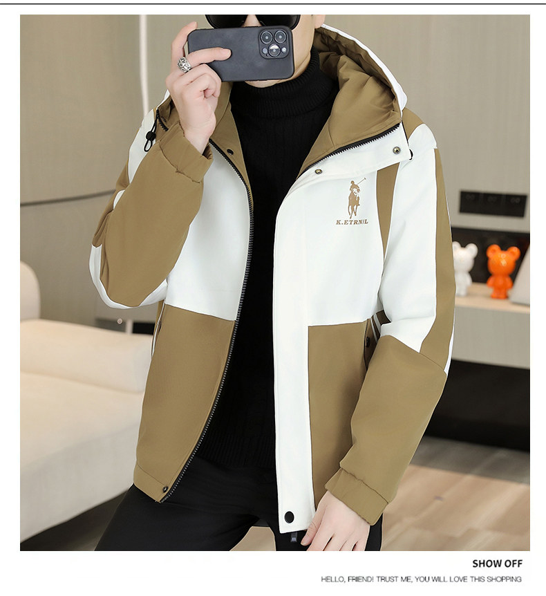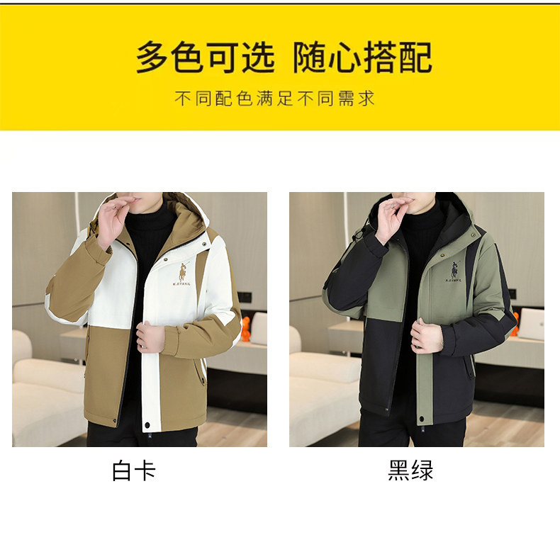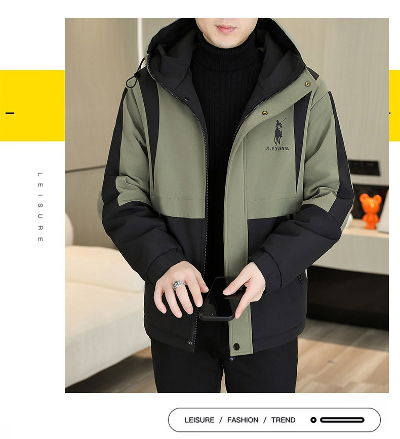 American-Style Hooded Jacket for Men, Autumn and Winter, High-End, Fleece-Lined, Thickened Cotton Coat, Functional Style, Warm, Color-Blocked Workwear Jacket