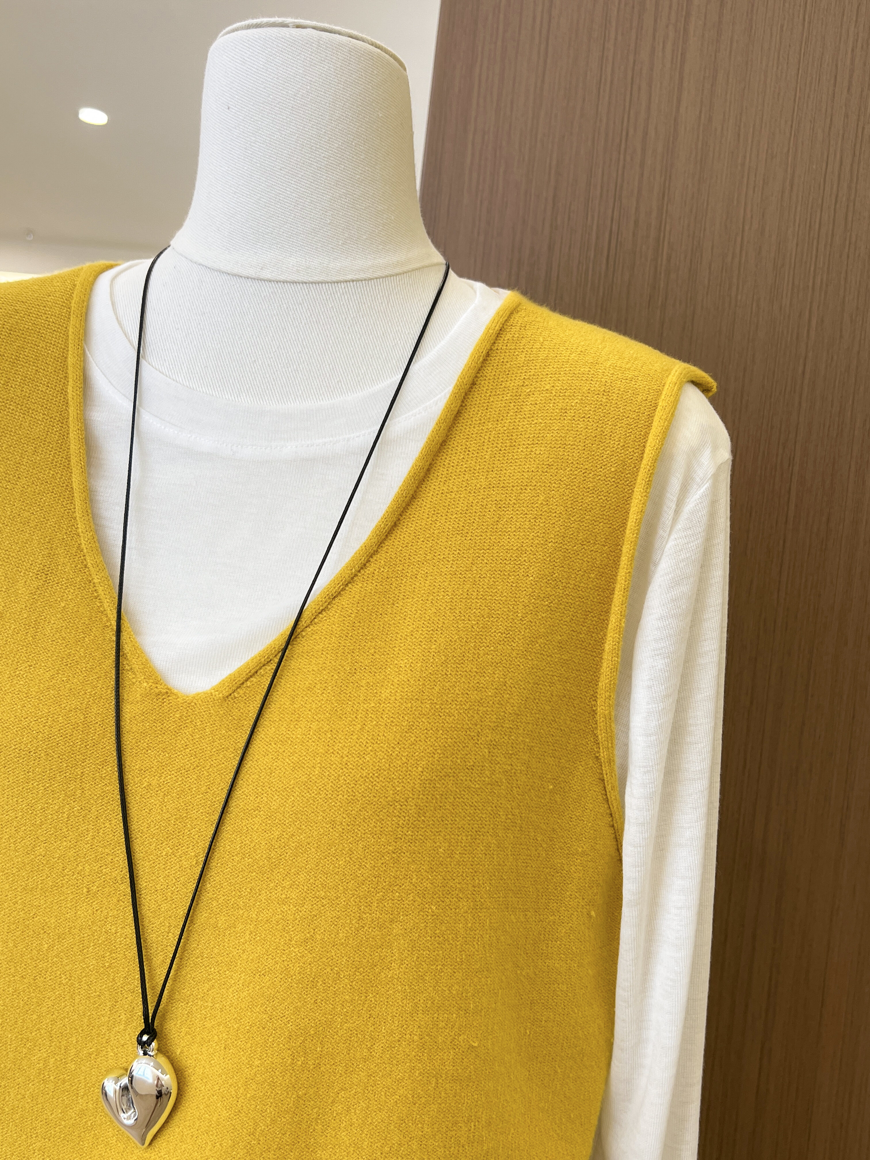 Guangzhou Thirteen Lines Korean Fashion Casual Yellow V-neck Knitted Sleeveless Waistcoat Women's Stacking Vest Top