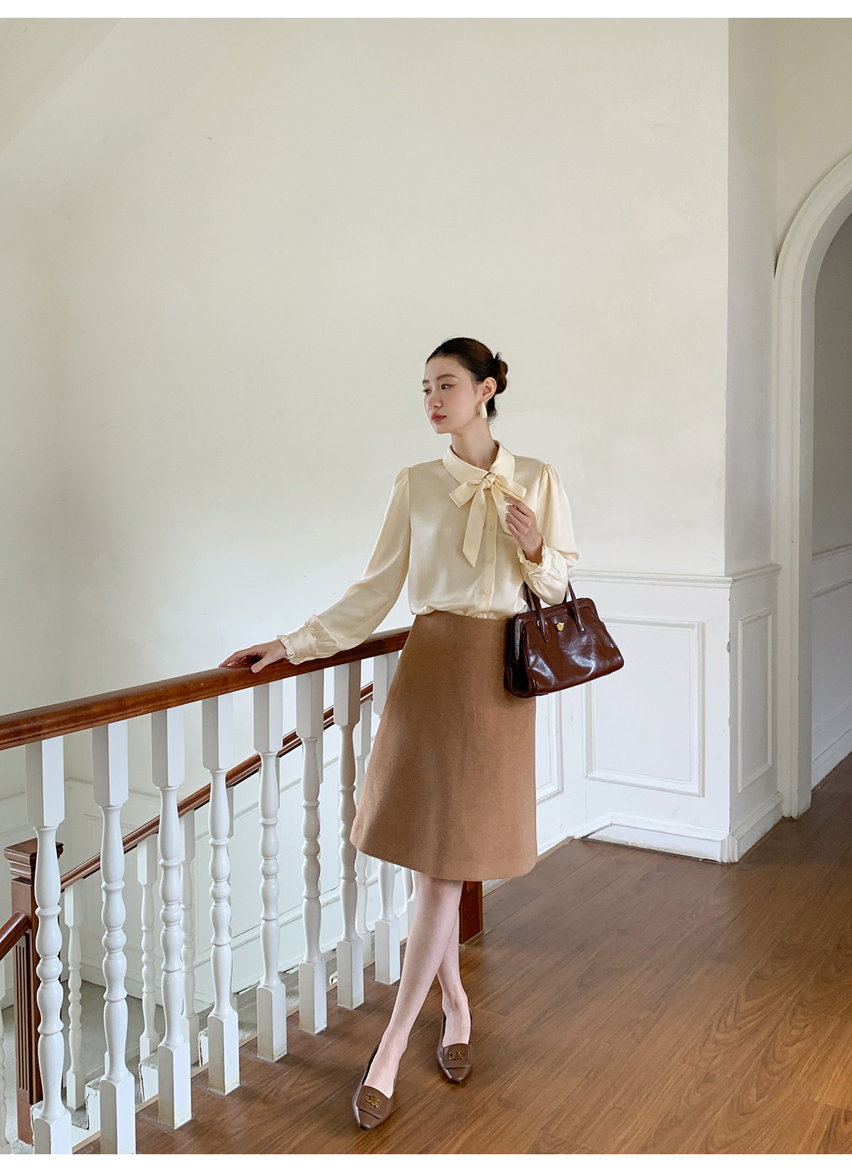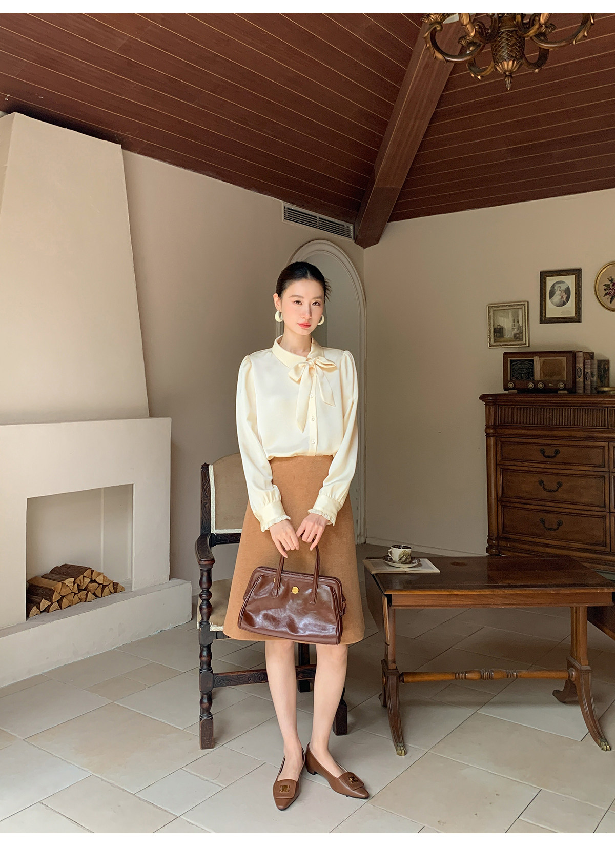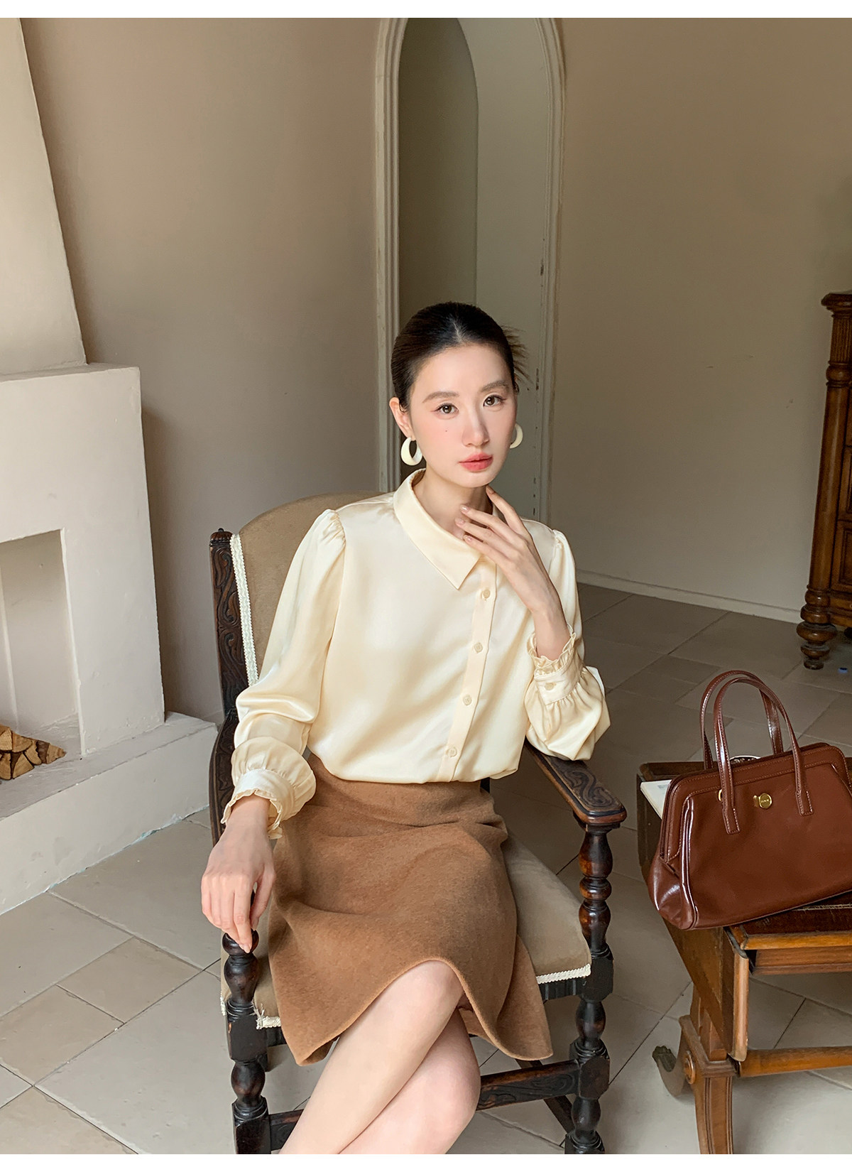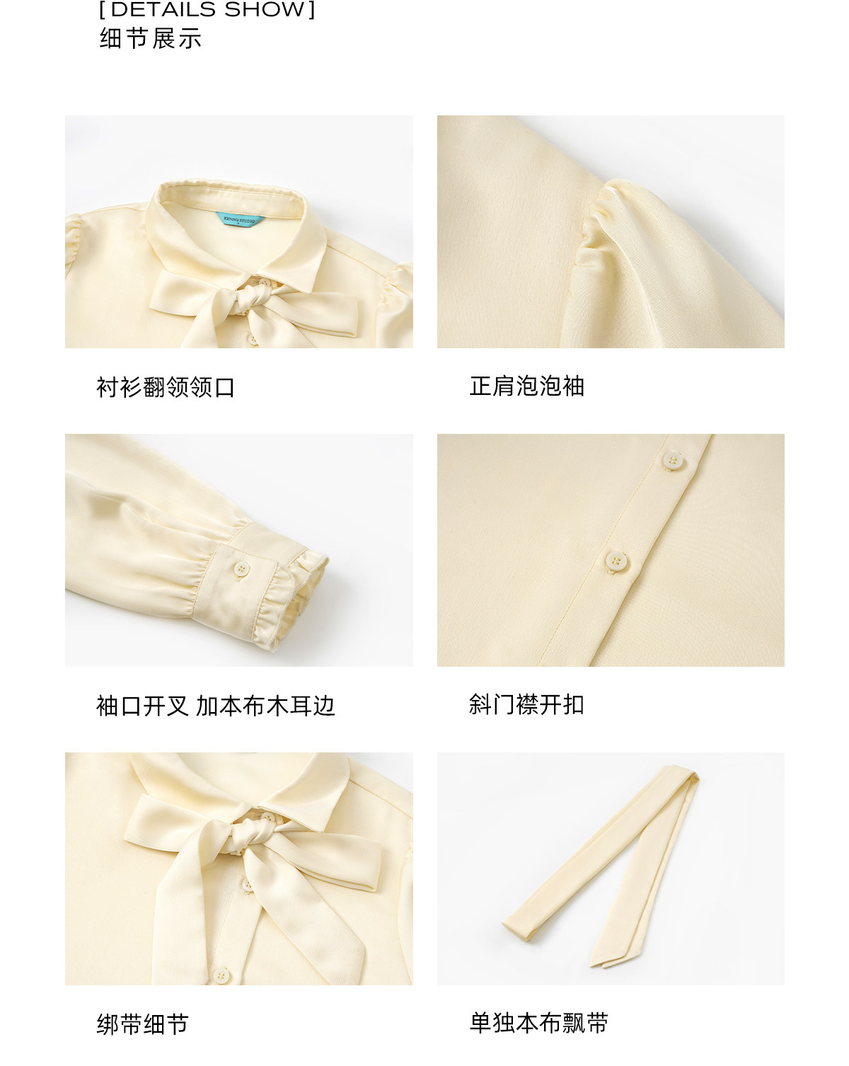 Xxning French-Style Fabric Ribbon-Decorated Satin Shirt for Women, Autumn and Winter, High-End Design, Niche and Unique Top