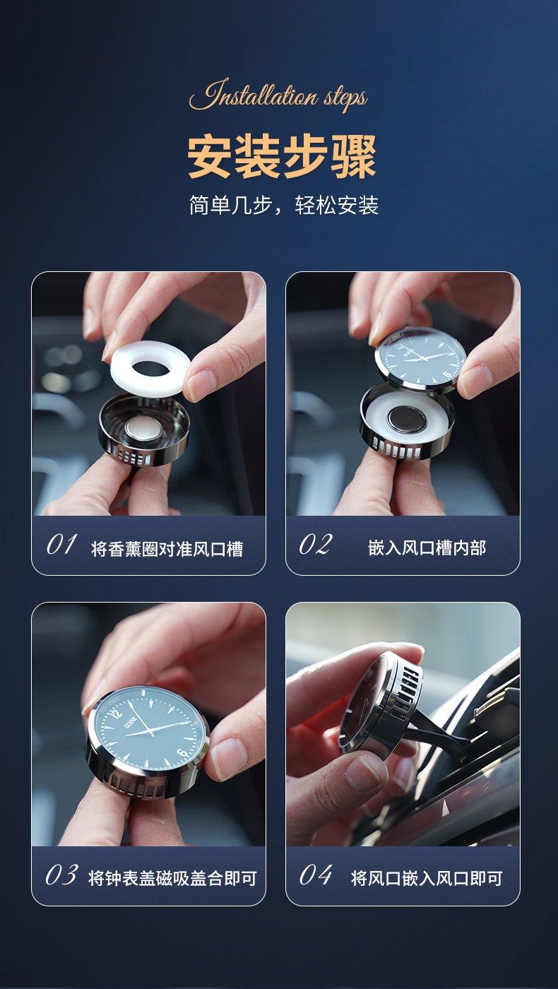 Car air outlet clock aromatherapy perfume fragrance dial quartz watch car interior clock high-end small round watch