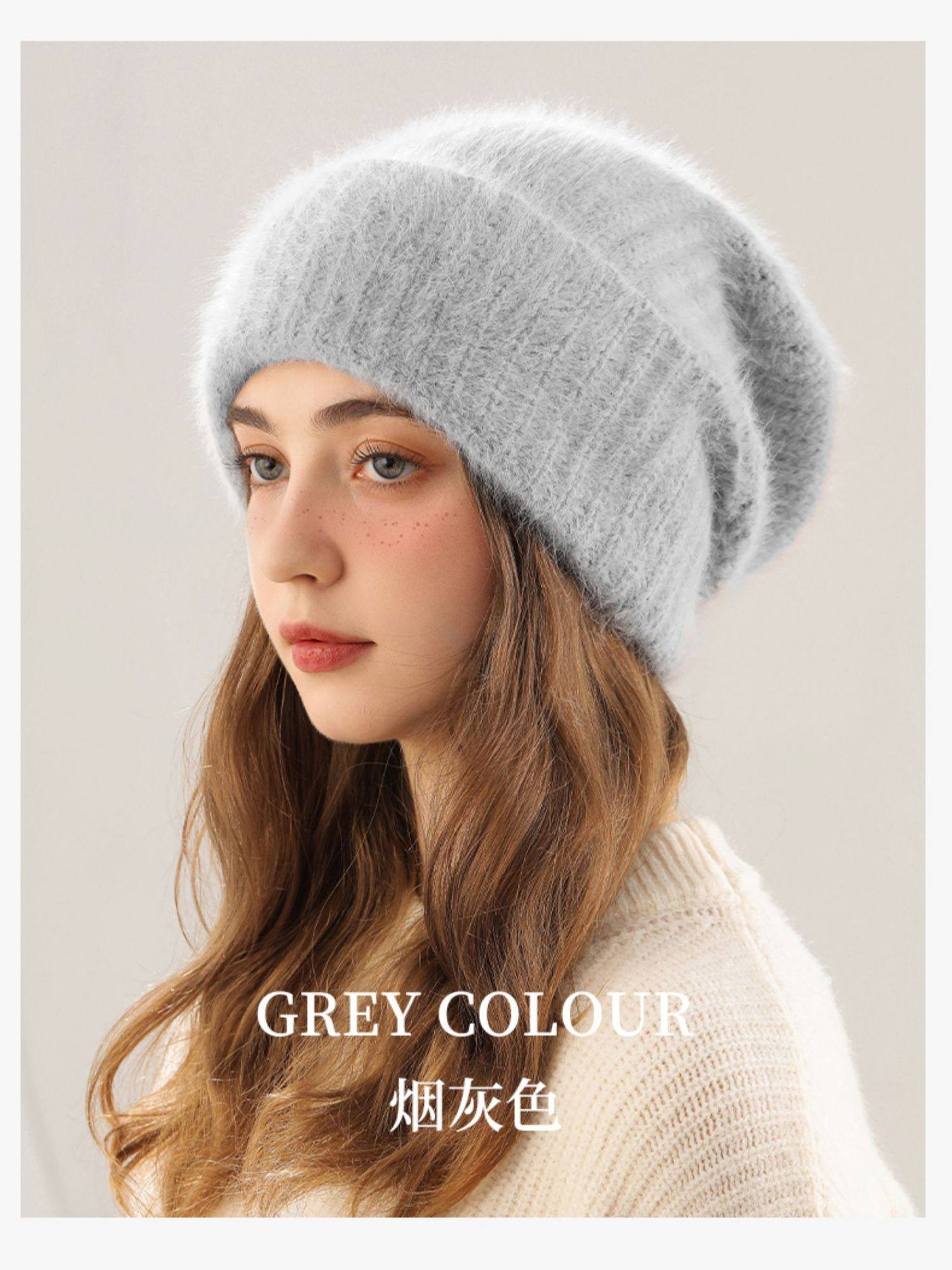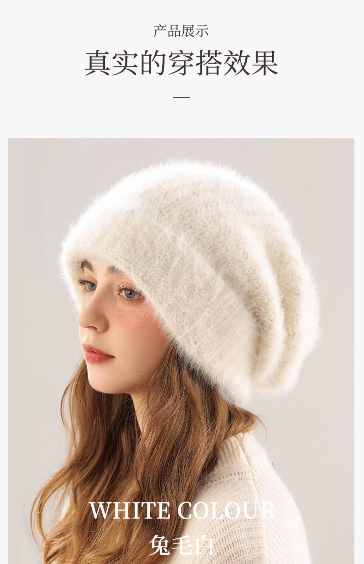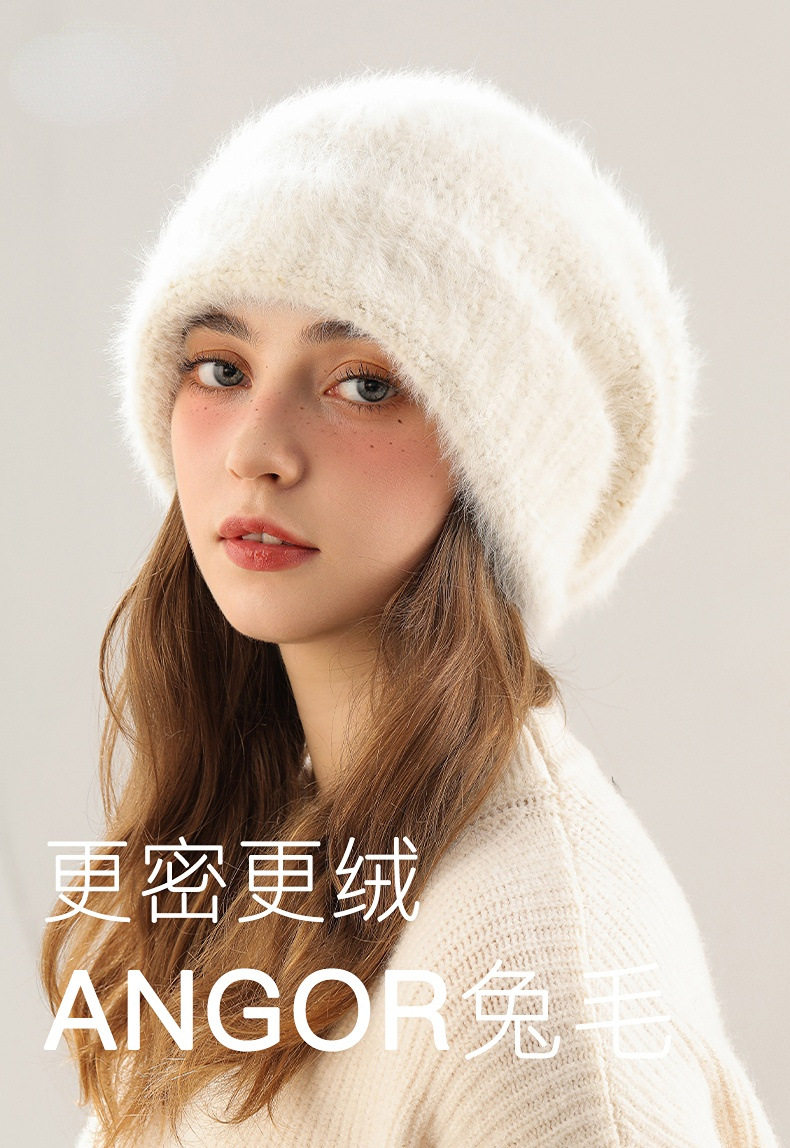 Yanren Women's Knitted Hat, Warm and Thick, Large Head Circumference, Makes Face Look Smaller, Plush Rabbit Fur Hat, Ear Protection, Knitted Hat, 2025 New Model