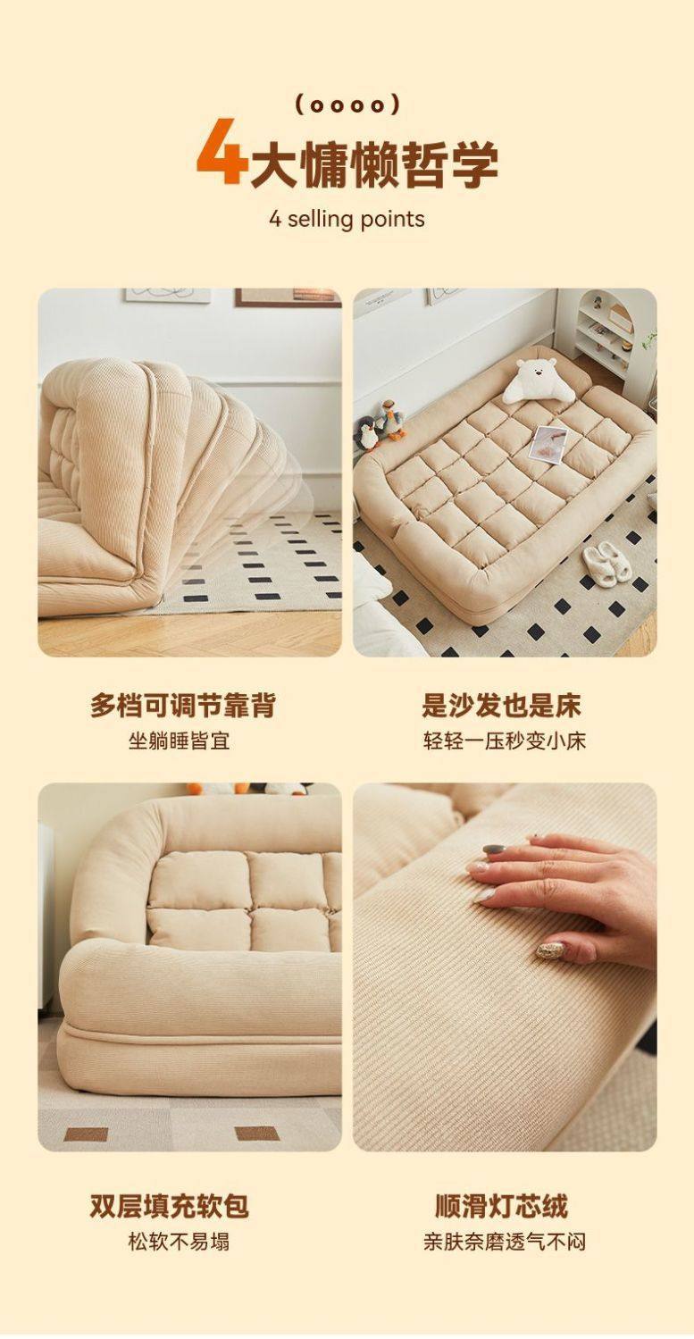 Compressible Lazy Sofa Double Tatami Folding Sofa for Bedroom and Dormitory Use