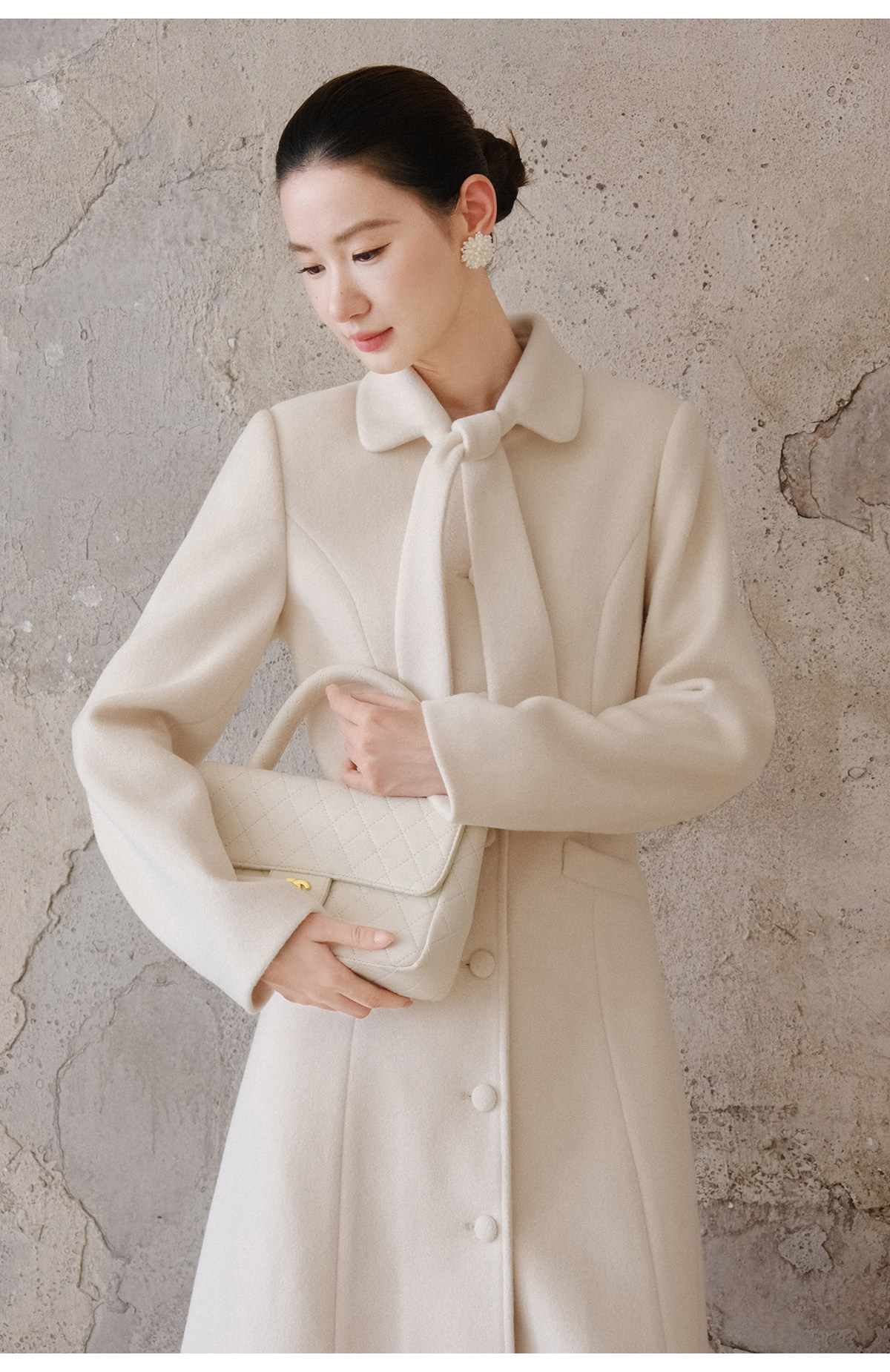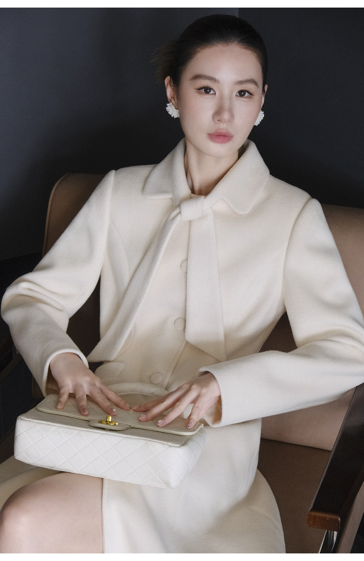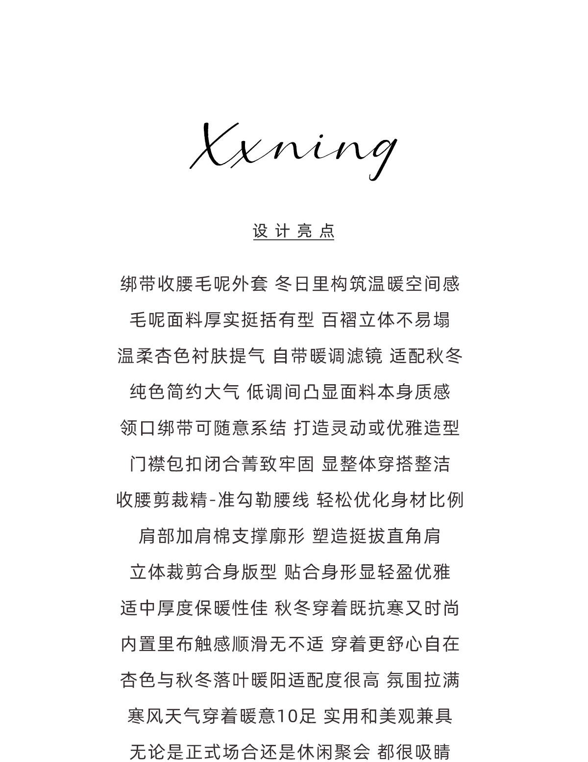 XXNING French lapel strapped waist woolen coat for women in autumn and winter, a rich and luxurious coat with a sense of temperament