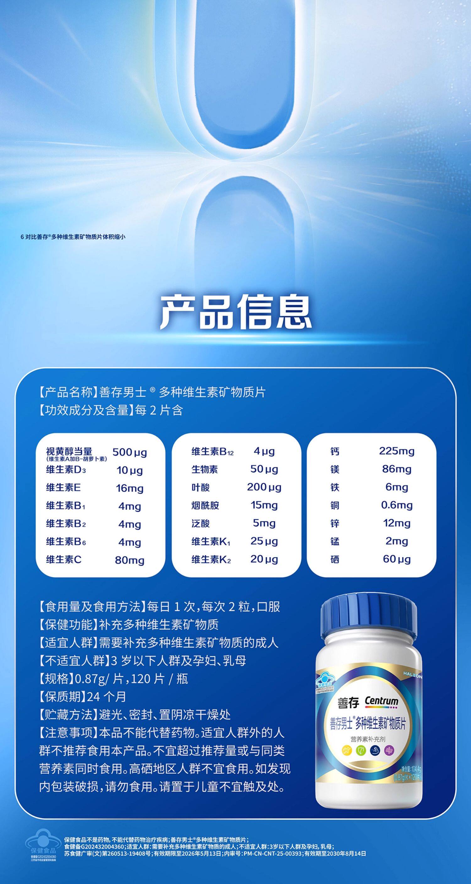 Sencun Blue Bottle Men's Multivitamin and Mineral Tablets Adult Vitamin C Supplement B1 B2 B6 Genuine Official Product