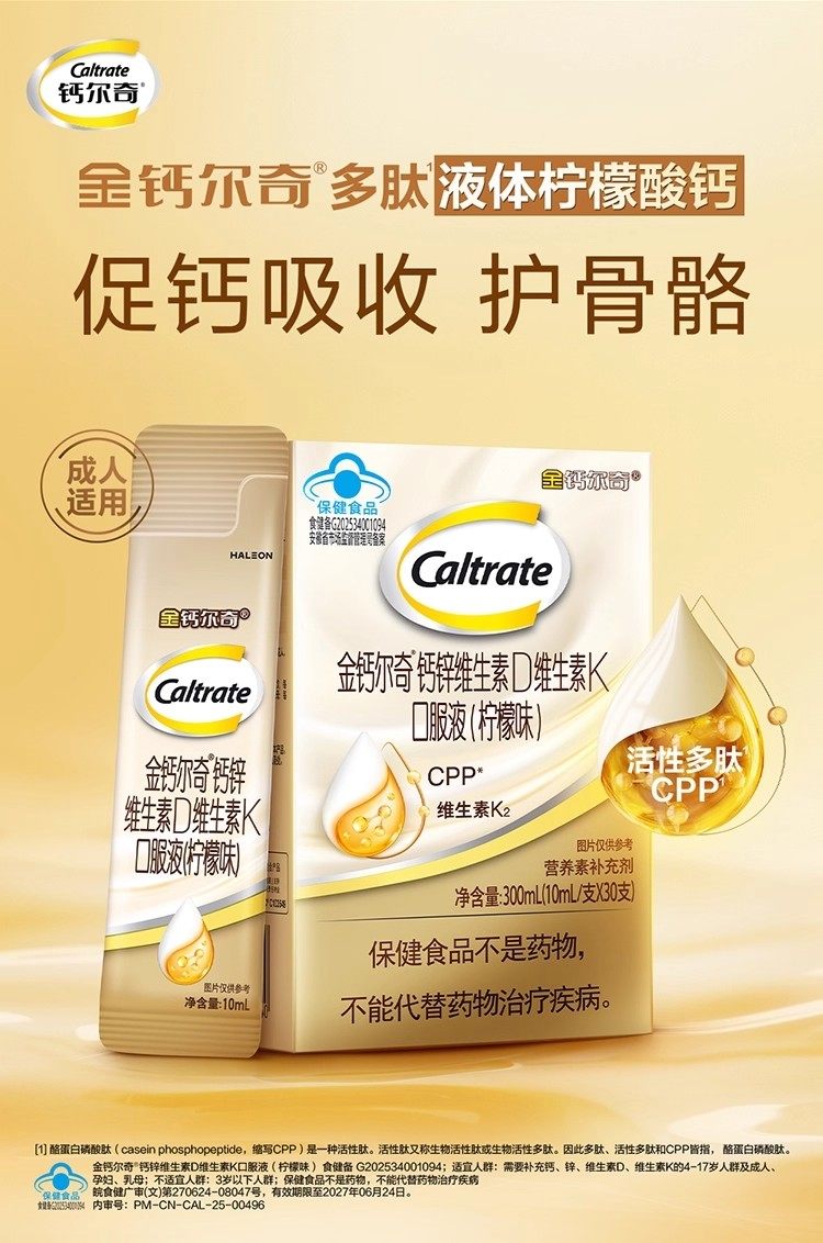 Golden Calcium Calcium Zinc Vitamin D Vitamin K Oral Liquid for Adults, Middle-Aged and Elderly Men and Women Liquid Calcium (Lemon Flavor)