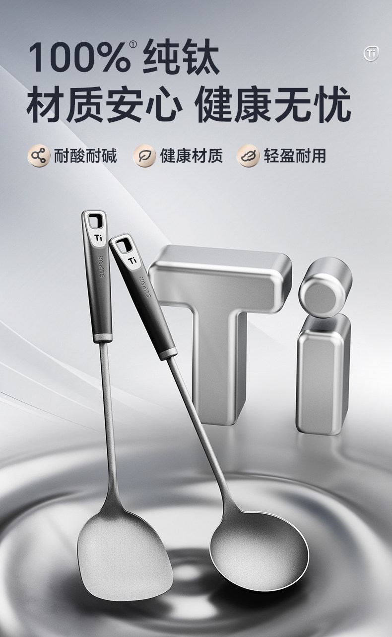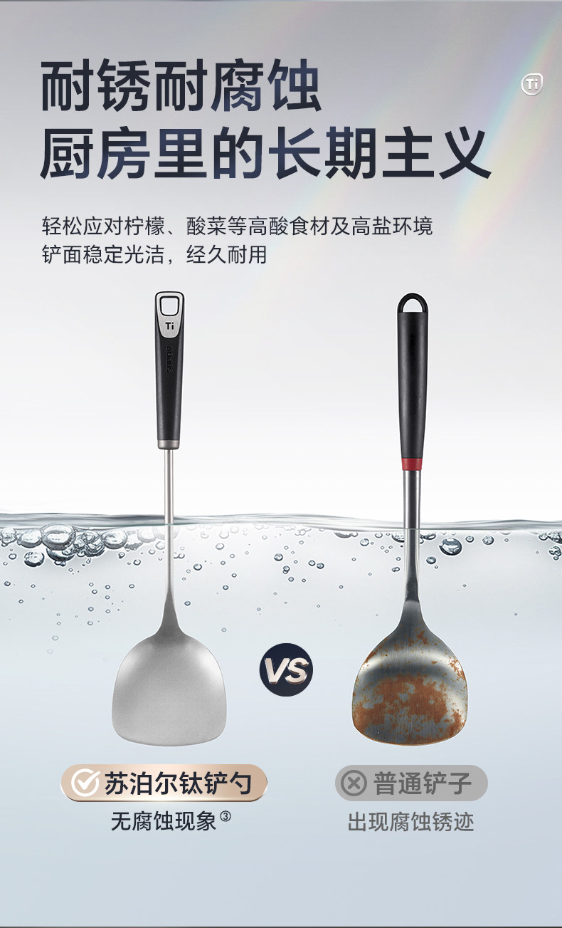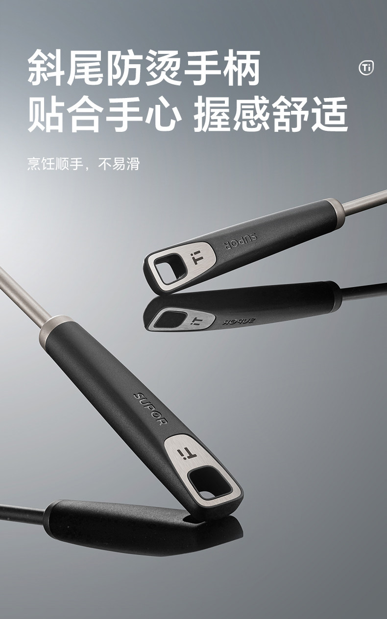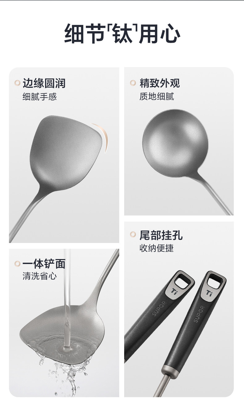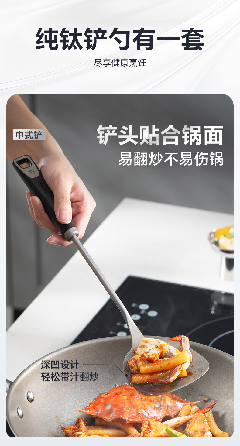 Supor Pure Titanium Spatula and Ladle for Home Kitchen Use, Non-Stick Cooking Spatula, Household Spatula, Kitchen Utensils, Long Handle Spatula
