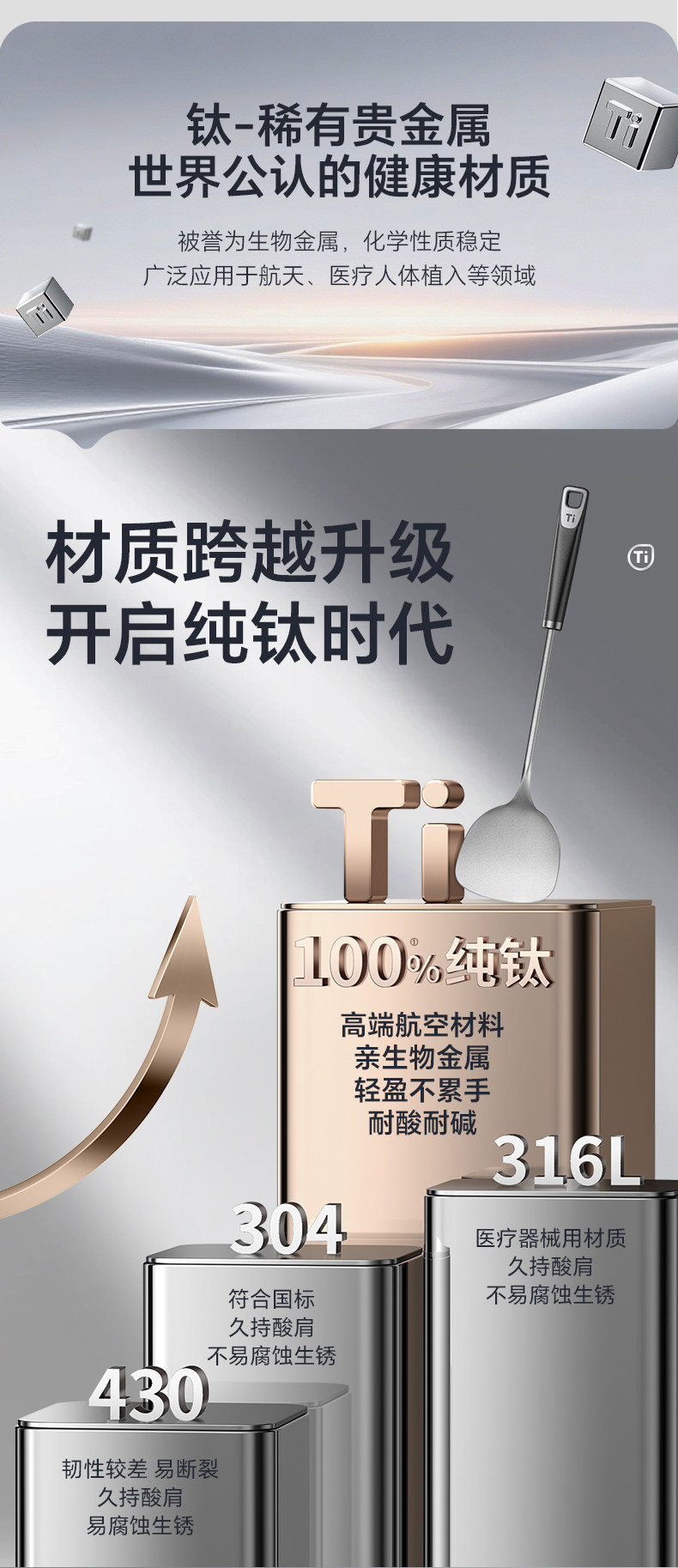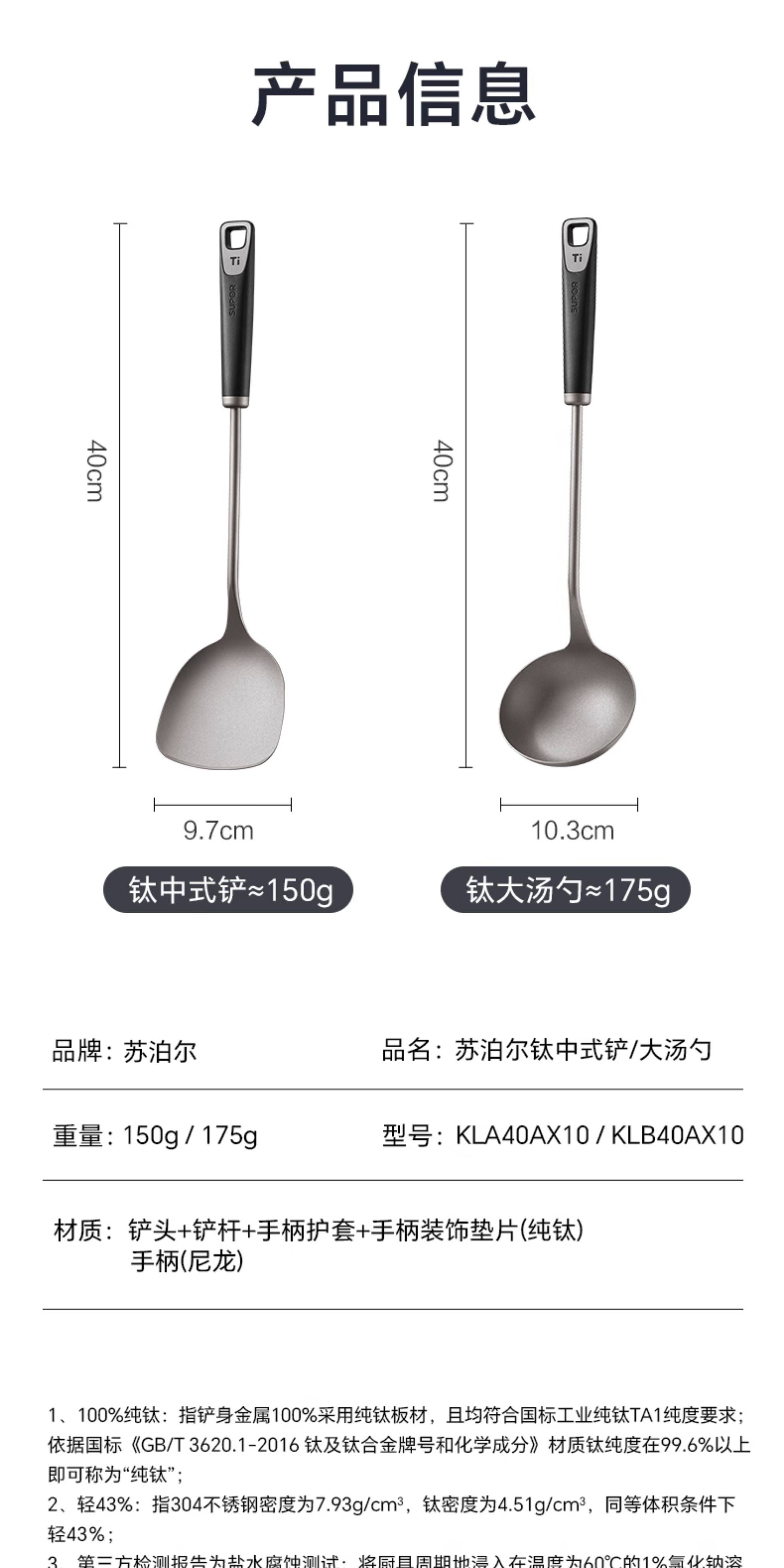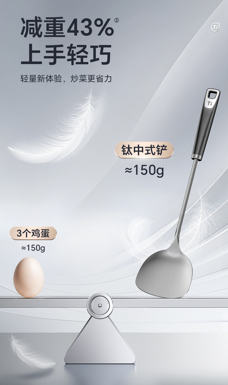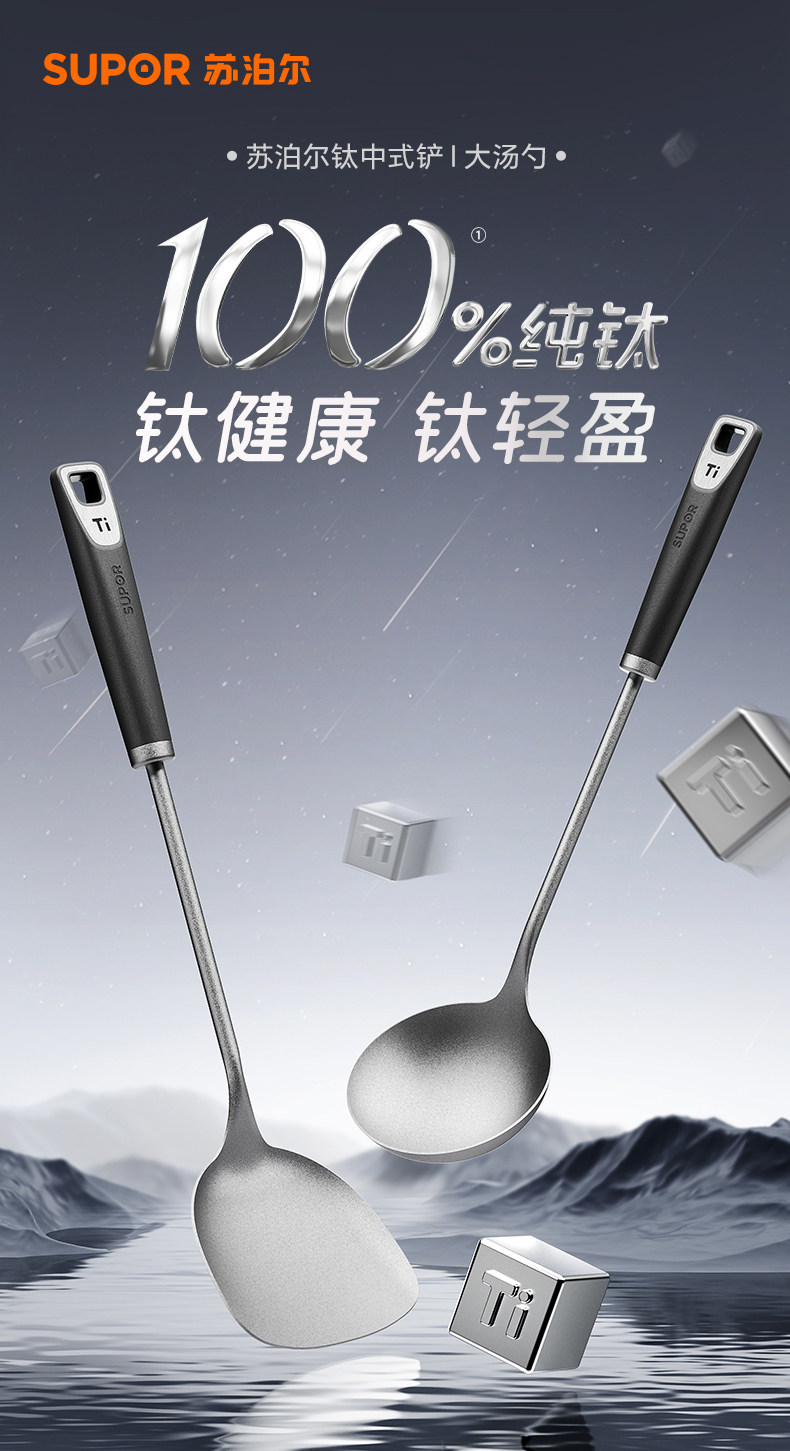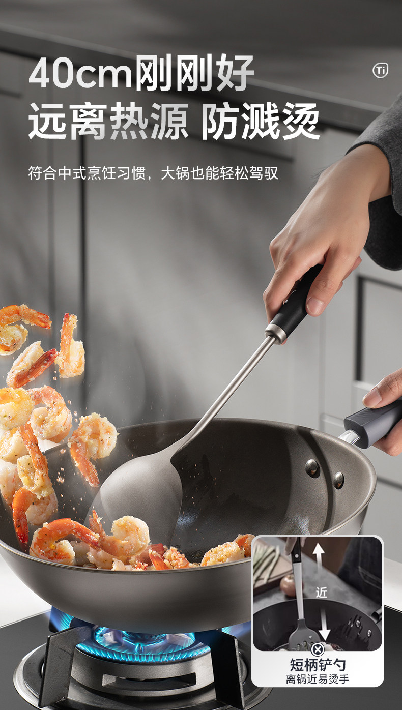 Supor Pure Titanium Spatula and Ladle for Home Kitchen Use, Non-Stick Cooking Spatula, Household Spatula, Kitchen Utensils, Long Handle Spatula