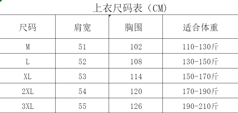 China (cm) 165 / 88-90 170 / 96-98 175 / 108-110 180 / 118-122 185 / 126-130