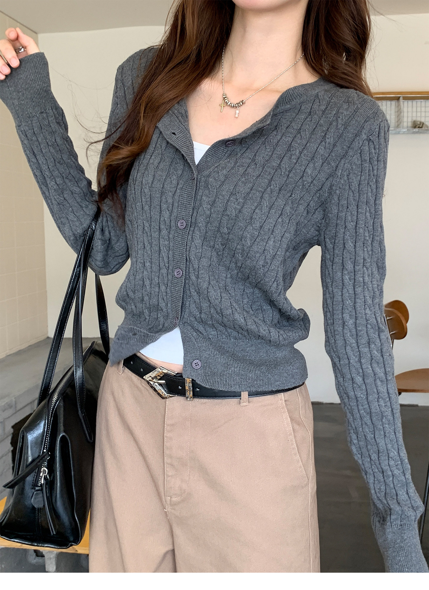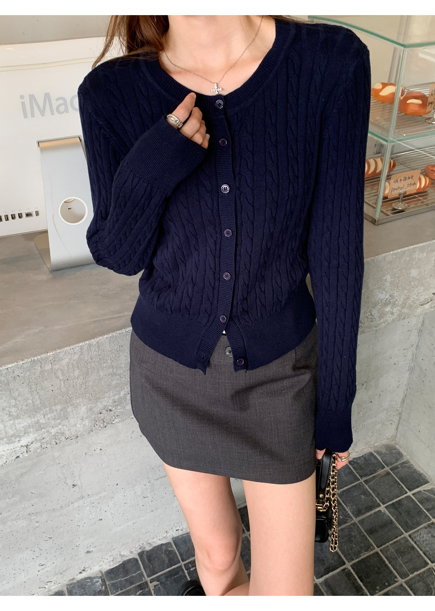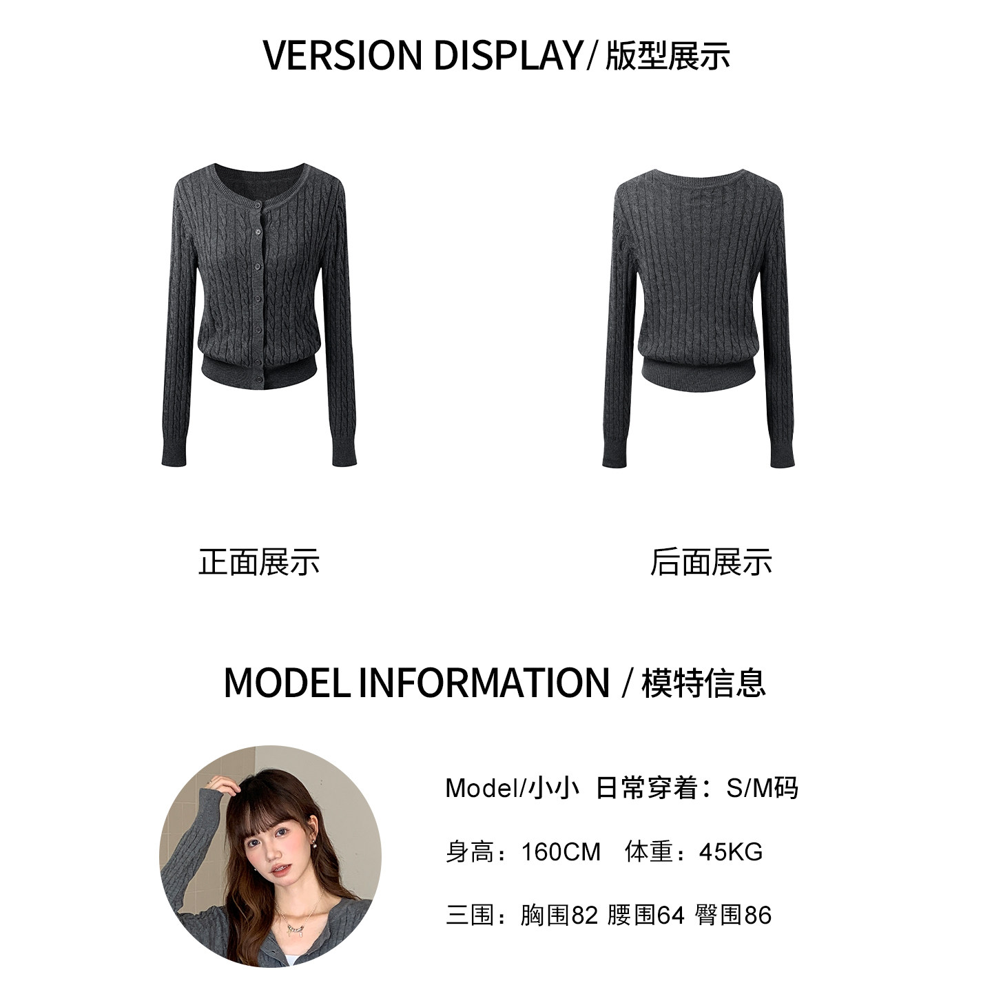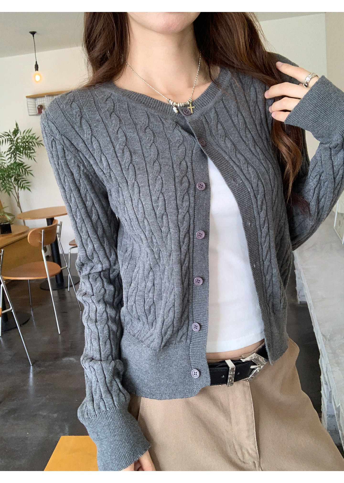 Single-Breasted Cable Knit Long-Sleeve Sweater Cardigan for Women, New Autumn Korean Style, Simple and Versatile Round-Neck Knit Cardigan