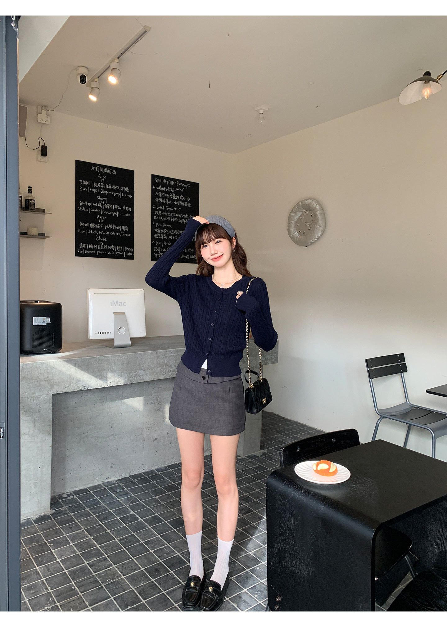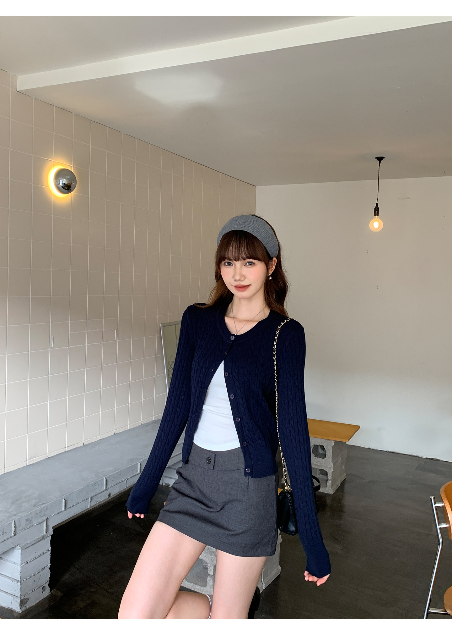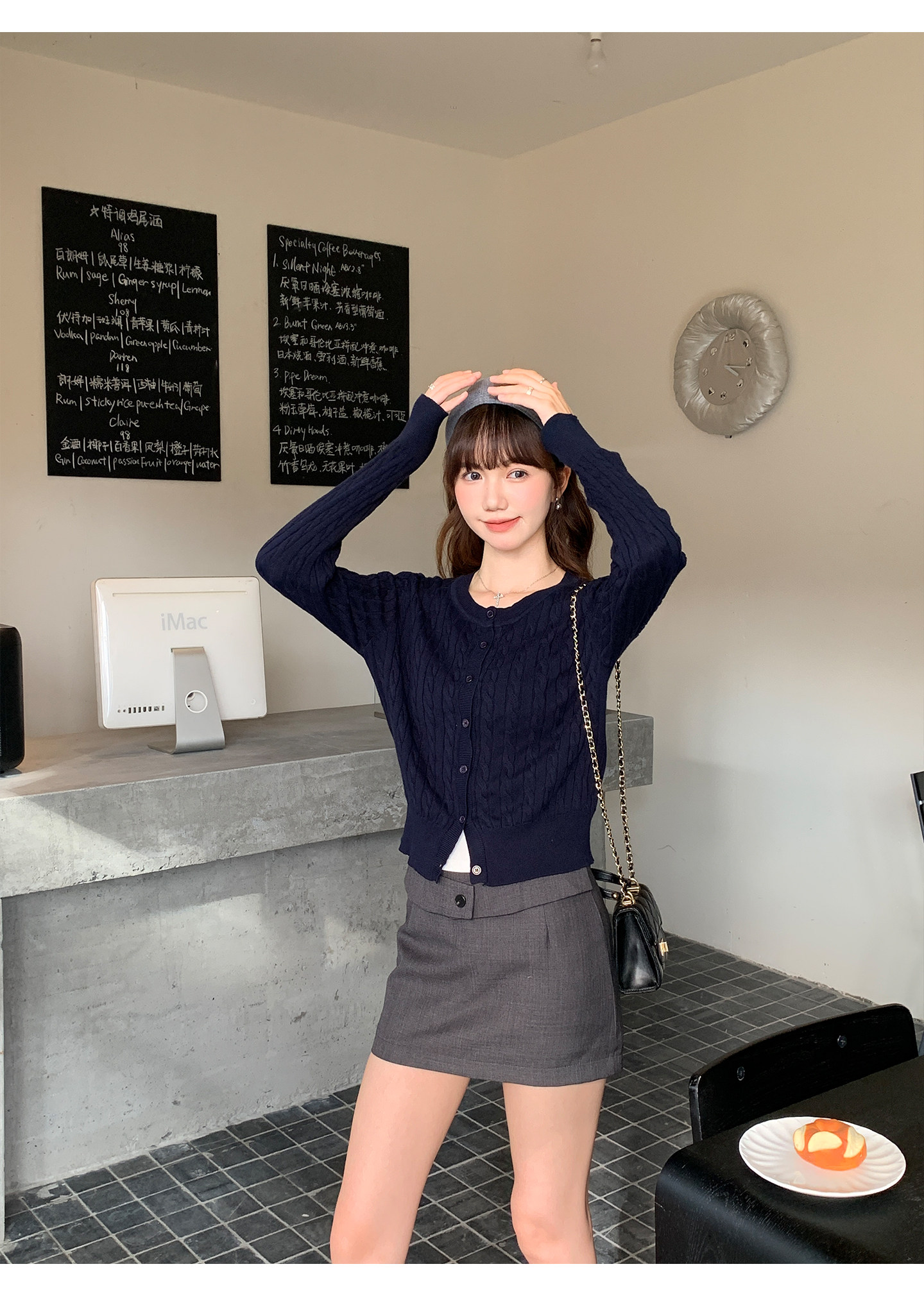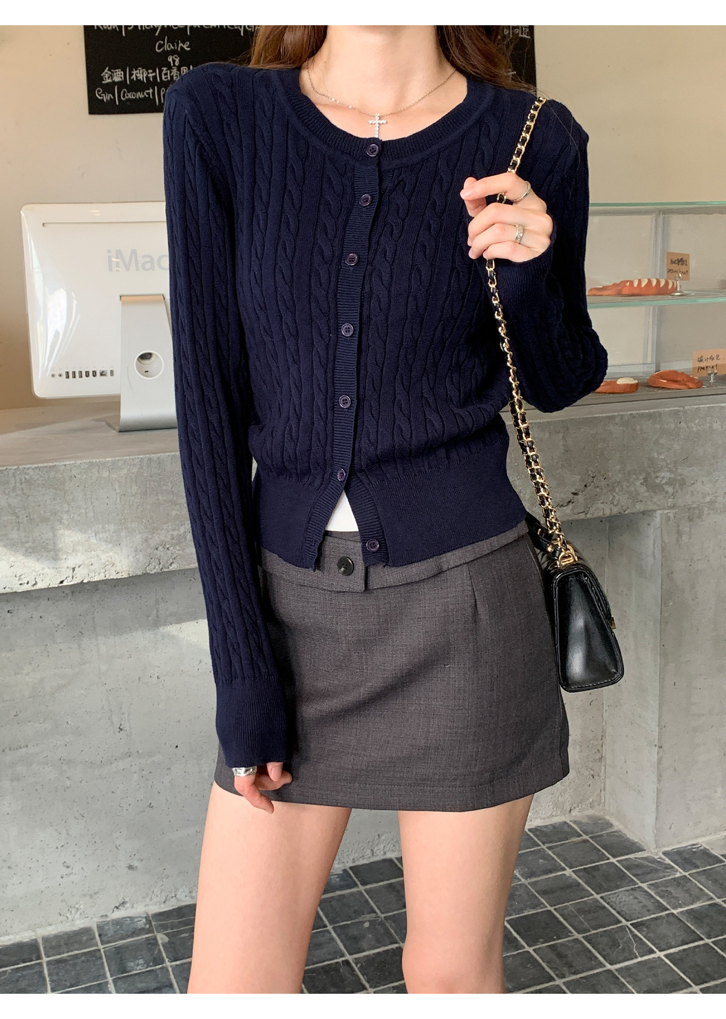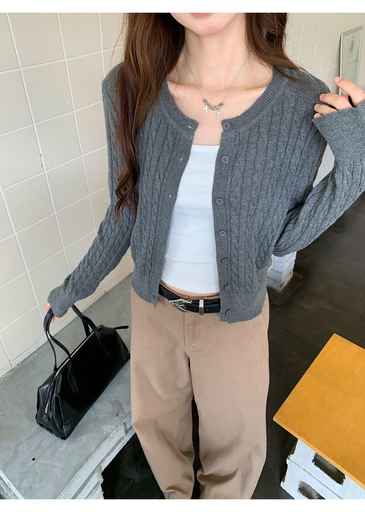 Single-Breasted Cable Knit Long-Sleeve Sweater Cardigan for Women, New Autumn Korean Style, Simple and Versatile Round-Neck Knit Cardigan