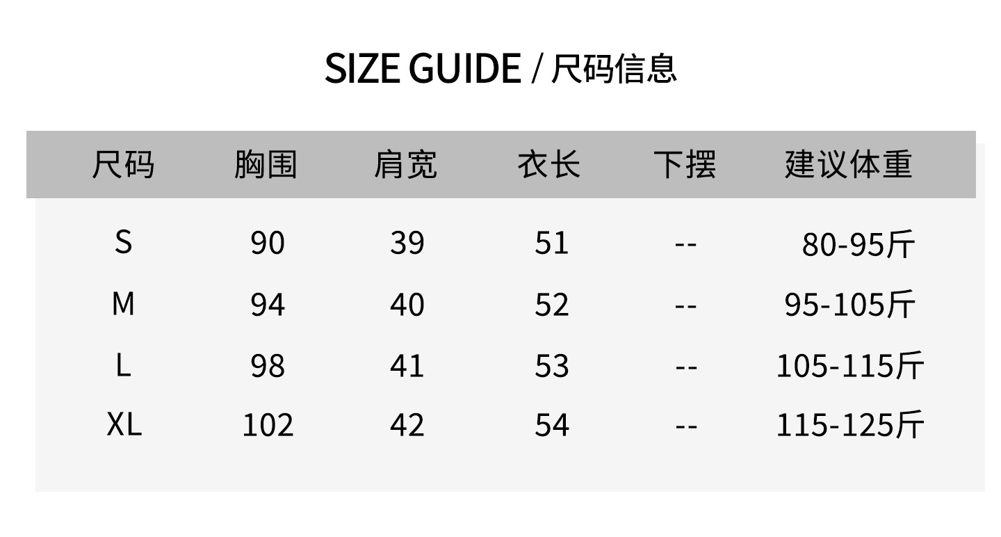 China (cm) 165 / 88-90 170 / 96-98 175 / 108-110 180 / 118-122 185 / 126-130