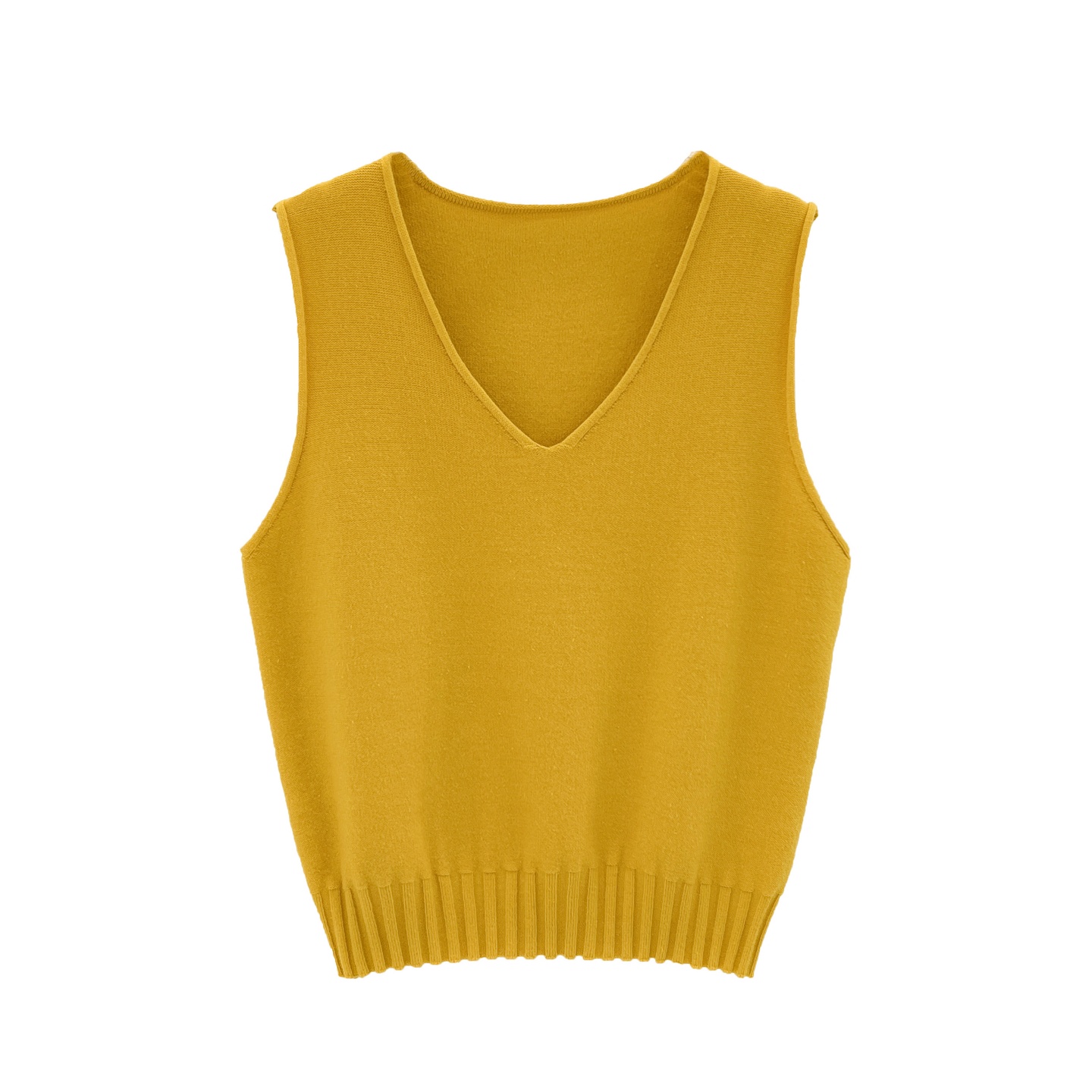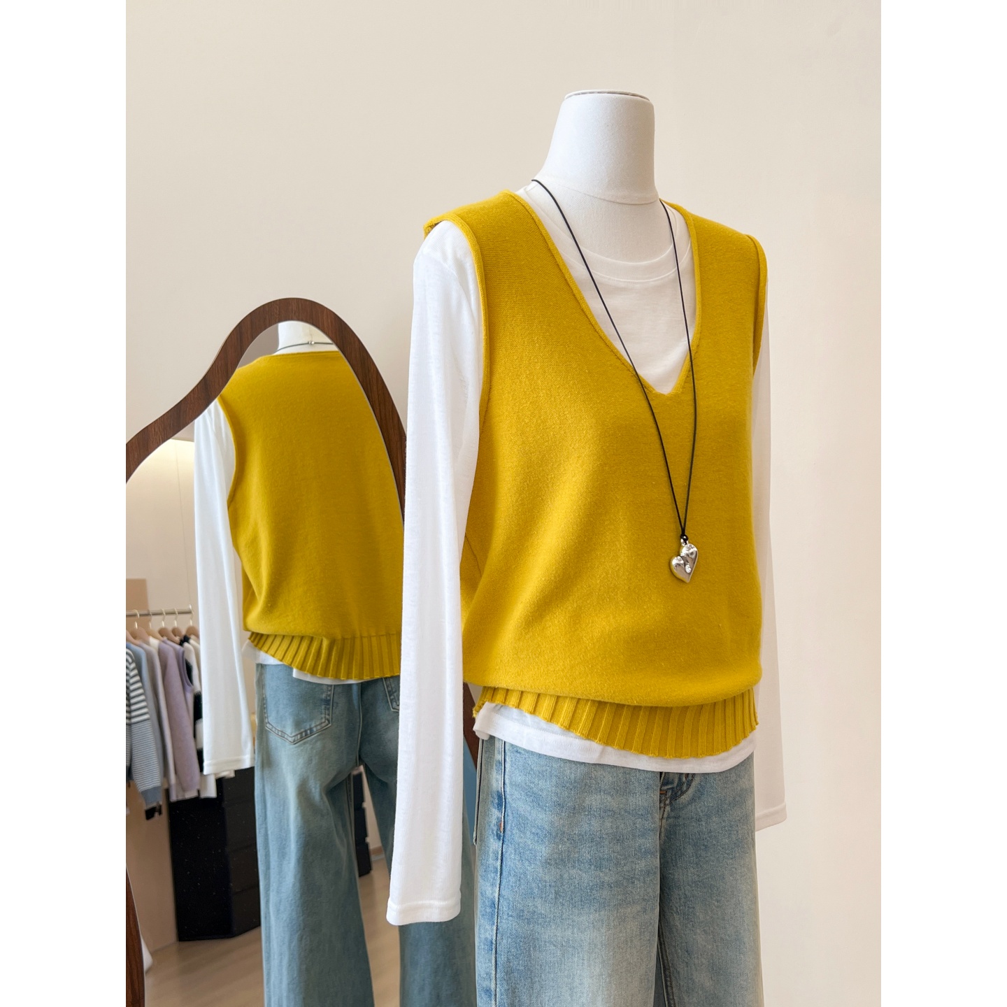 European high-end and super good-looking yellow v-neck knitted sweater vest for women in autumn and winter layered vest top