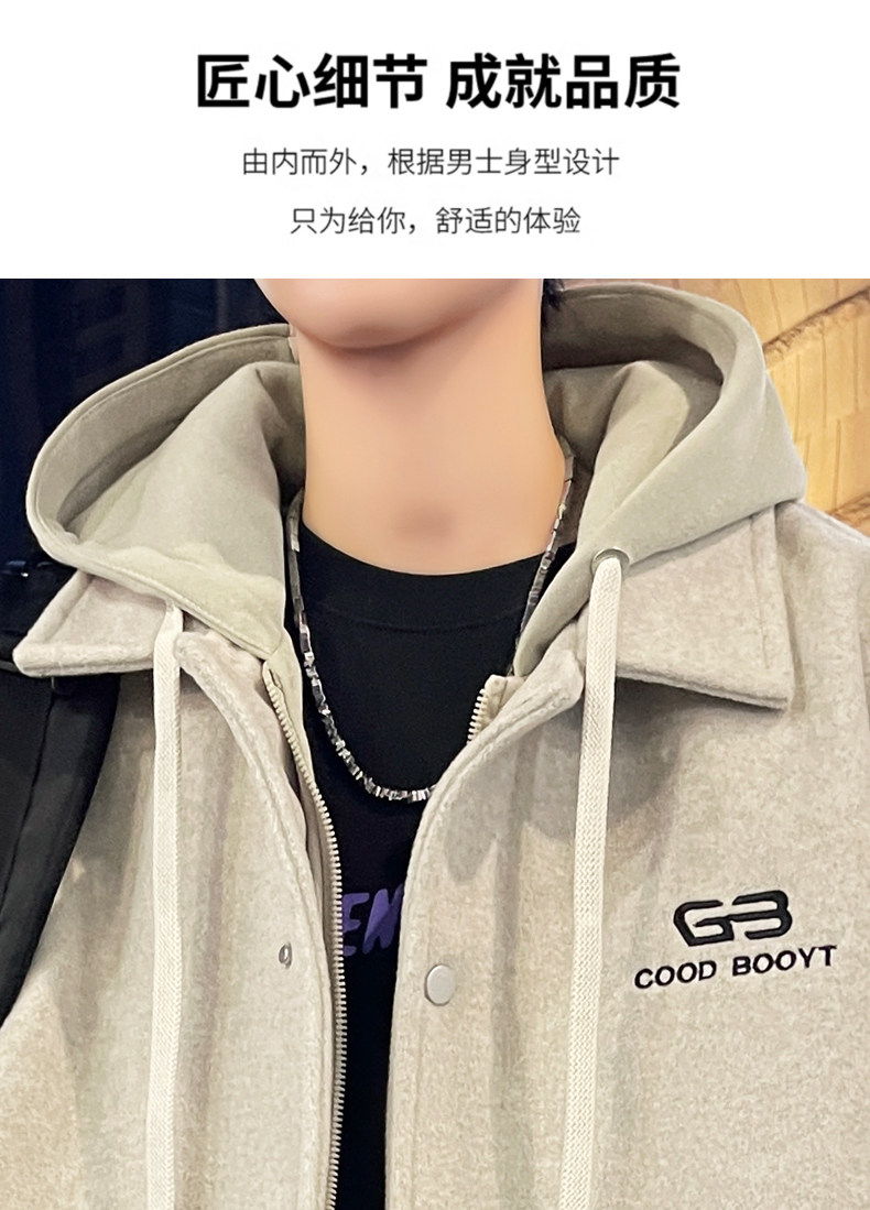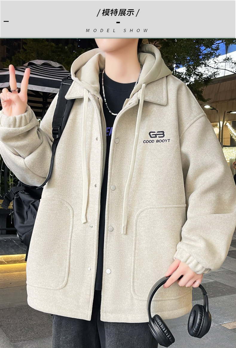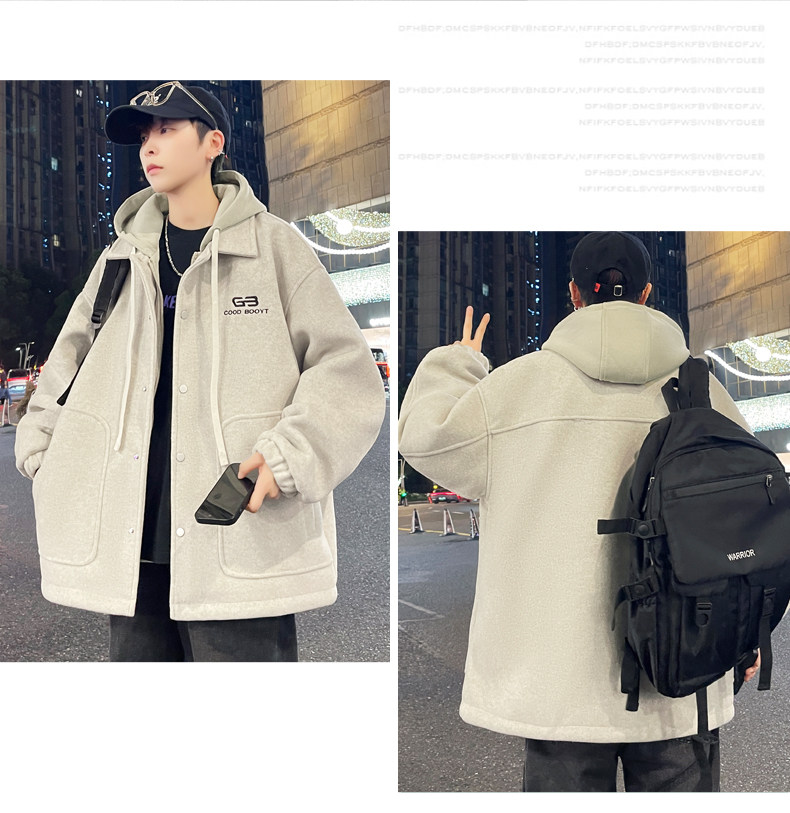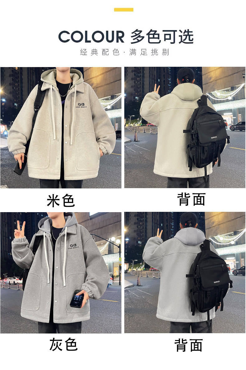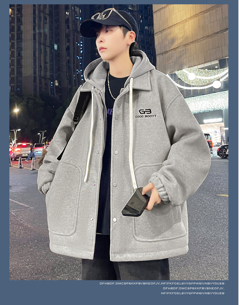 Woolen Coat for Men, Autumn and Winter, Youth Style, Fake Two-Piece Jacket, Men's Student Style, Fleece-Lined, Thickened, Warm Clothing
