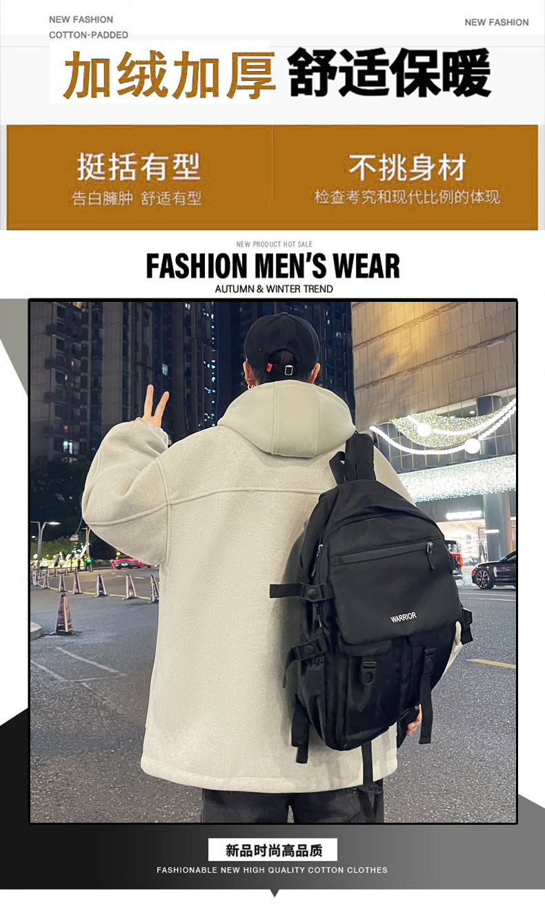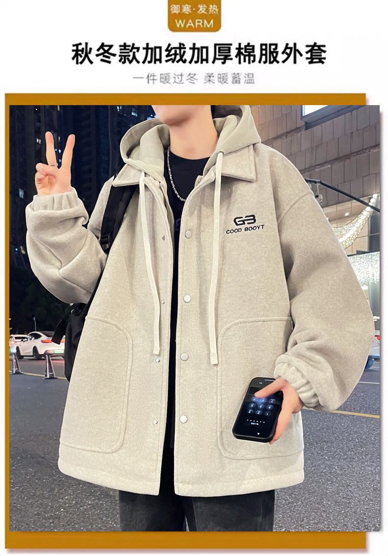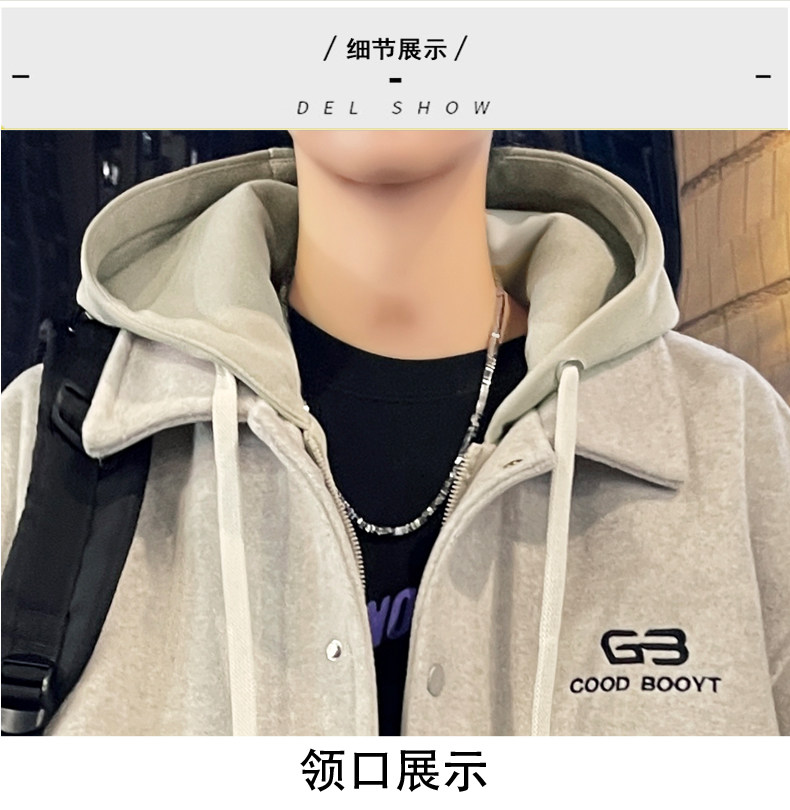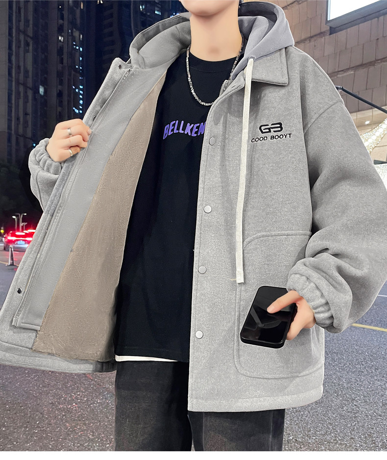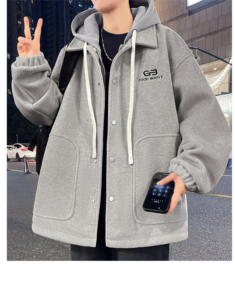 Woolen Coat for Men, Autumn and Winter, Youth Style, Fake Two-Piece Jacket, Men's Student Style, Fleece-Lined, Thickened, Warm Clothing
