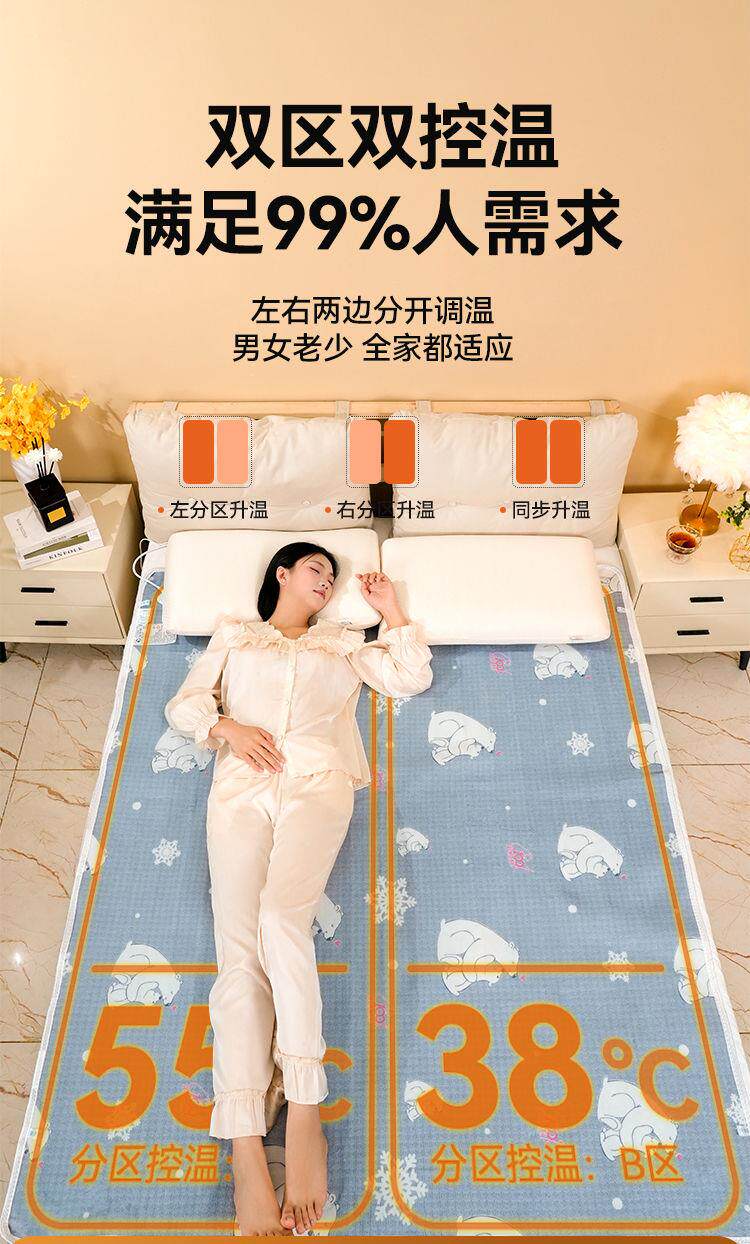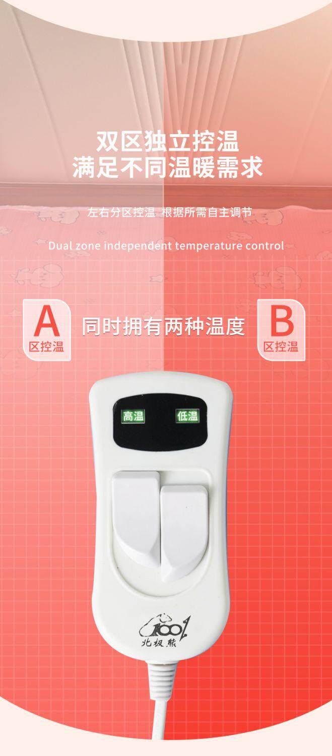 Polar Bear Electric Blanket, Single Electric Mattress, Double Control Timer, Student Dormitory, Home Use, Waterproof, Body Warming, No Electric Leakage