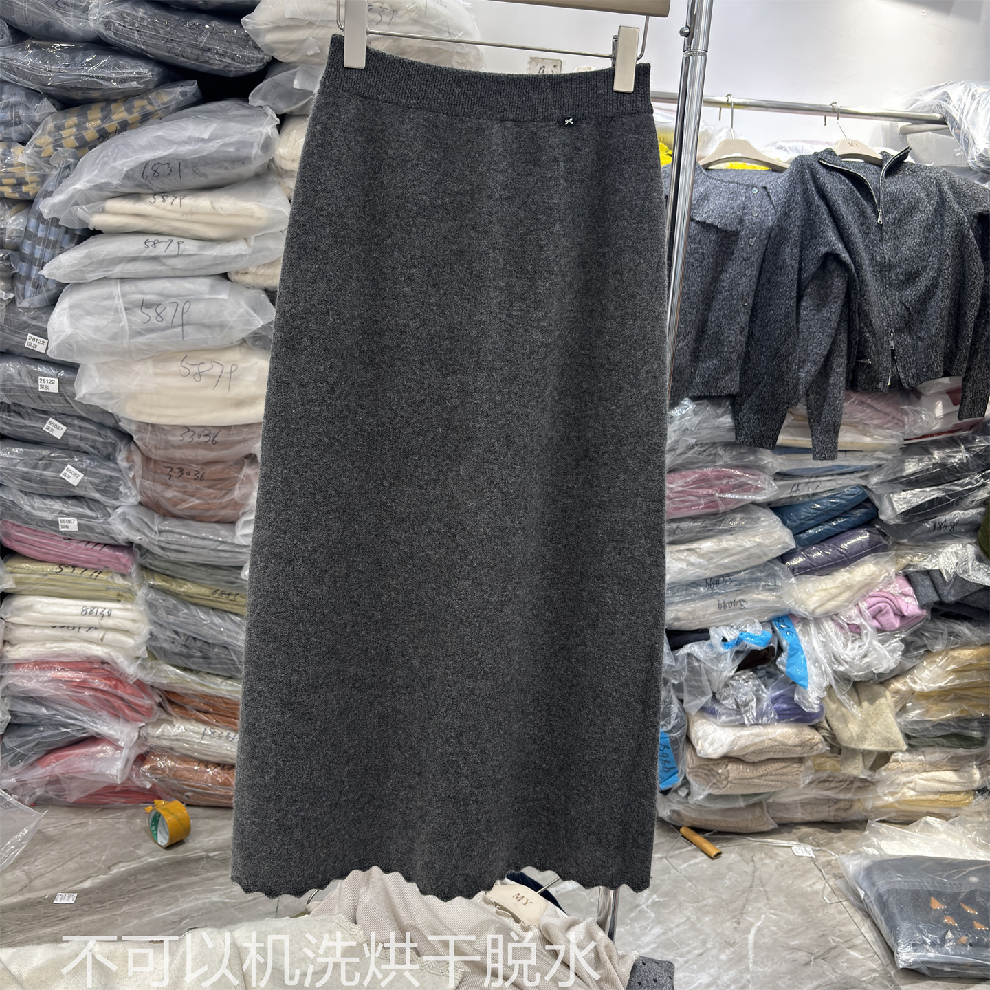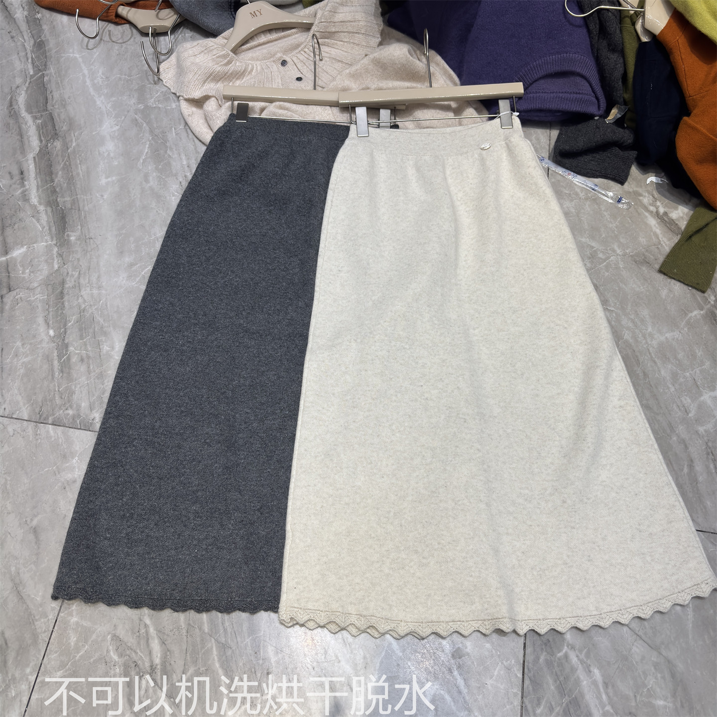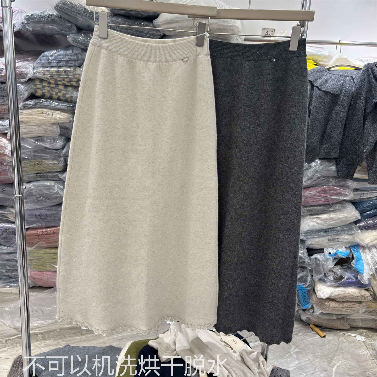 Korean Style Wool Knit Skirt with Lace Trim at the Hem, High-Waisted, Slimming, Versatile A-Line Long Skirt for Autumn and Winter