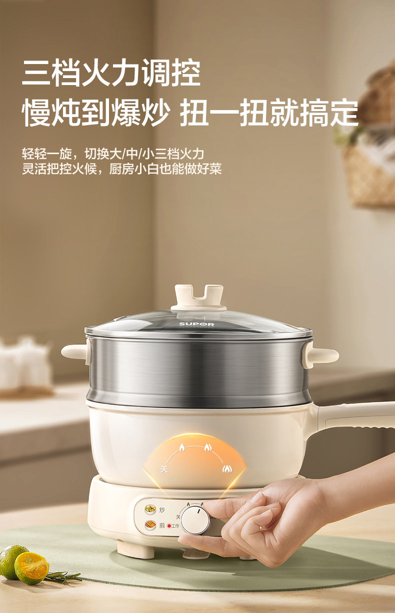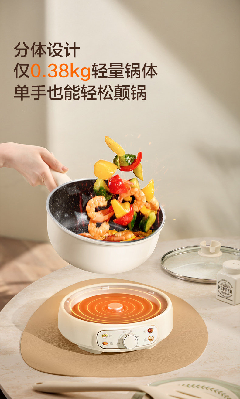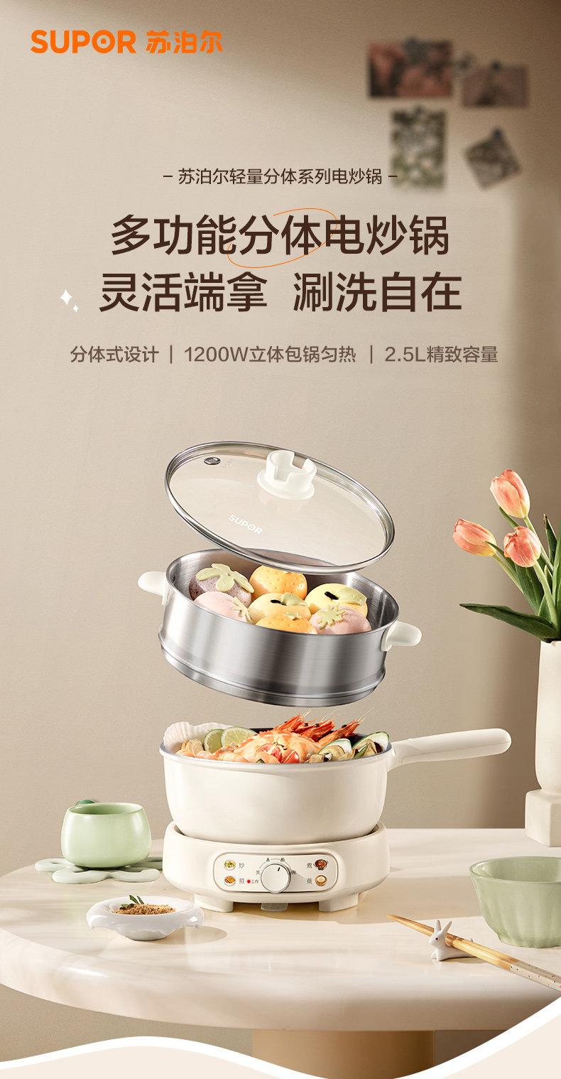 Supor Electric Cooking Pot Multifunctional Small Electric Frying Pan for Home and Dormitory Use, Non-Stick Pan, Detachable Electric Hot Pot, 2025 New Model