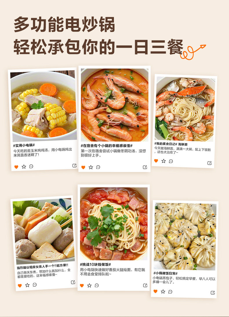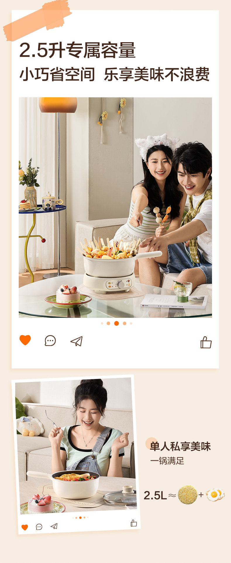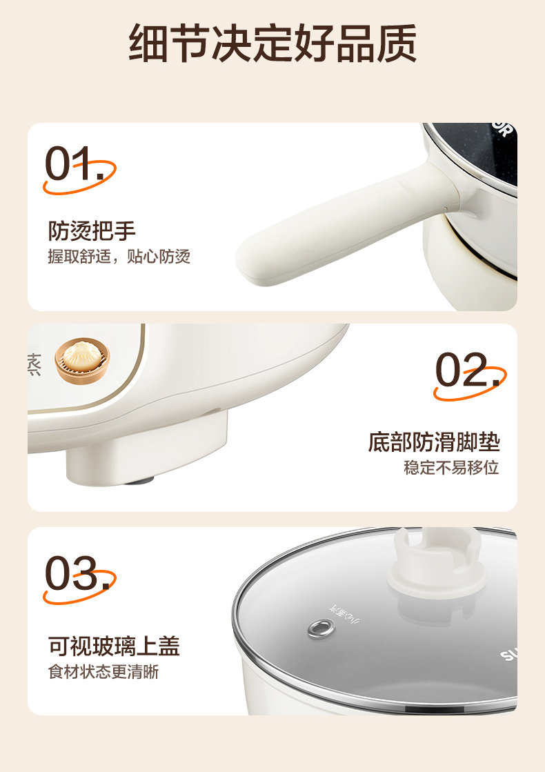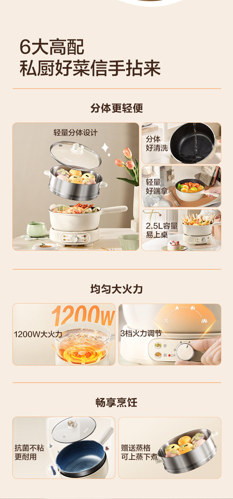 Supor Electric Cooking Pot Multifunctional Small Electric Frying Pan for Home and Dormitory Use, Non-Stick Pan, Detachable Electric Hot Pot, 2025 New Model